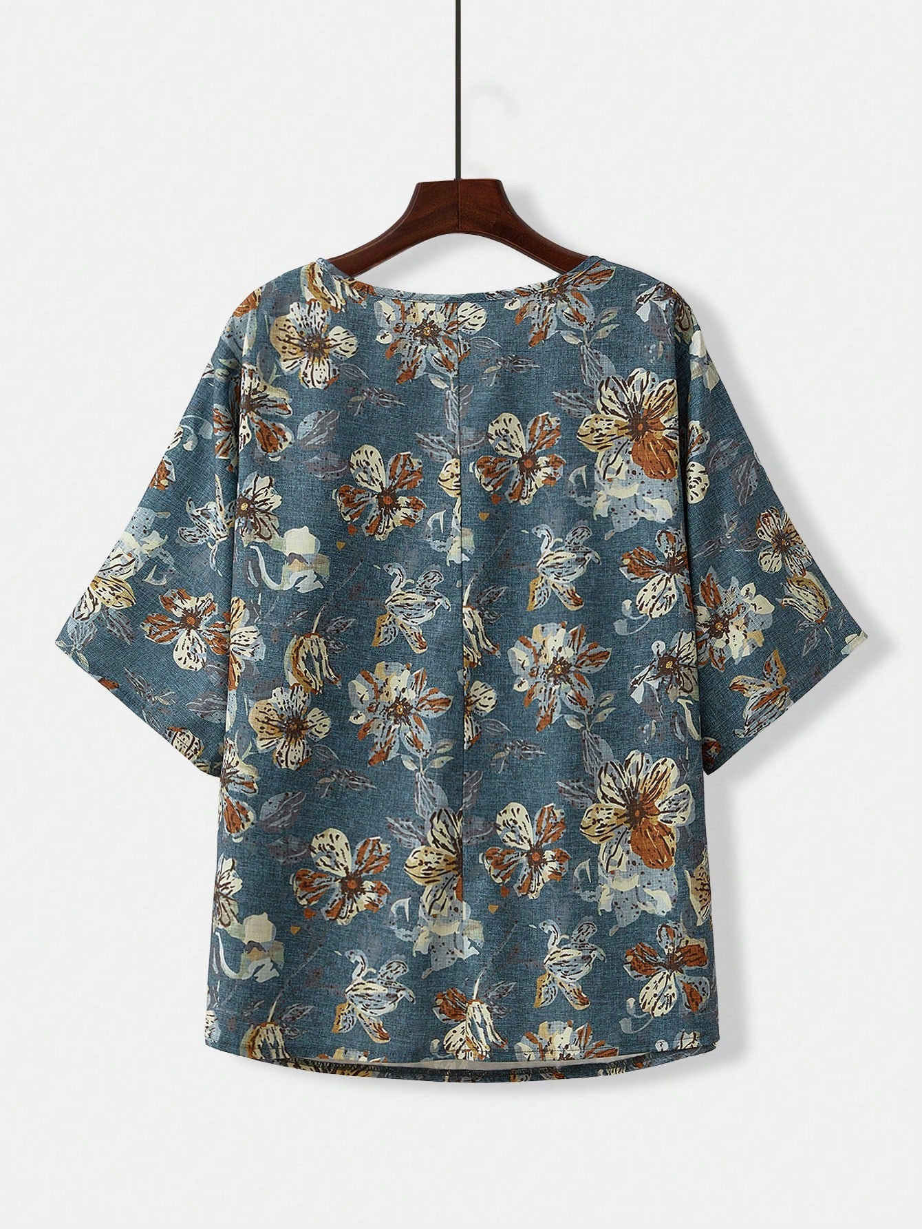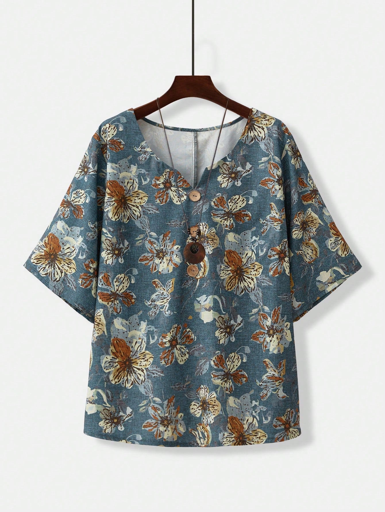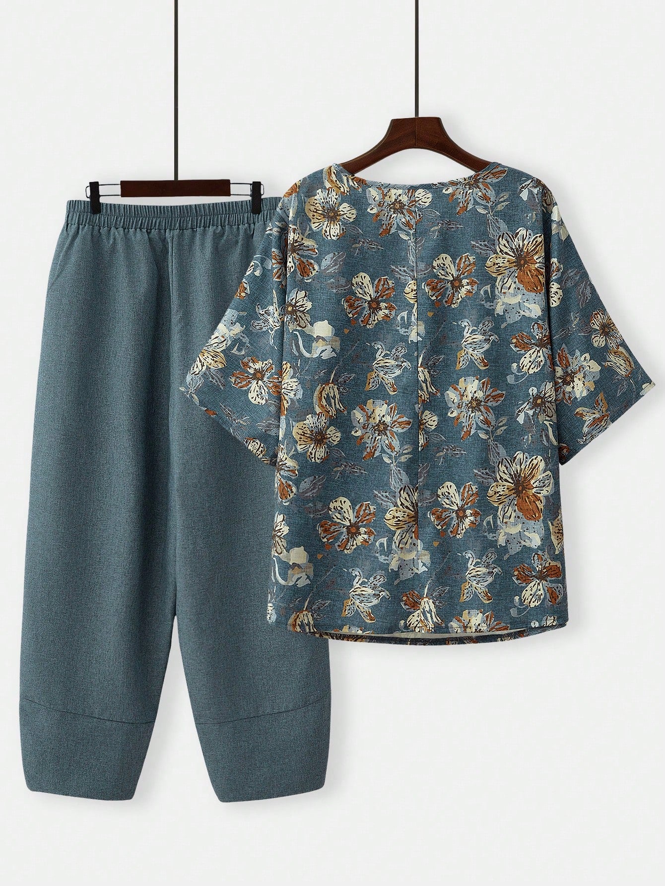 طقم قميص وبنطال مطبوع بلون كاكي مناسب للعطلات في أوائل الربيع من إيمري روز، قطعتين، مقاس كبير للنساء