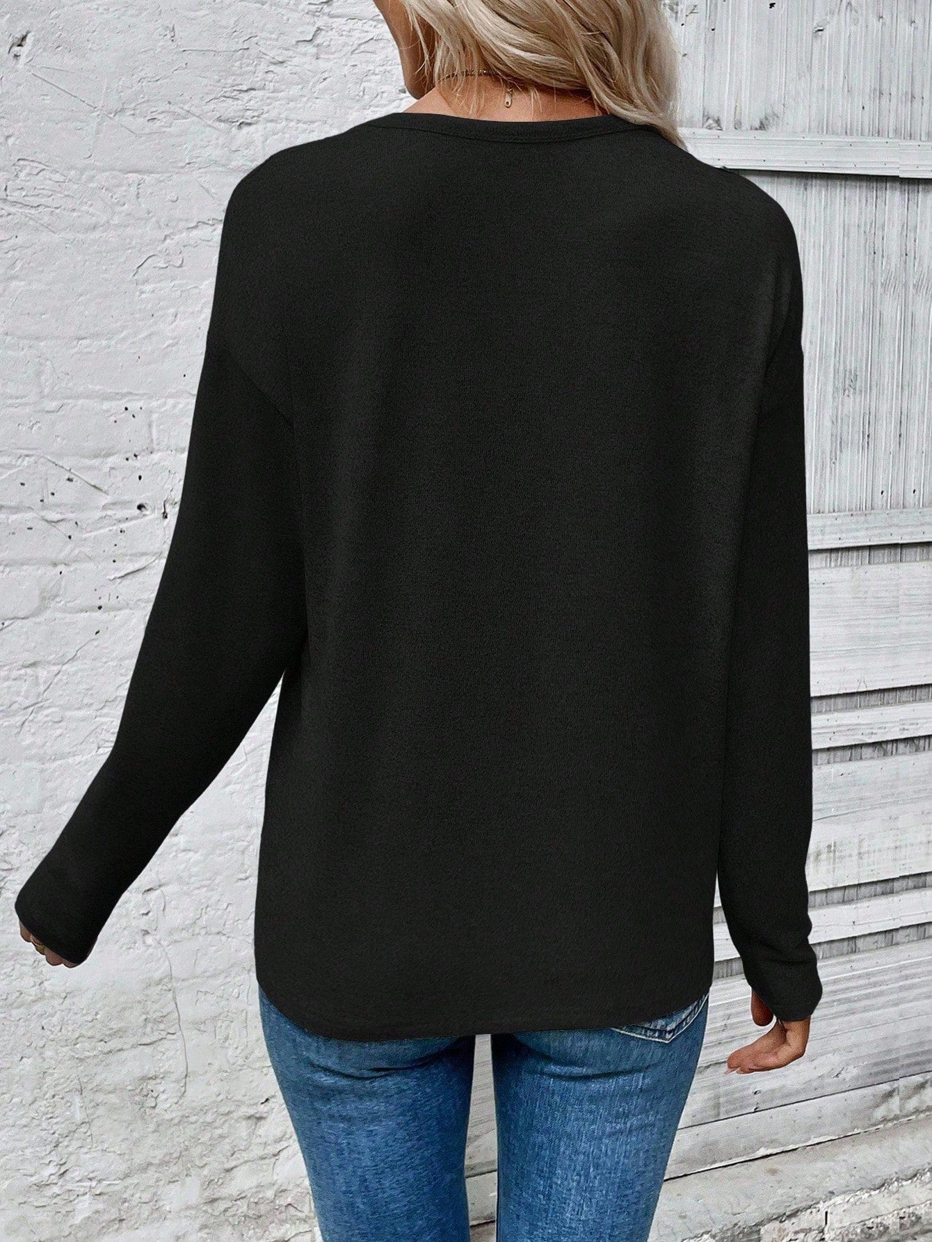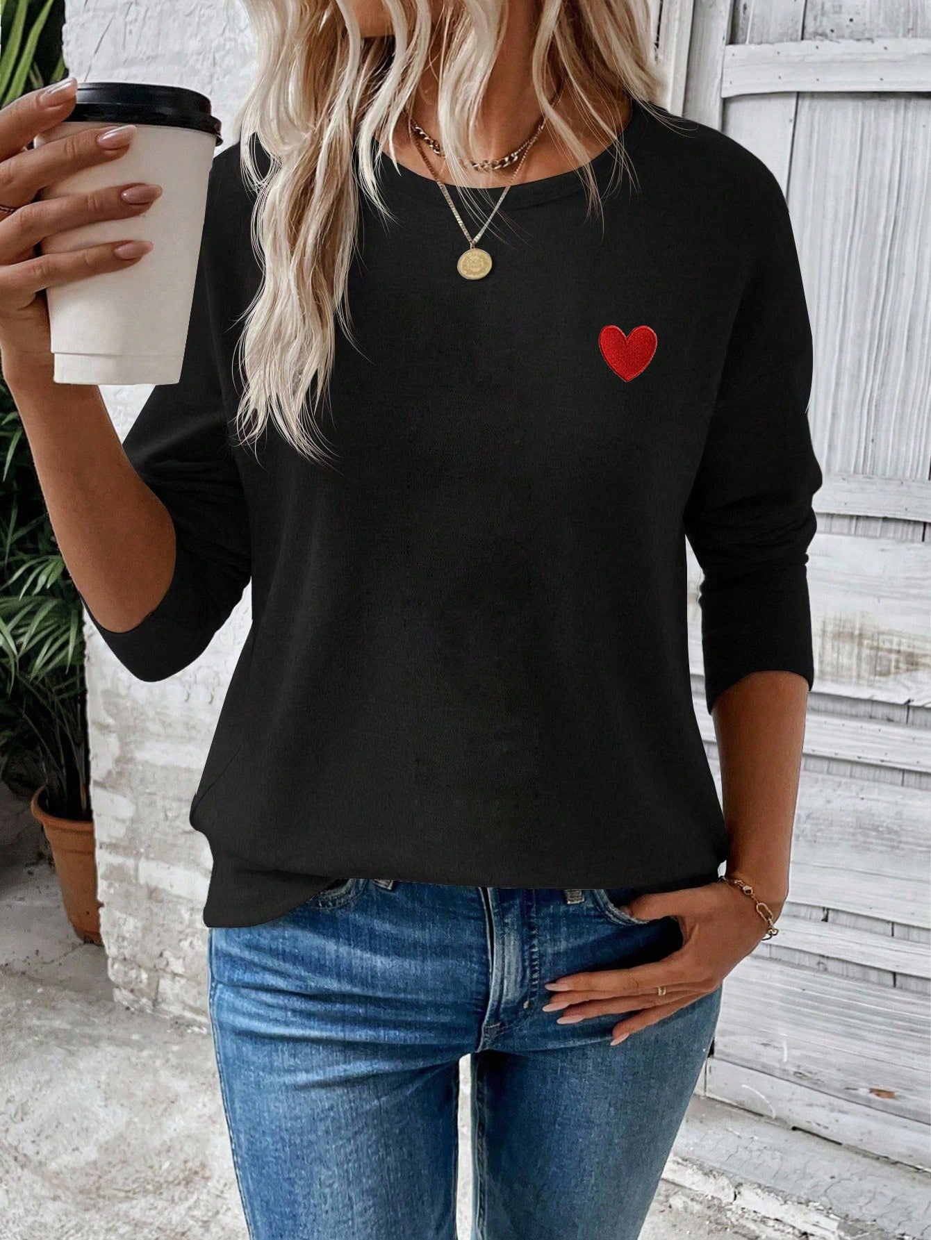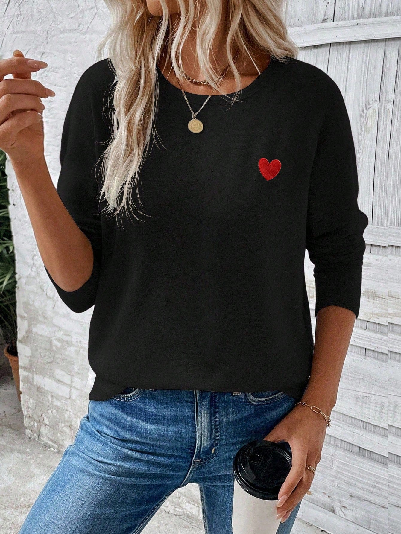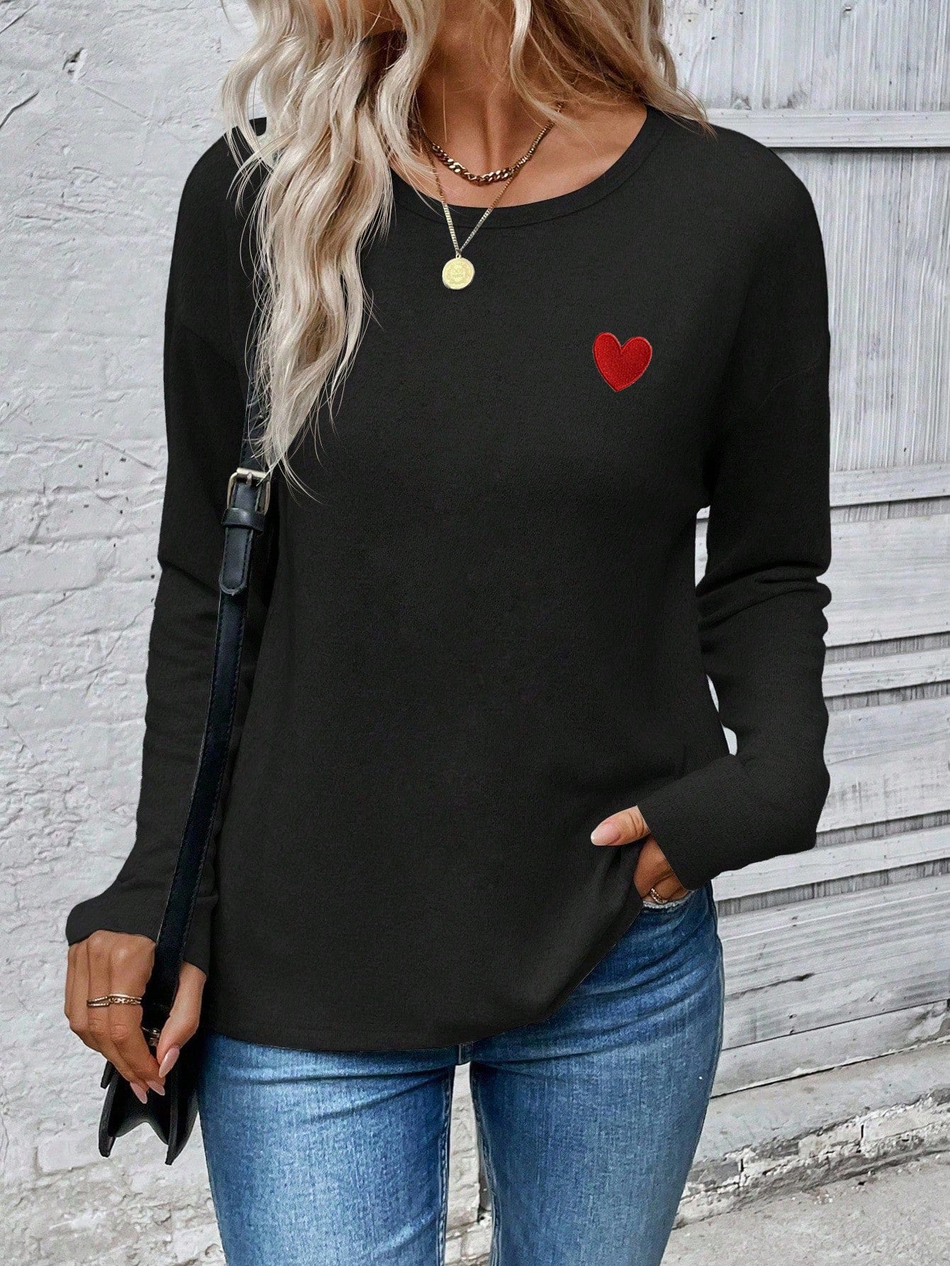 تيشيرت نسائي جديد من إيمري روز، مطبوع عليه قلوب، بياقة دائرية وأكمام طويلة