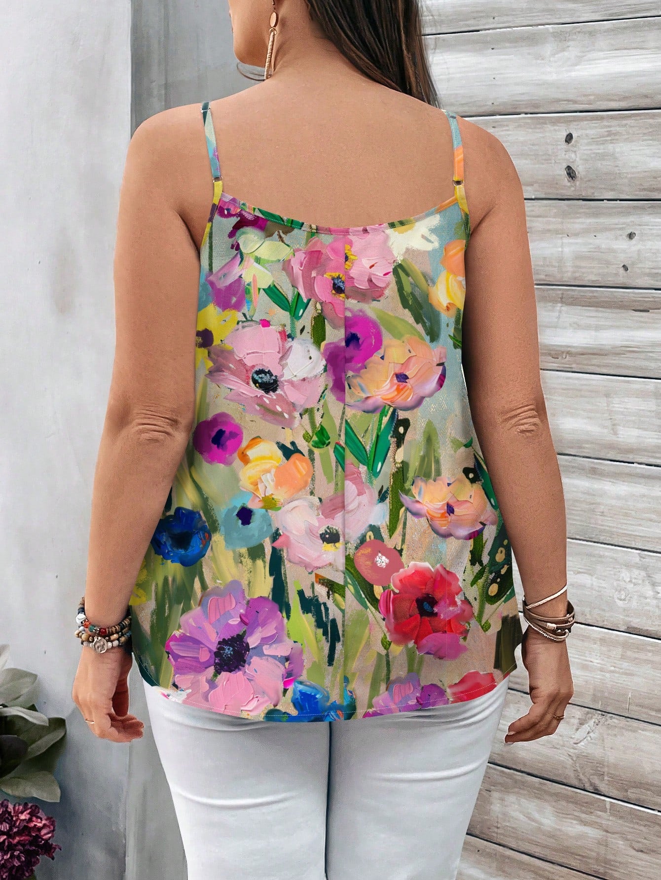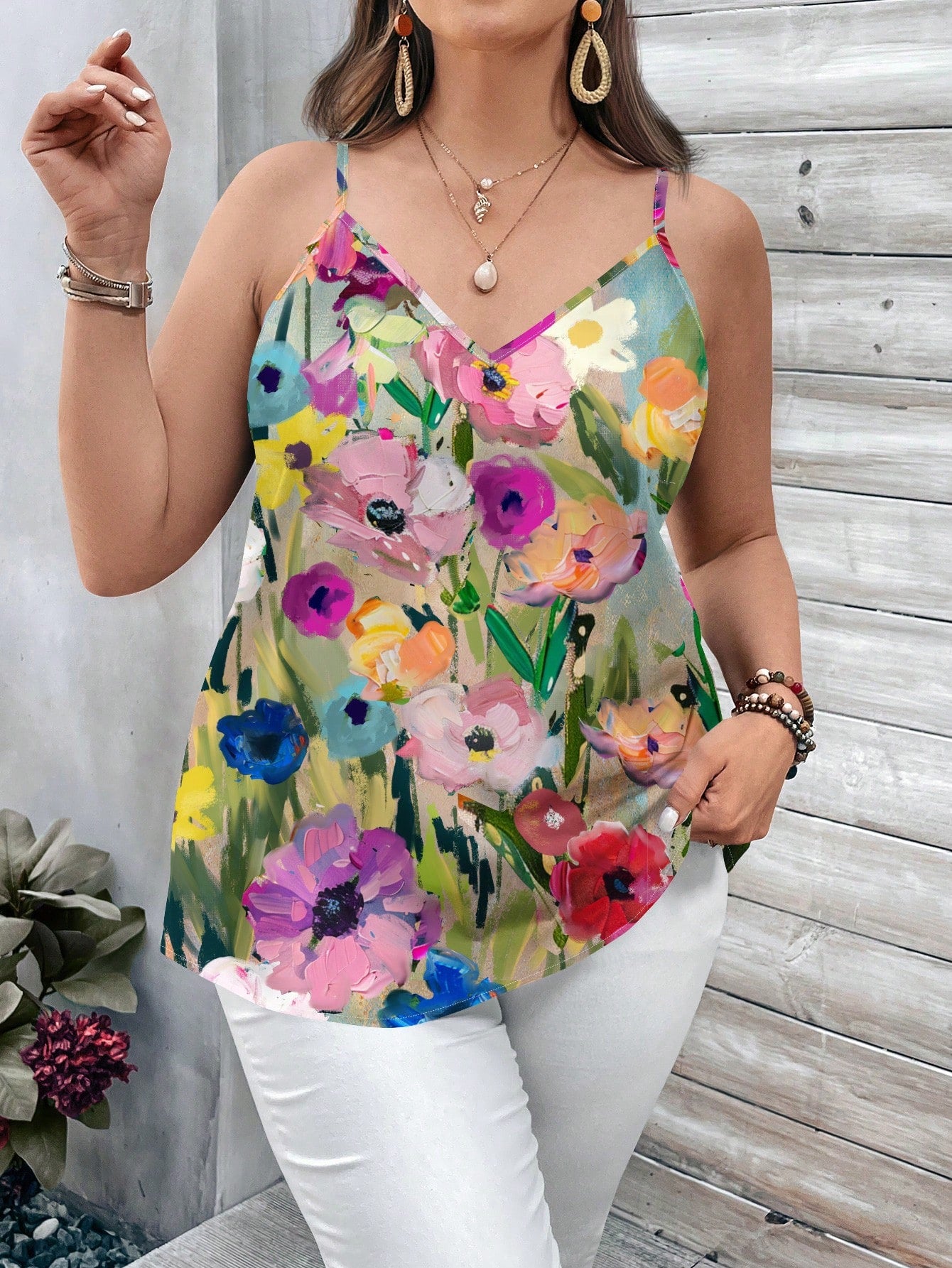 EMERY ROSE Plus Size Casual Minimalist V-Neck Camisole, Suitable For Summer Suitable For Going Out