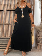 فستان ماكسي بمقاسات كبيرة من إيمري روز، مكشوف الكتفين، بأكمام قصيرة وجيب جانبي وفتحة جانبية