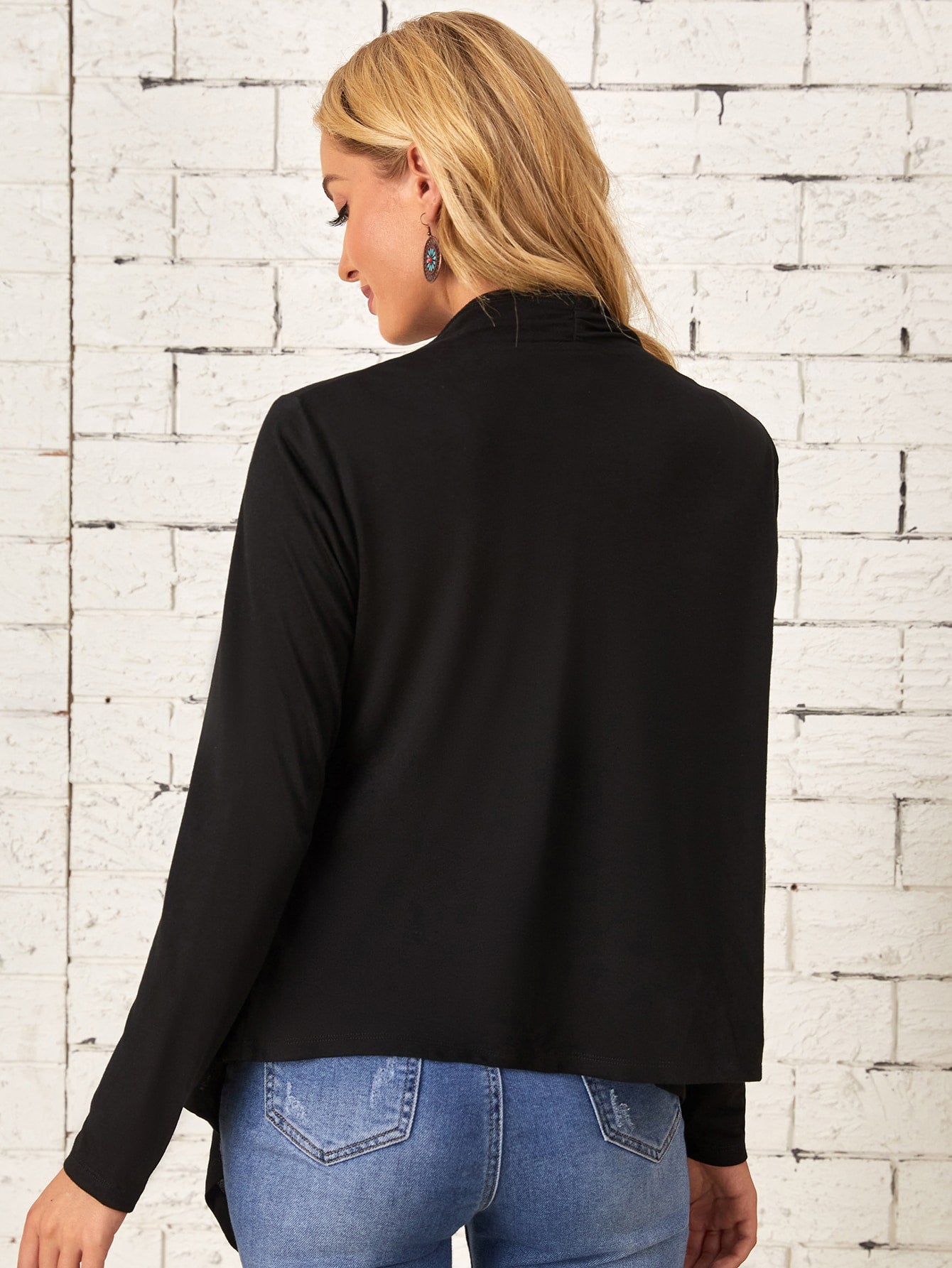 EMERY ROSE Solid Open Front Asymmetrical Hem Coat