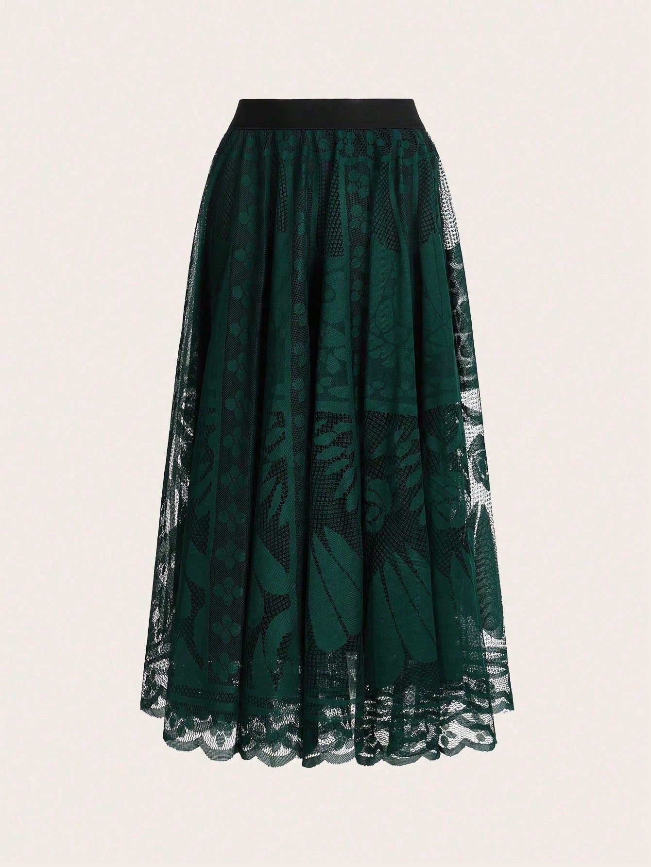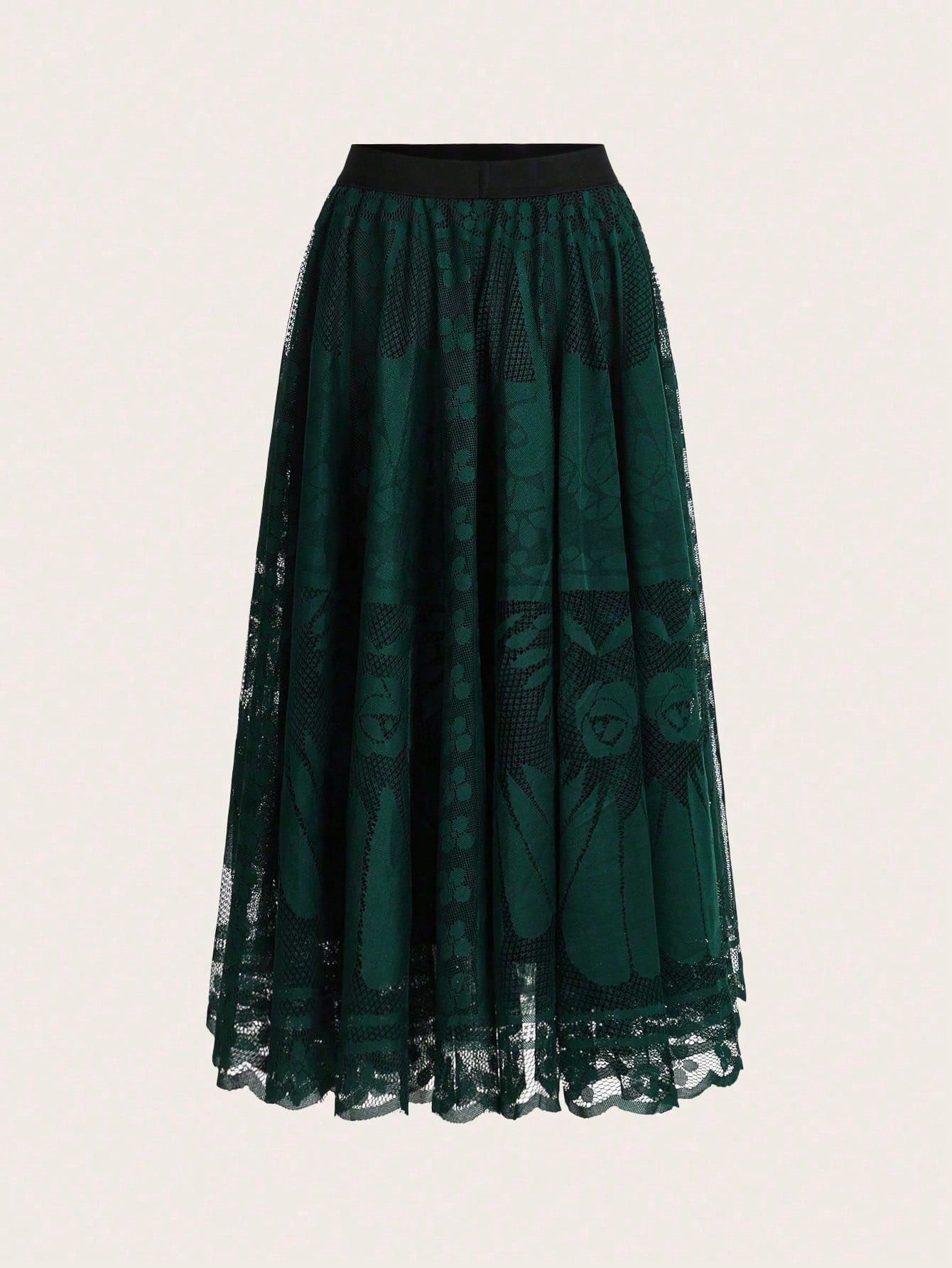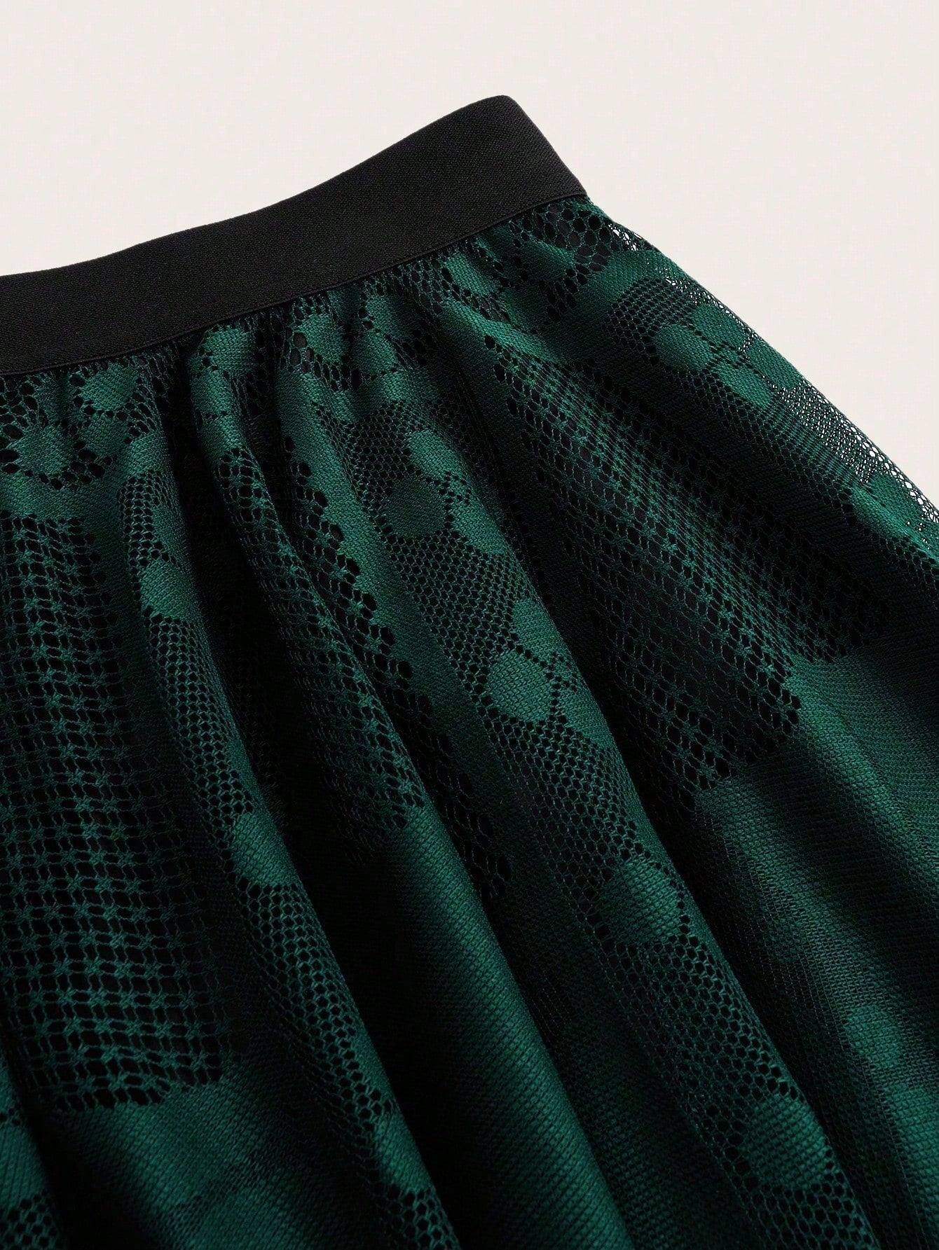 EMERY ROSE Women's Fashion Green Lace Casual Skirt