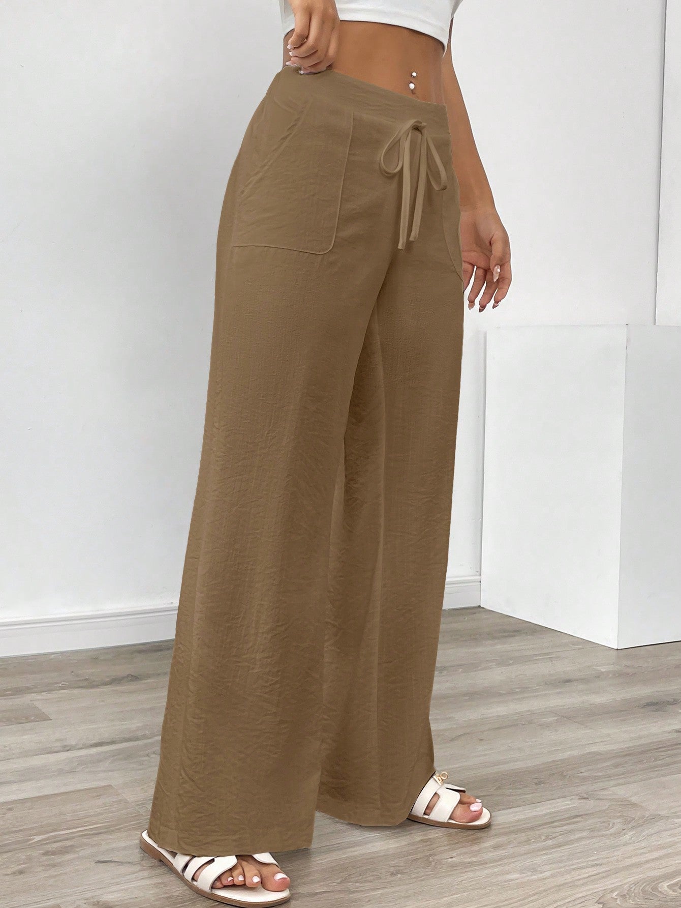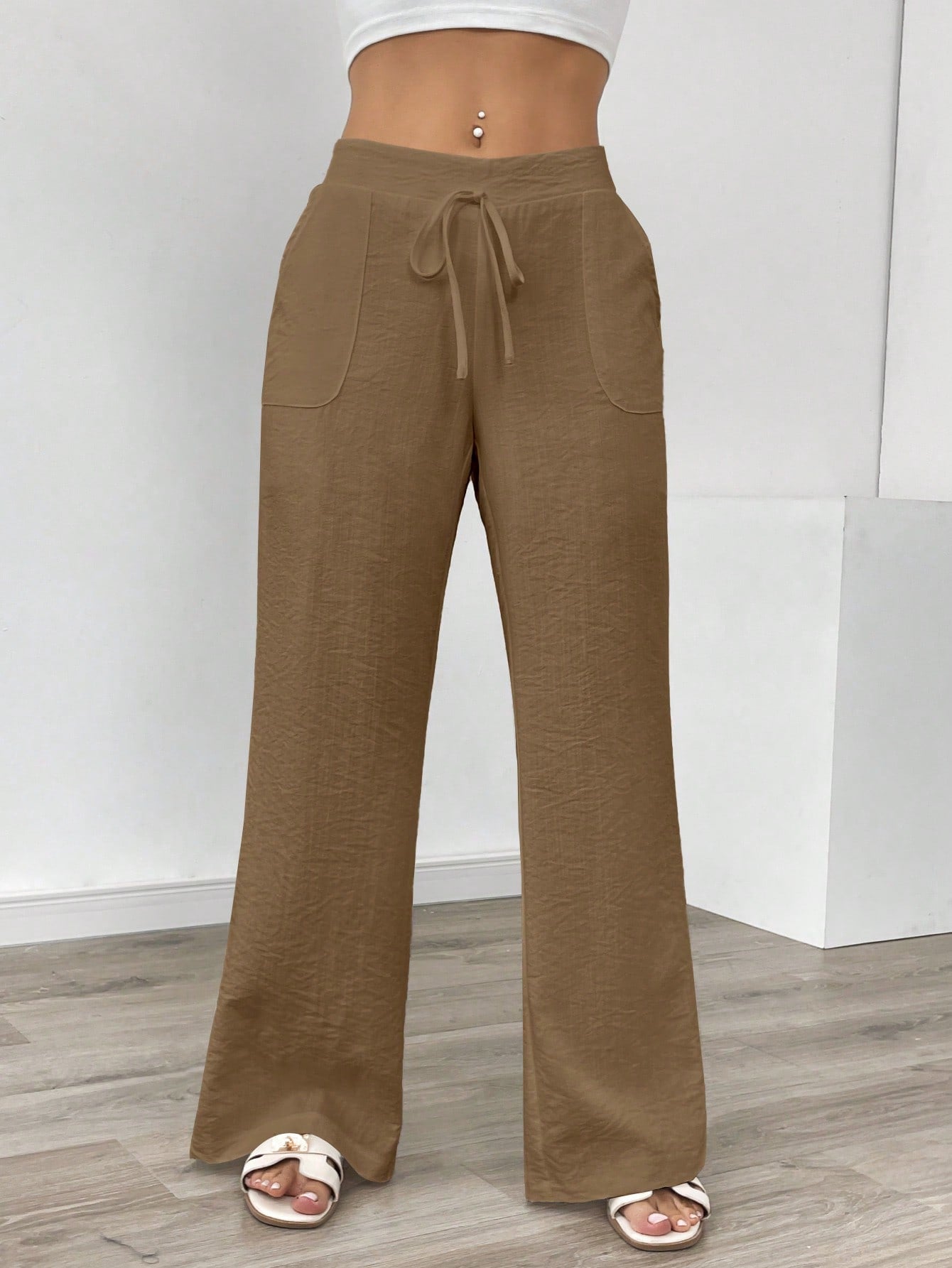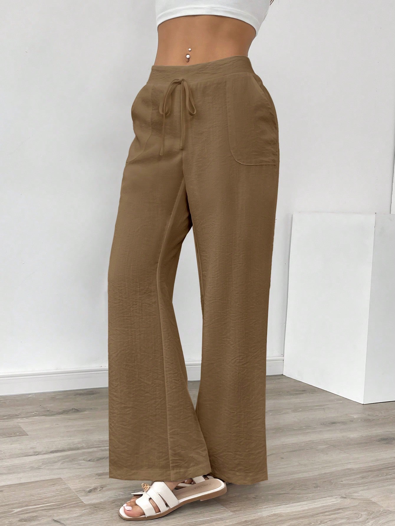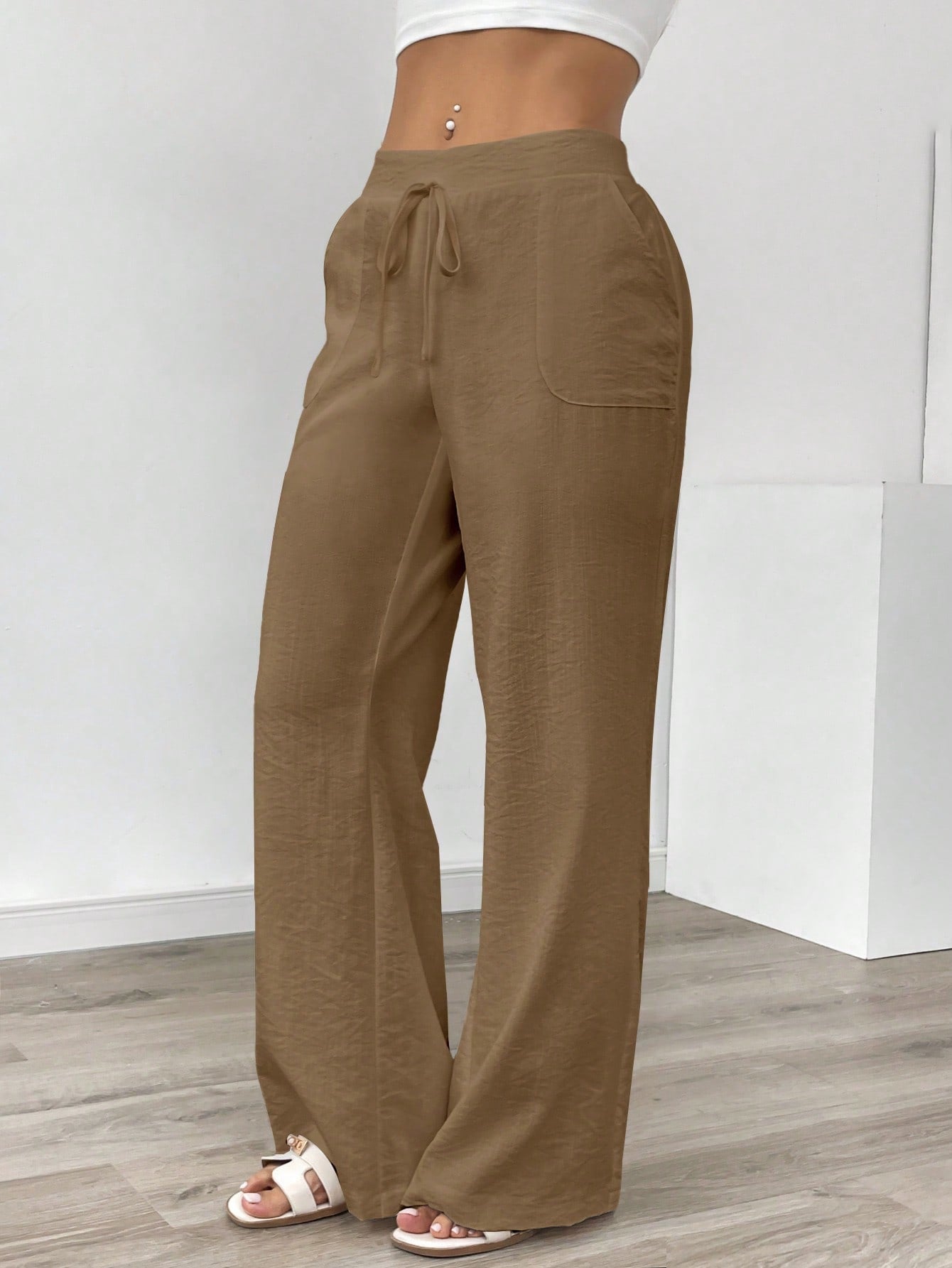بنطلون نسائي طويل من الكتان الأبيض بجيوب، مناسب للإطلالات الكاجوال، من إيمري روز