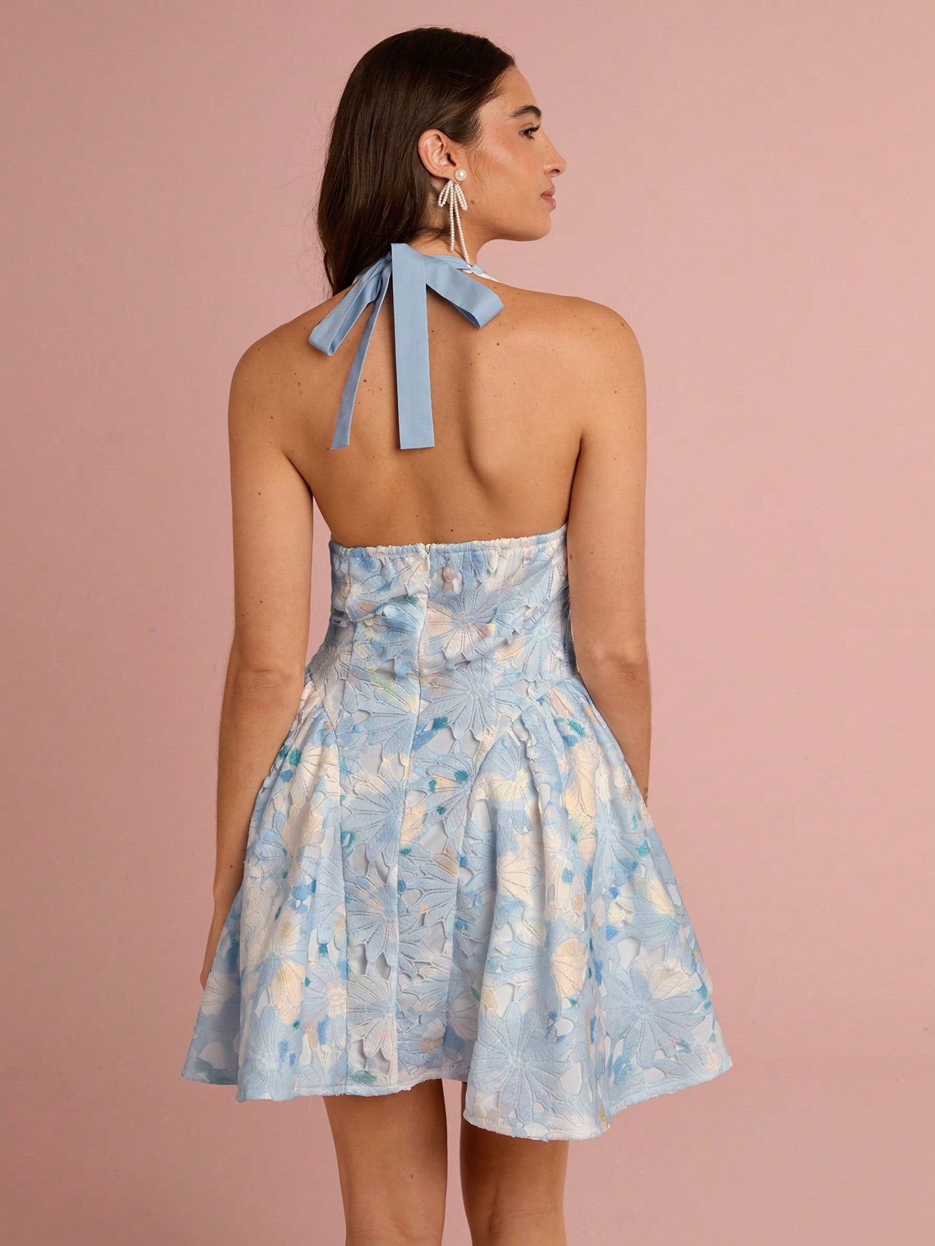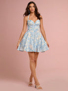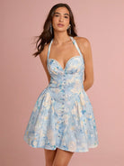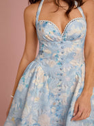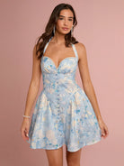 Enchnt Women's Sleeveless Summer Fashion DressSpring/Summer Romantic Women's Blue Floral Print Lace Sleeveless