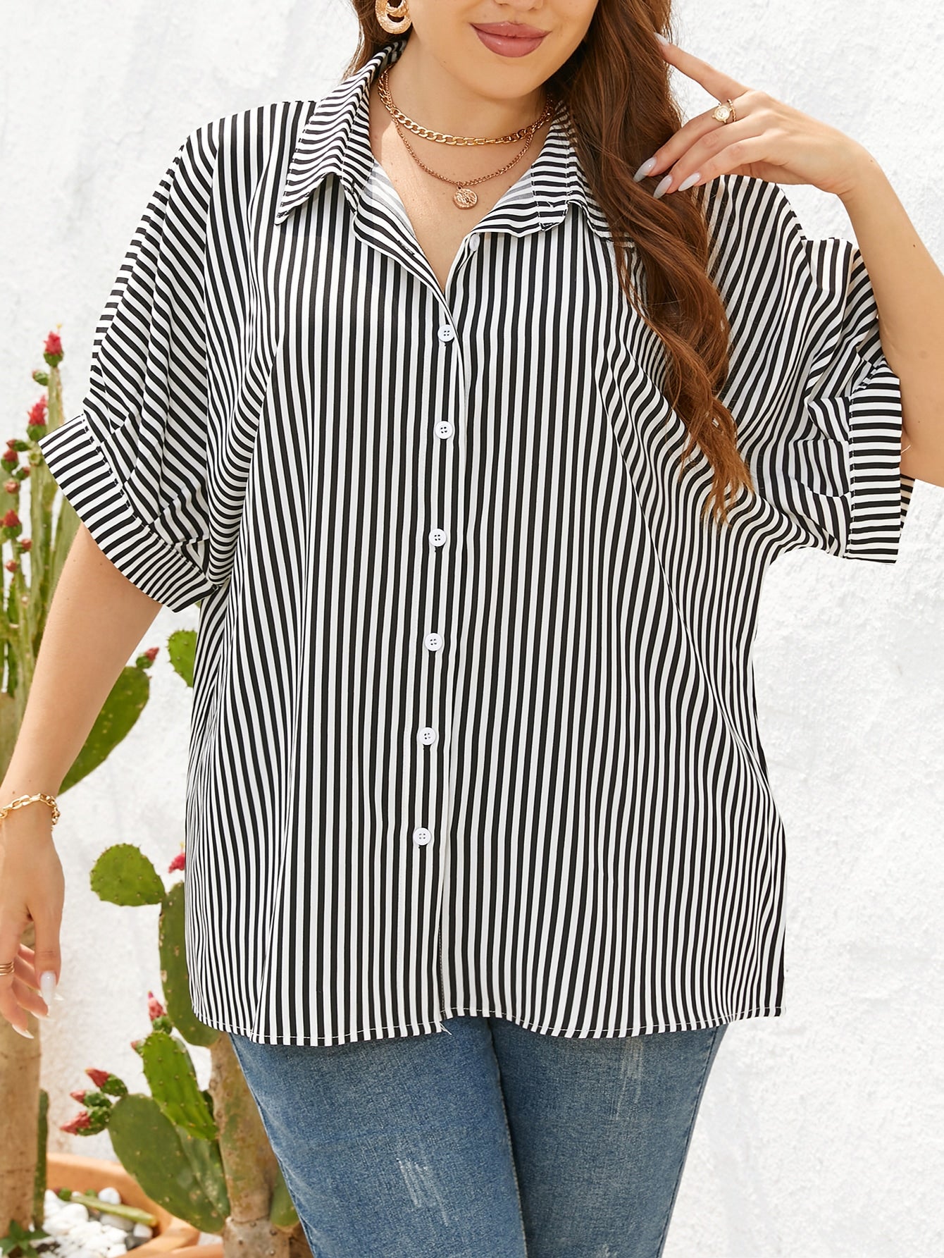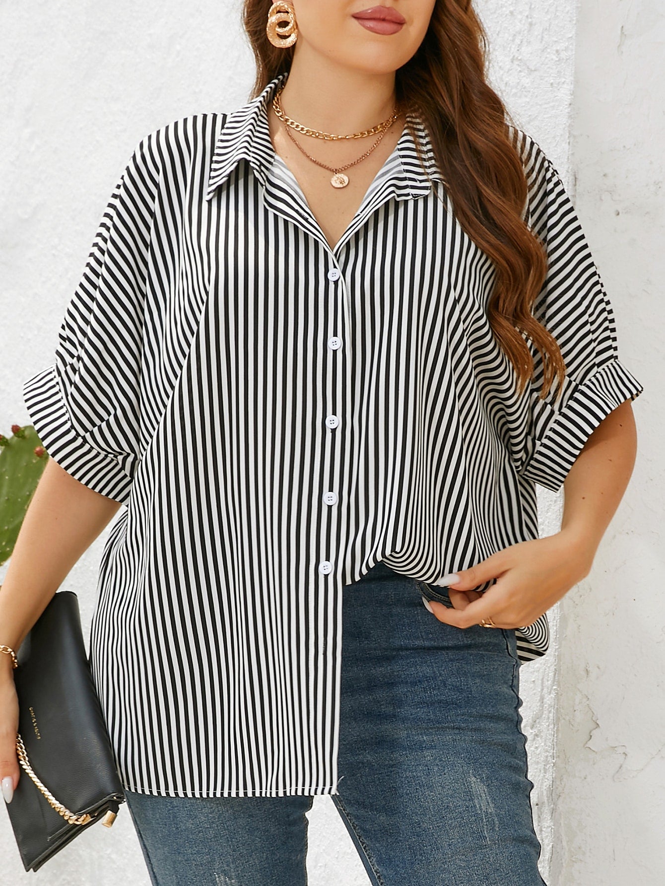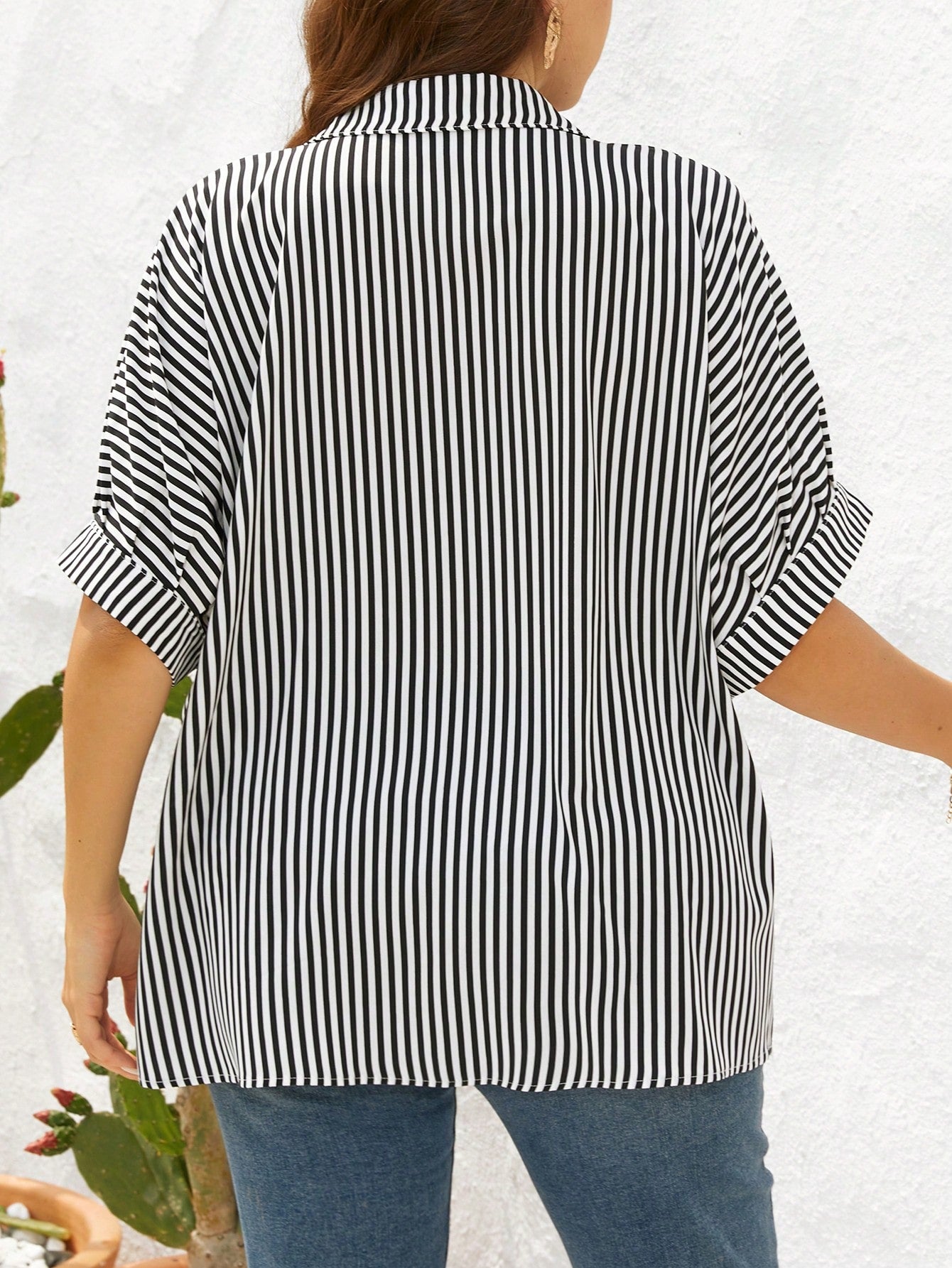 قميص إيسنس بلس مخطط بأكمام واسعة