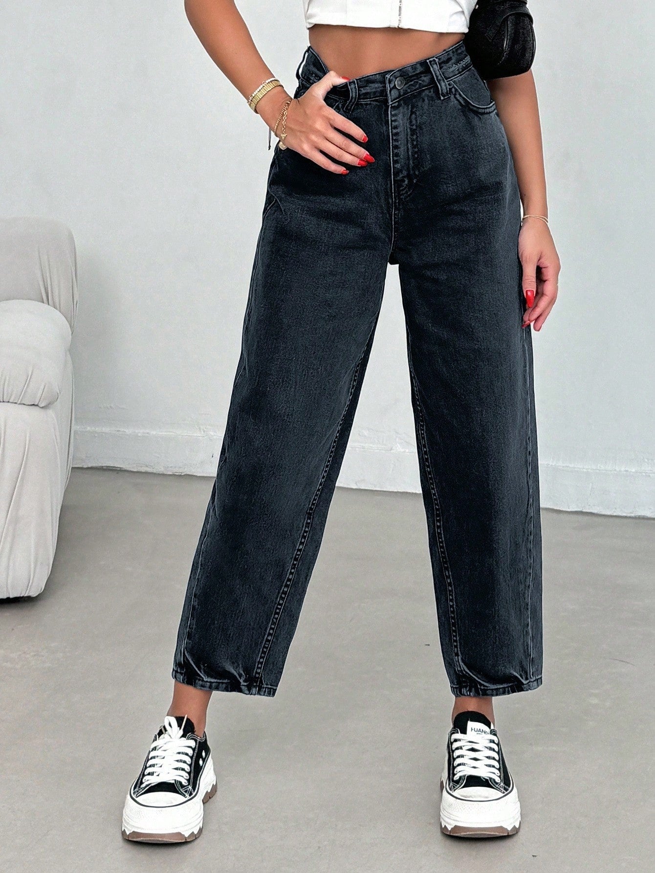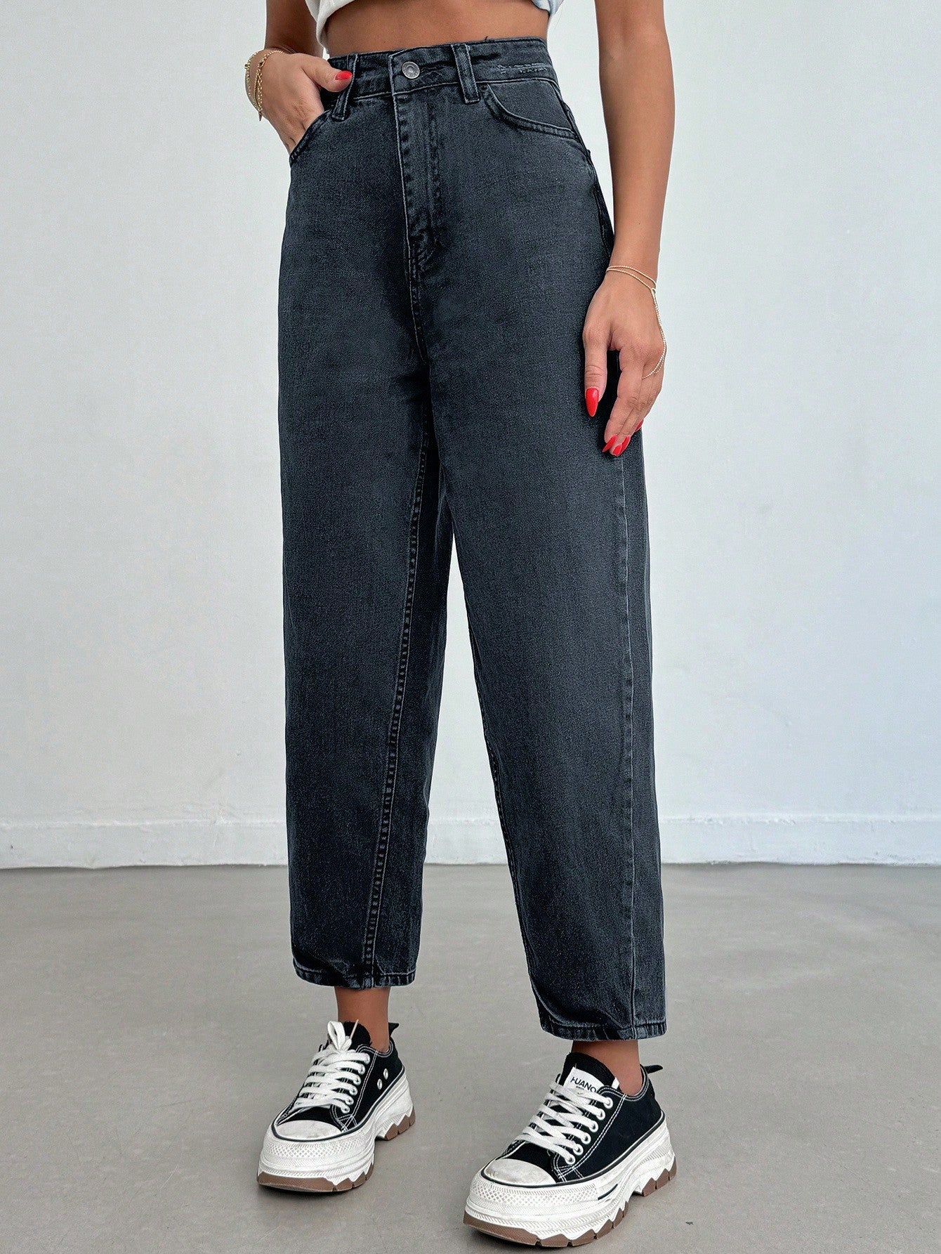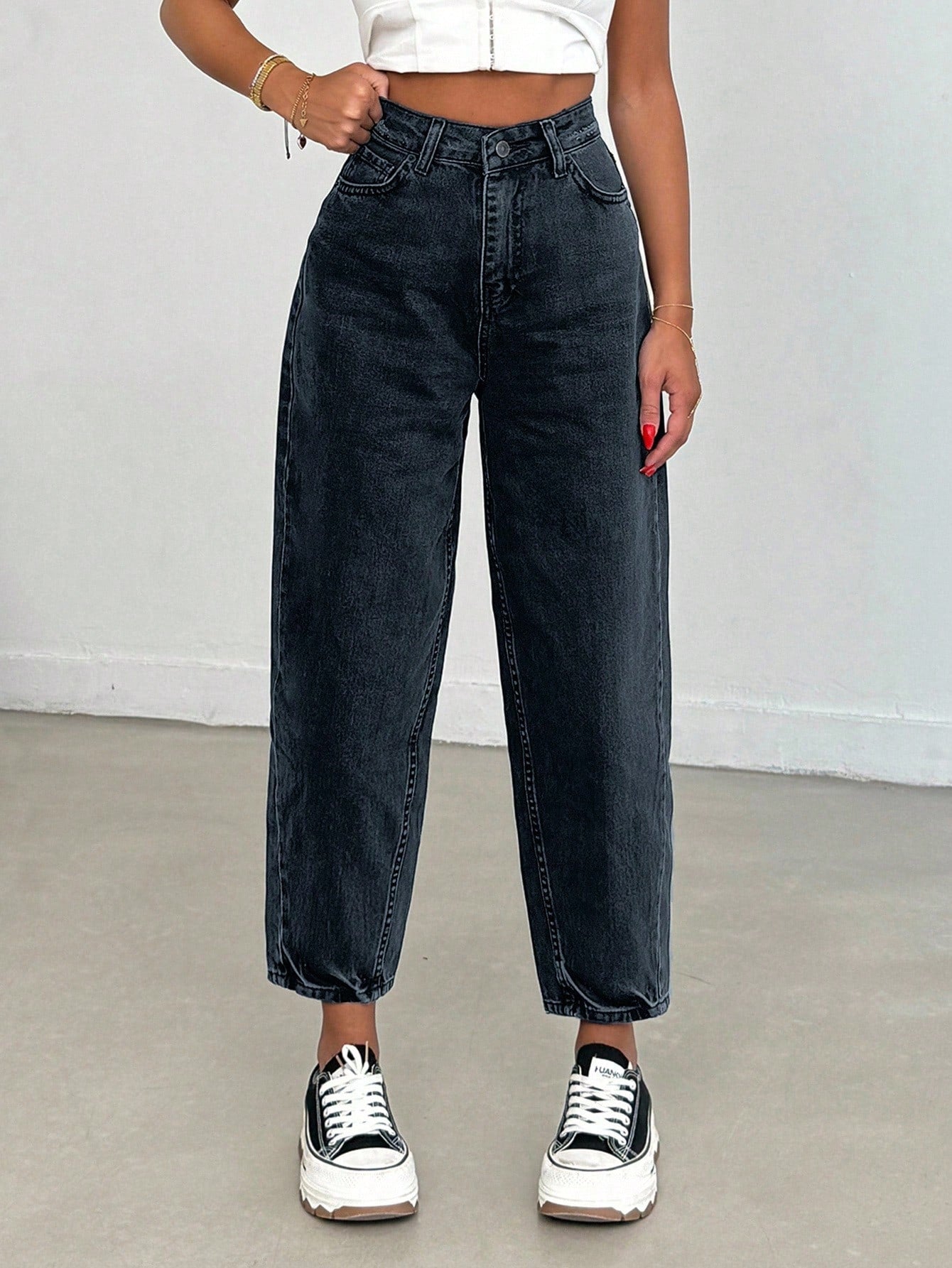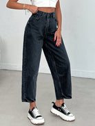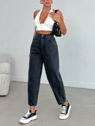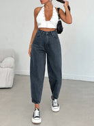 بنطلون جينز من EURMUSE مصنوع من القطن بنسبة 100%، بخصر عالٍ وقصة واسعة، رقم الموديل 06-559
