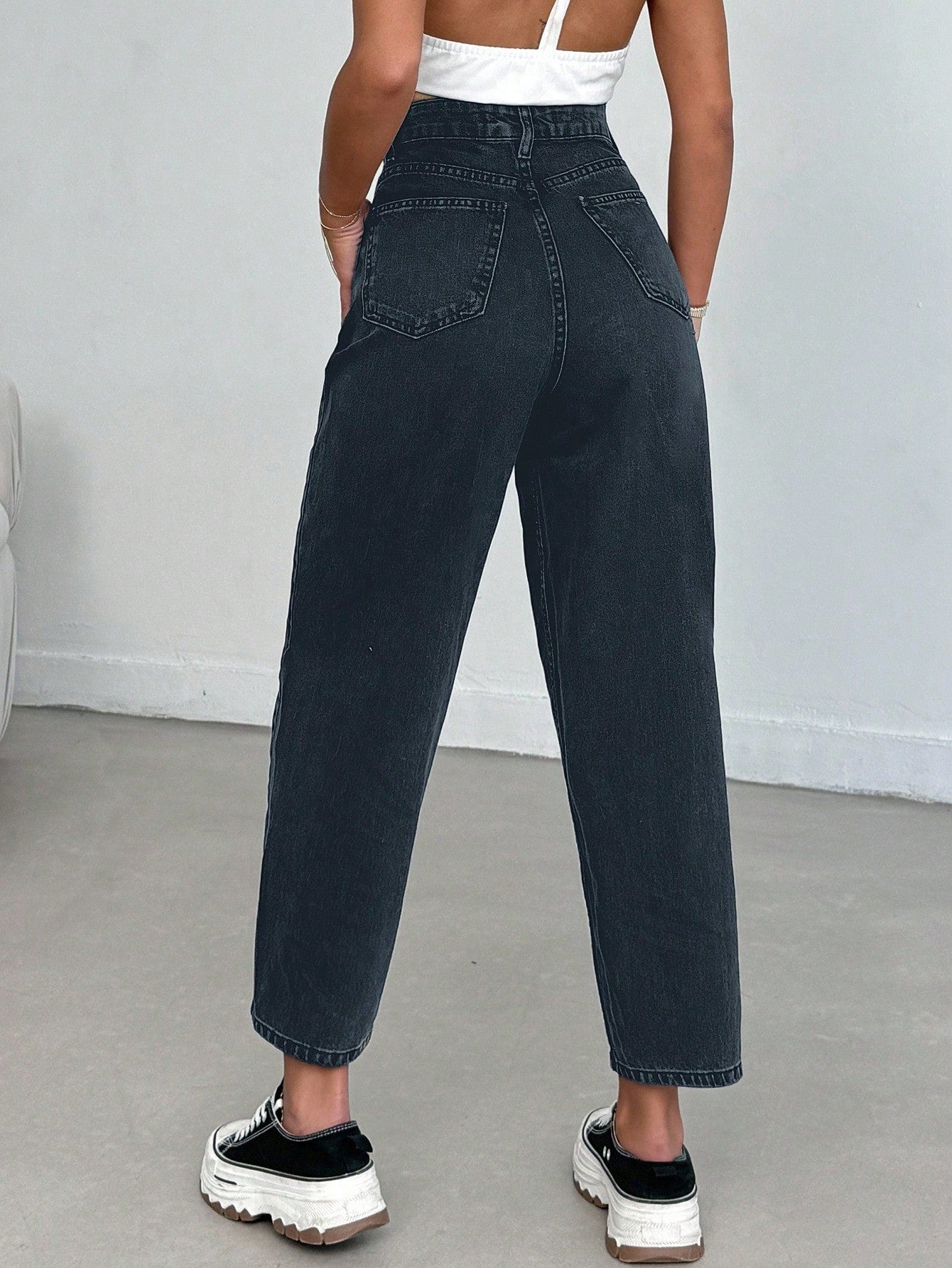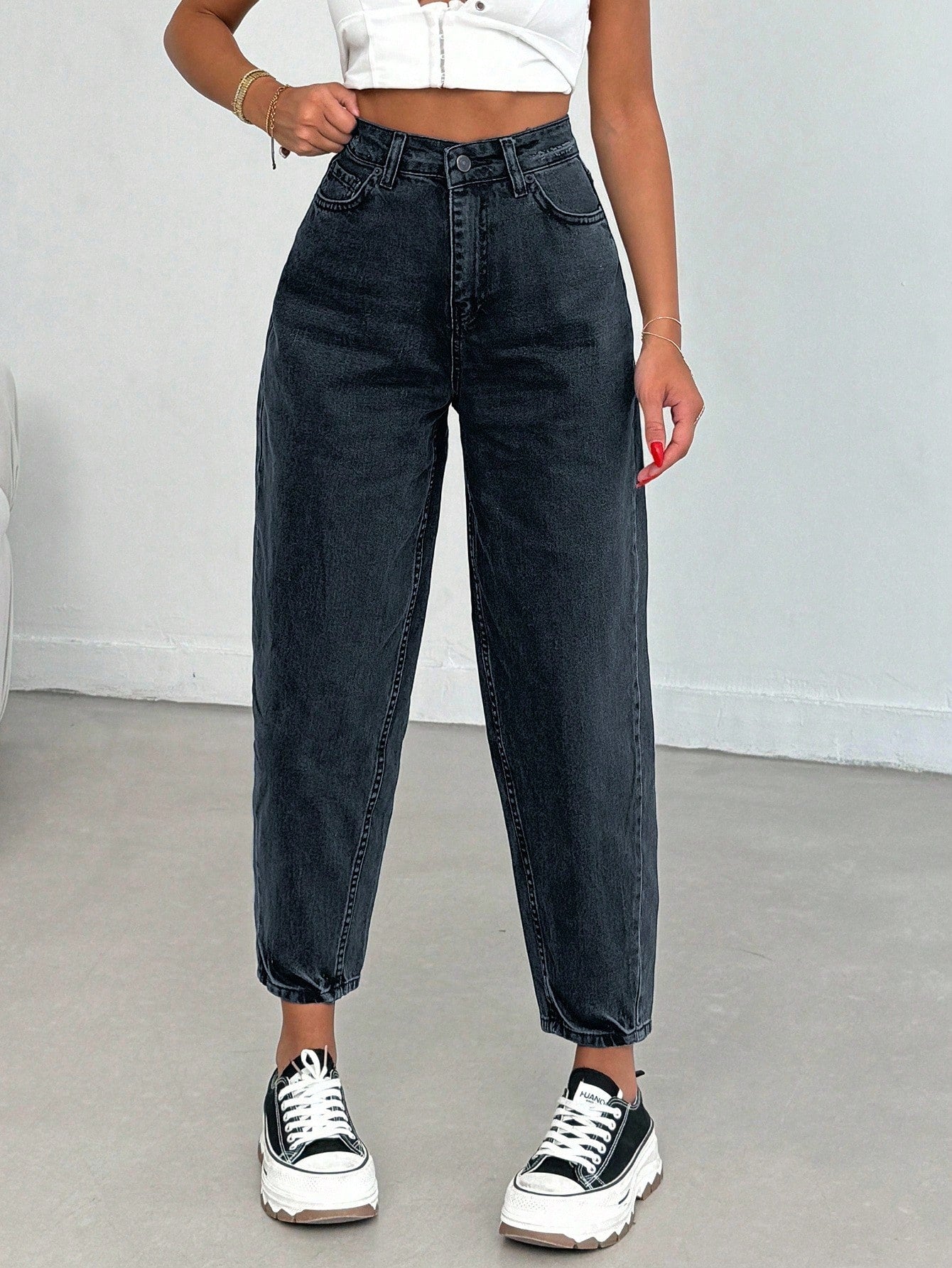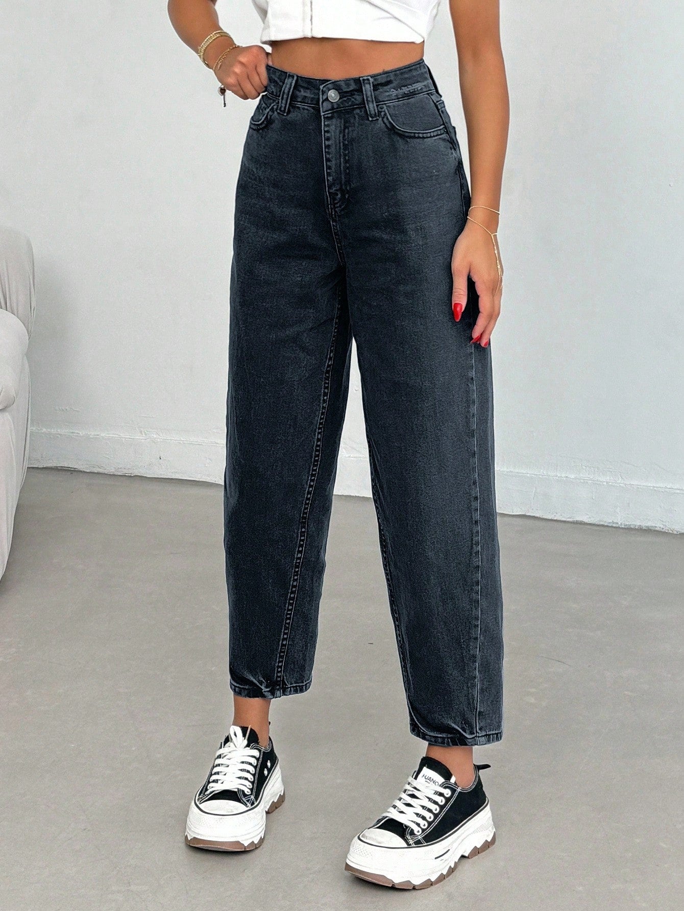 بنطلون جينز من EURMUSE مصنوع من القطن بنسبة 100%، بخصر عالٍ وقصة واسعة، رقم الموديل 06-559