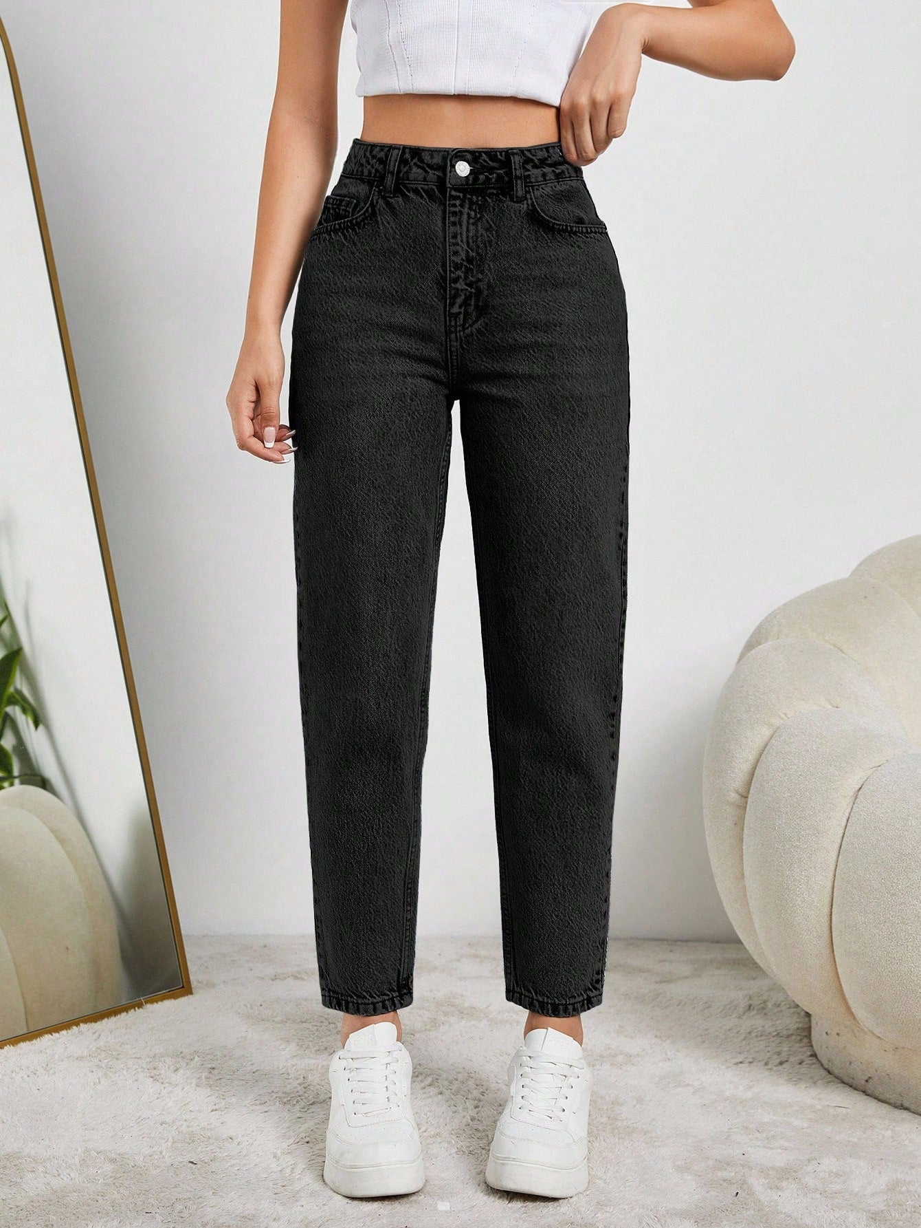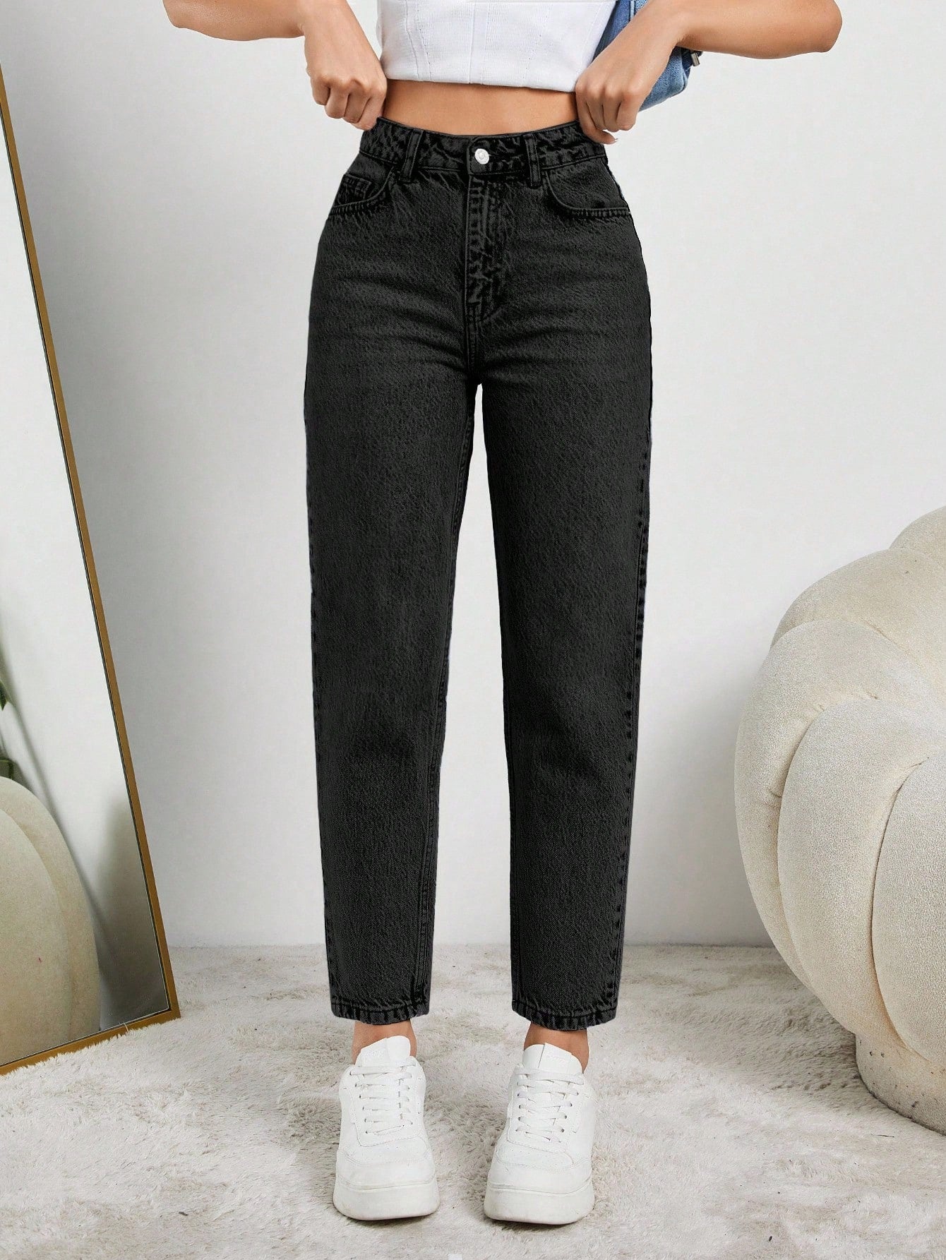 بنطلون جينز نسائي أسود مستقيم من EURMUSE، مصنوع من القطن بنسبة 100%، بقصة قصيرة
