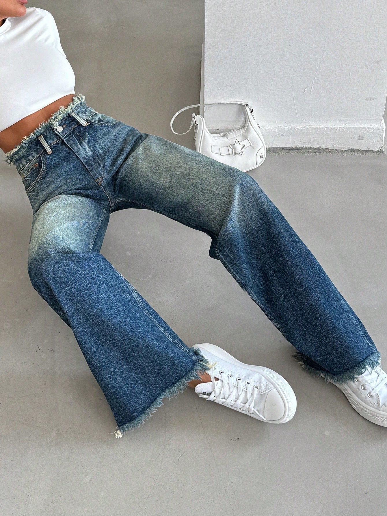 بنطال جينز أزرق عتيق بخصر عالٍ وقصة مستقيمة من يوروموز