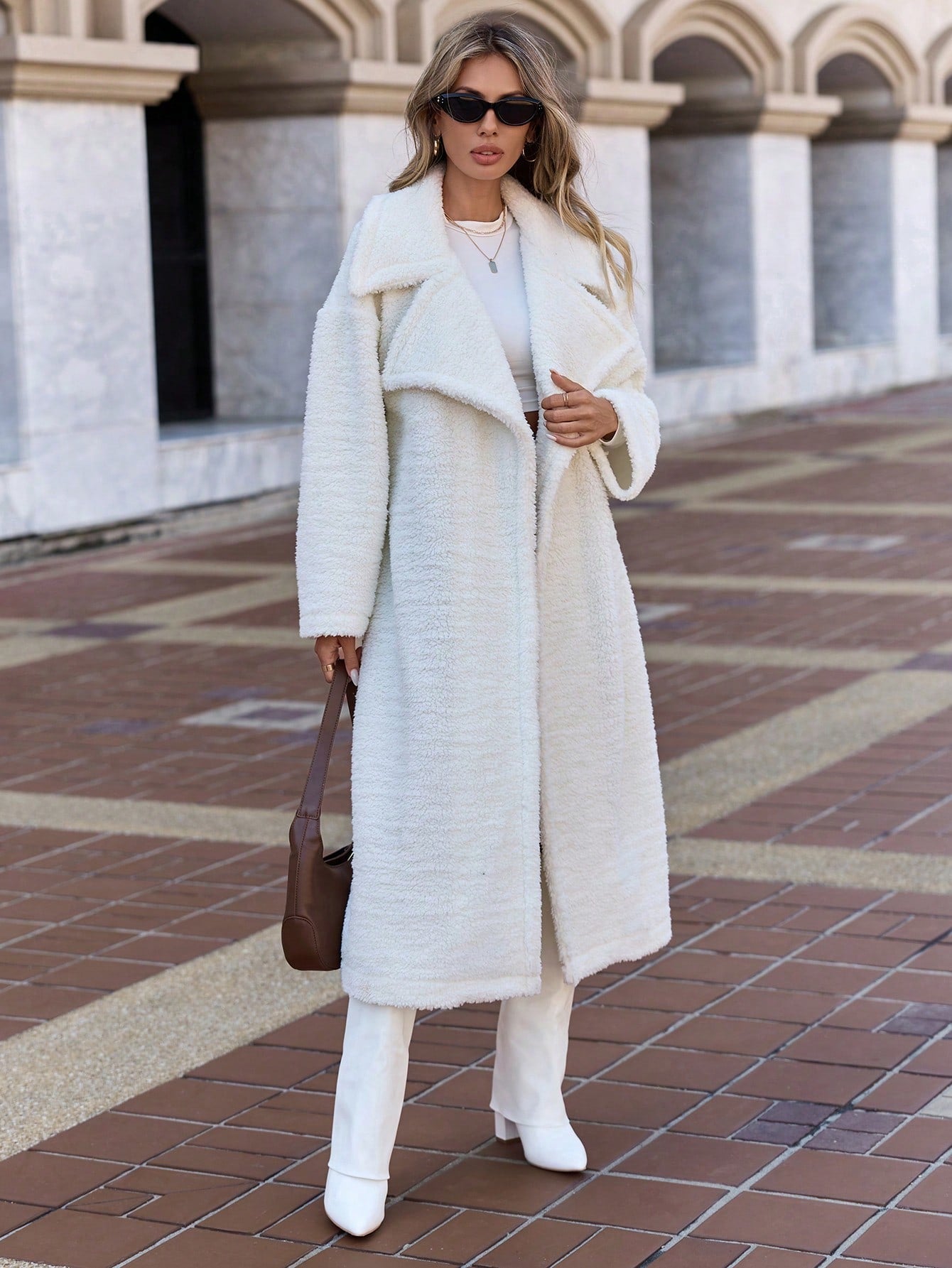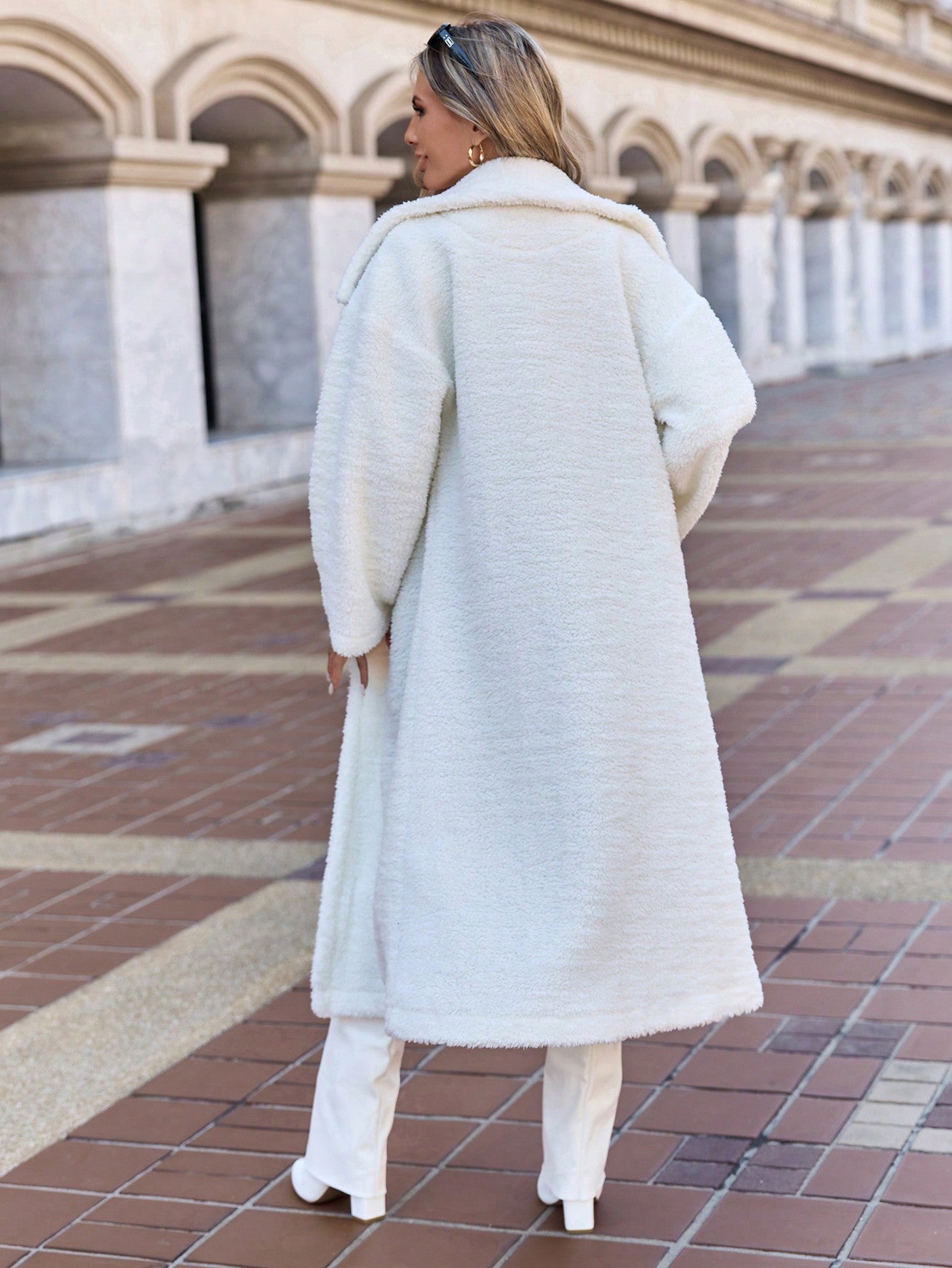 معطف تيدي من EURMUSE بياقة عريضة وأكتاف منسدلة - معطف نسائي أبيض سادة فضفاض بياقة عريضة وأكتاف منسدلة مناسب لفصل الخريف المتأخر