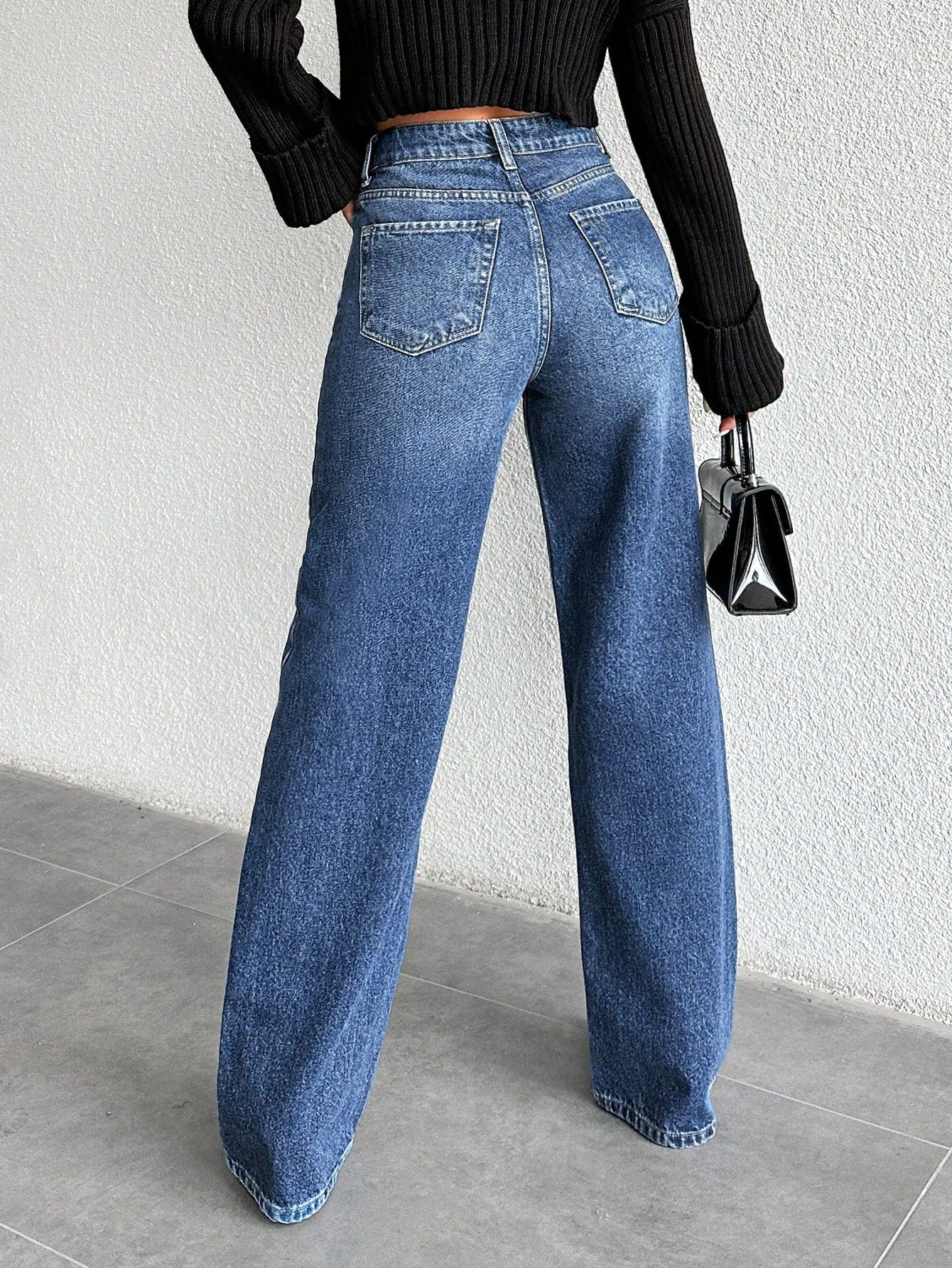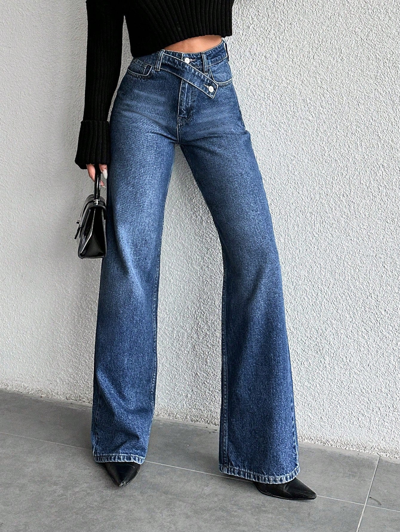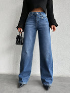 بنطلون جينز مستقيم من EURMUSE بلون موحد وخصر عريض