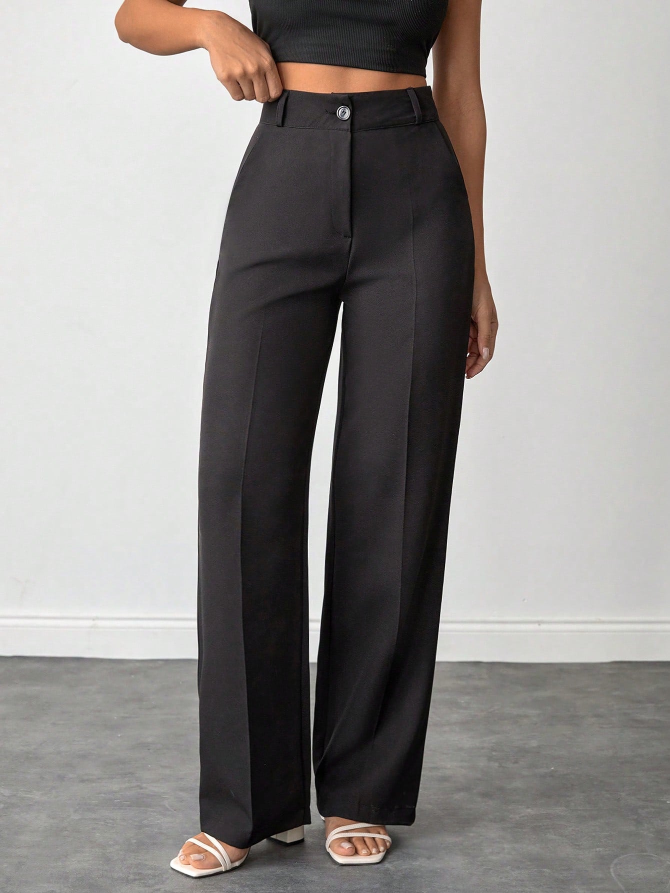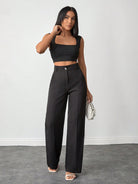 بنطلون نسائي من EURMUSE بلون موحد، بخصر عالٍ وقصة مستقيمة