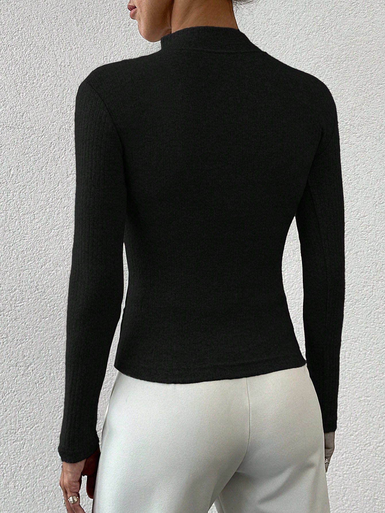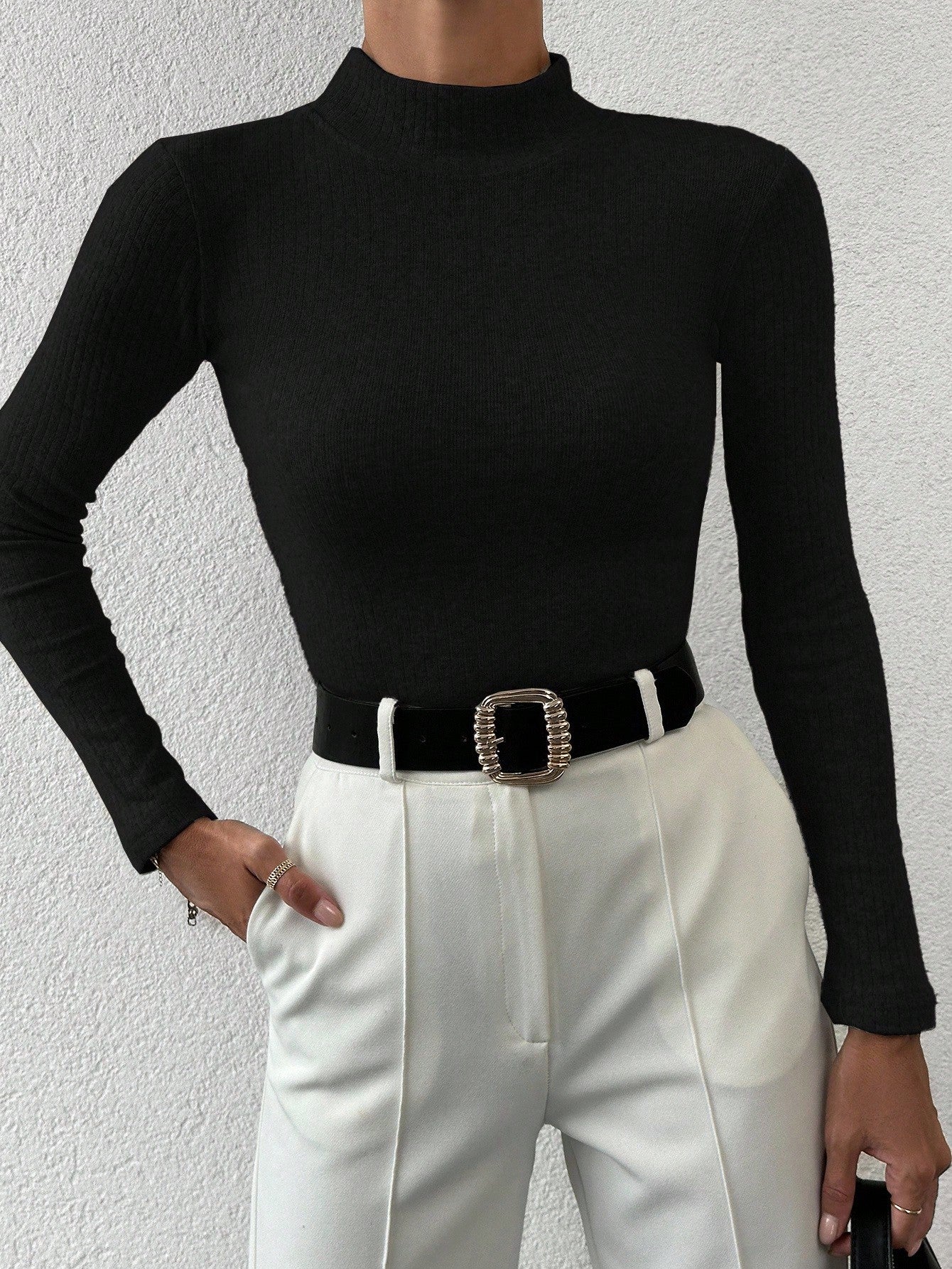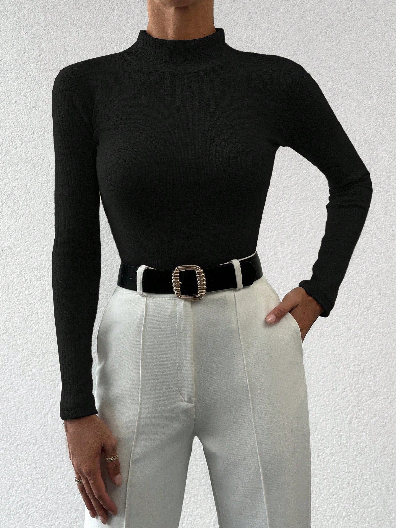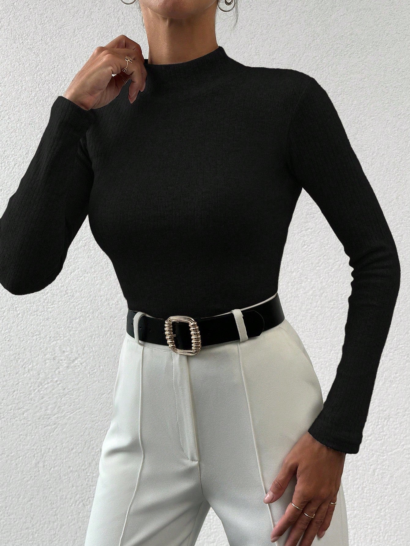 كنزة نسائية من EURMUSE بقصة ضيقة ولون موحد وياقة عالية