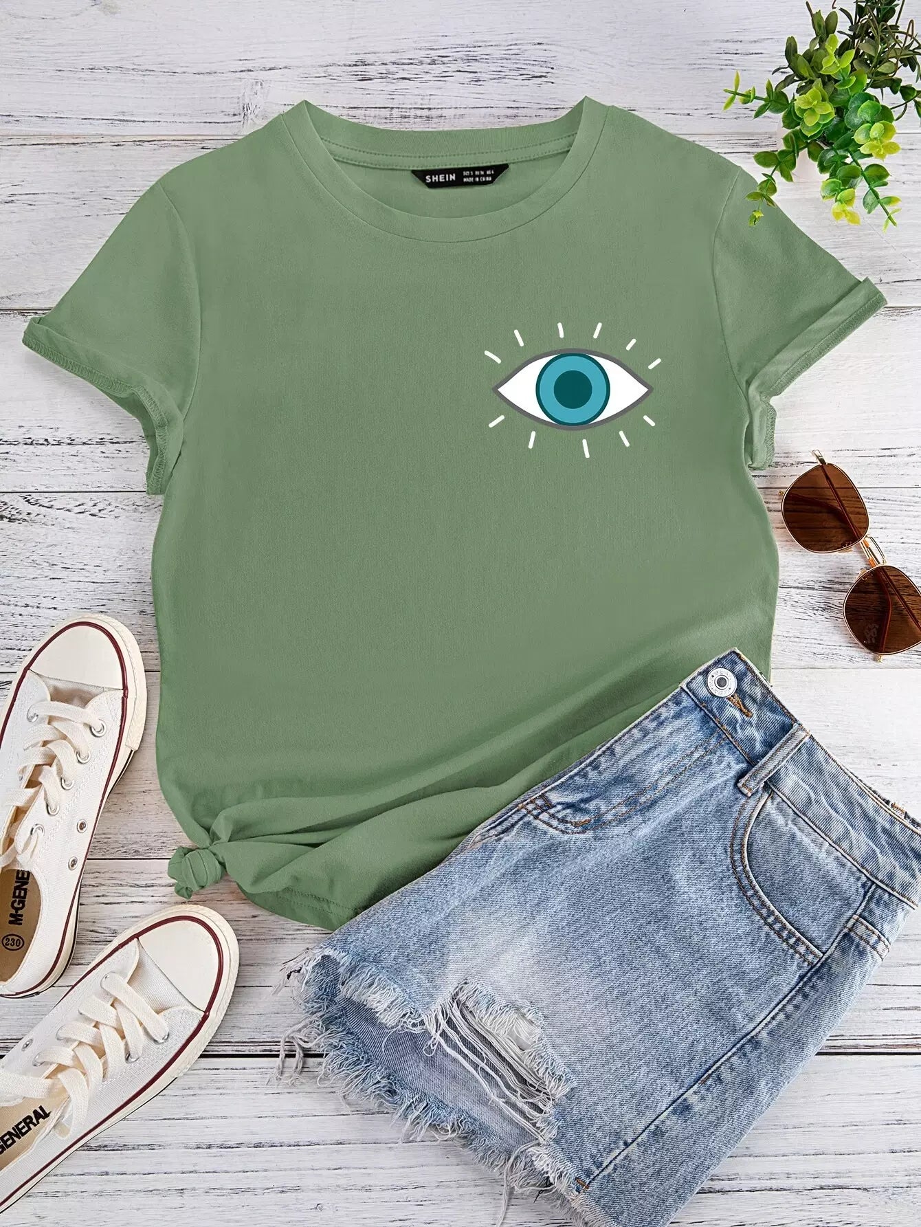 تي شيرت برقبة مستديرة مطبوع عليه عينين