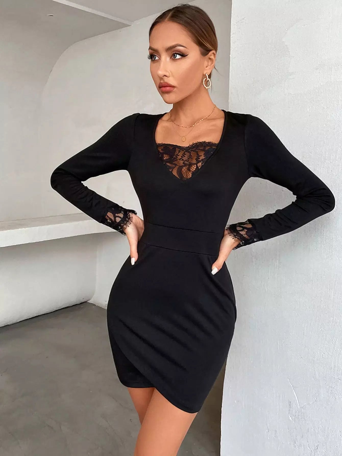 فستان ضيق بحاشية من زهرة التوليب وتفاصيل من الدانتيل