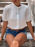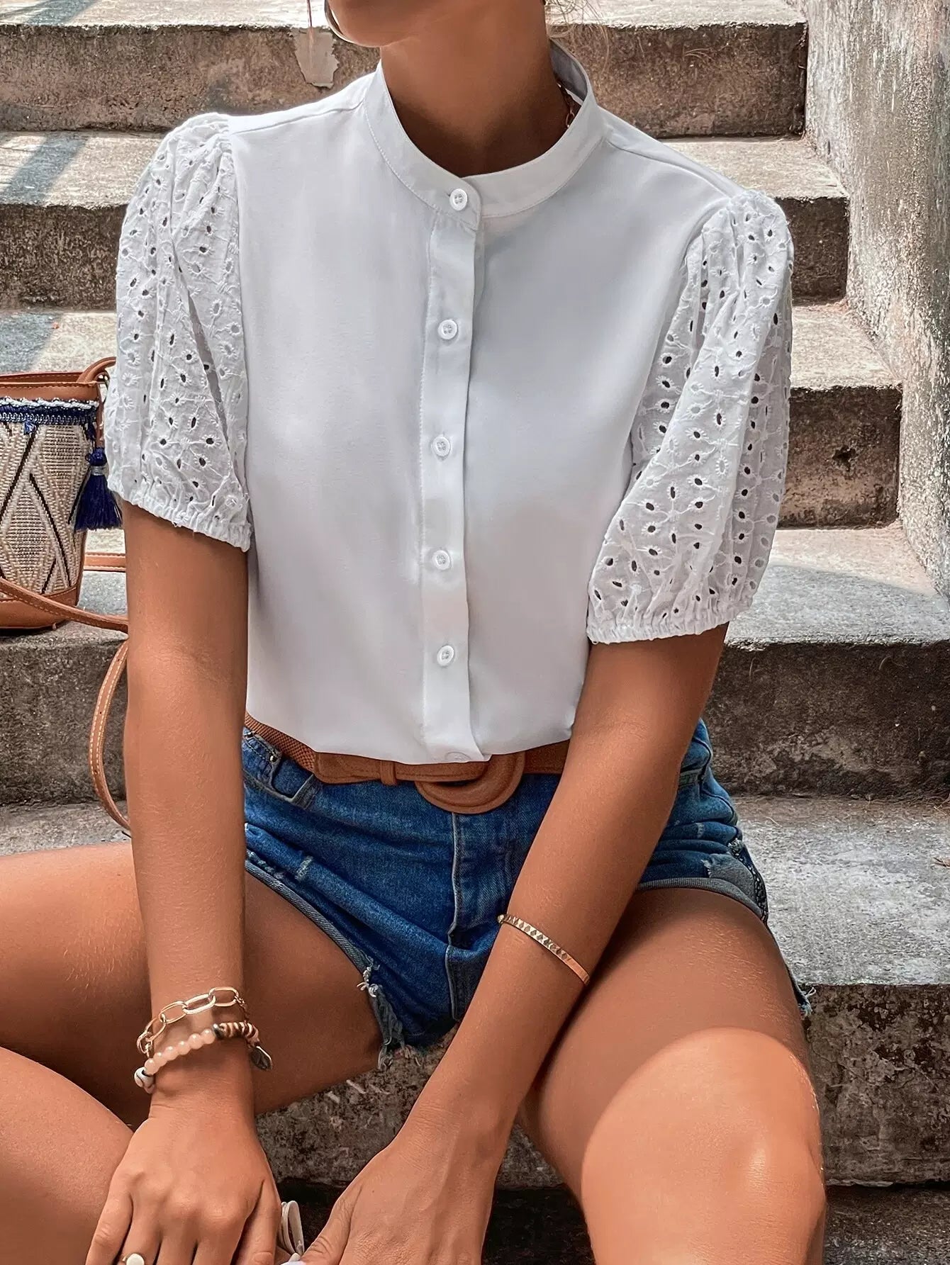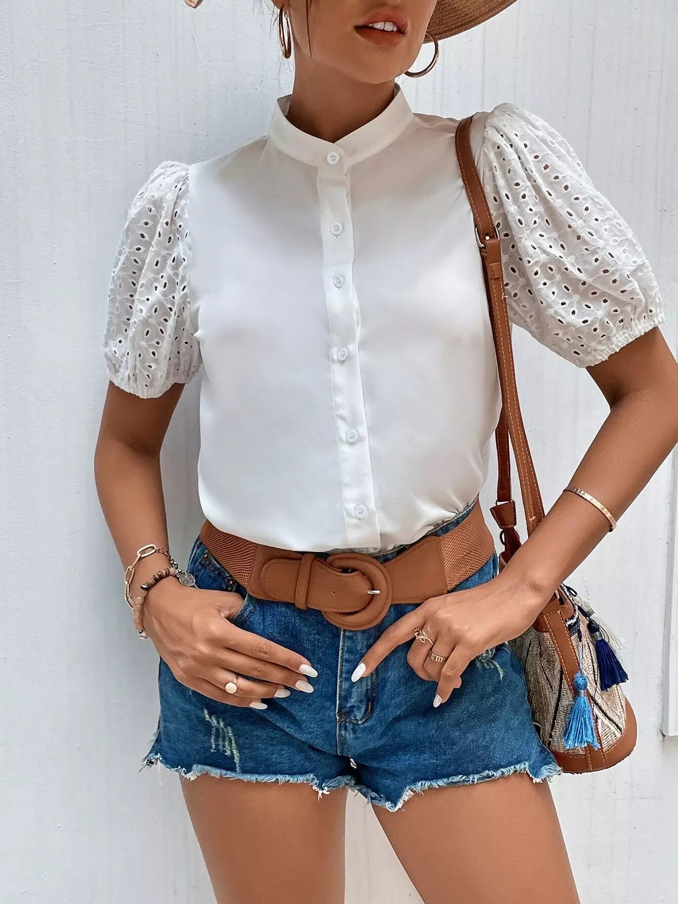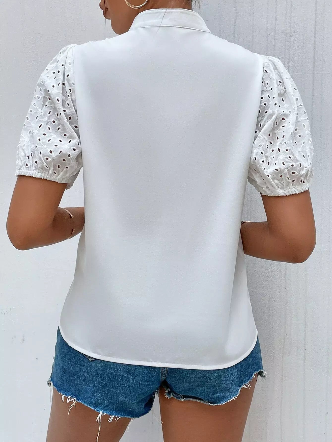 بلوزة بأكمام منفوخة مطرزة بتطريزات العيينة