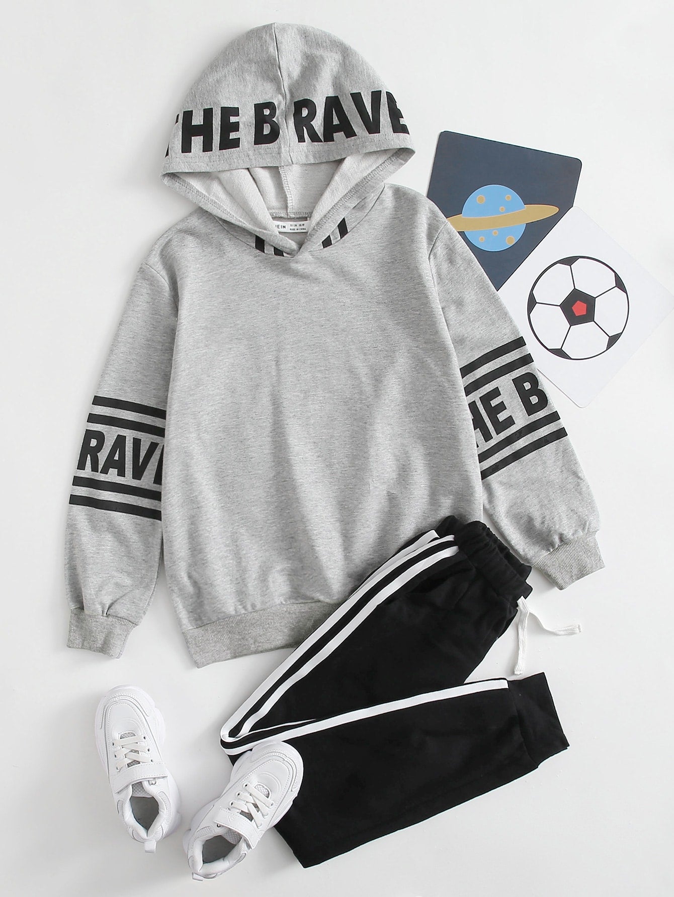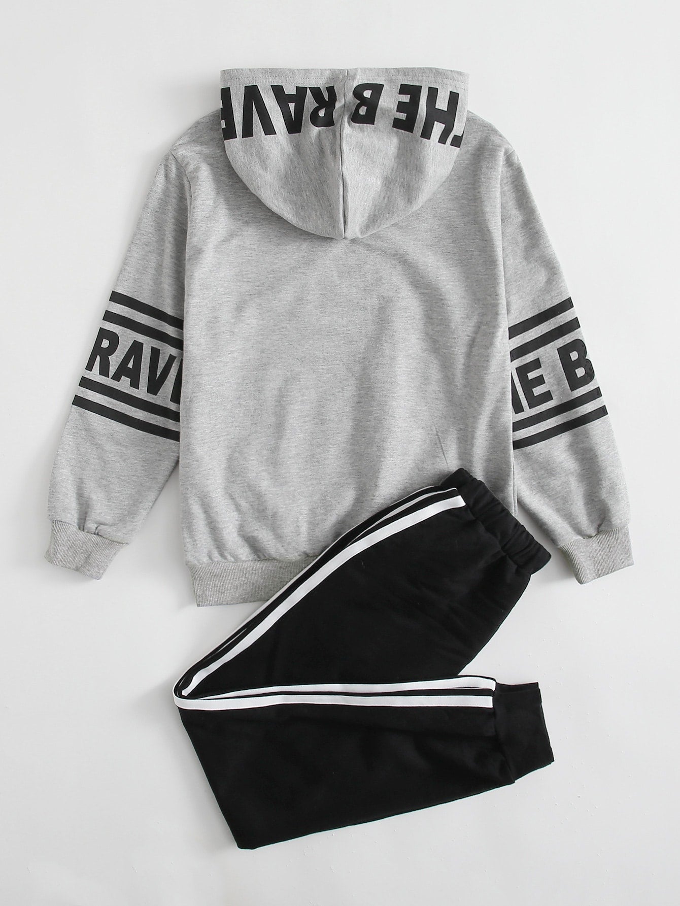 Boys Letter Graphic Hoodie & Side Stripe Drawstring Sweatpants Set