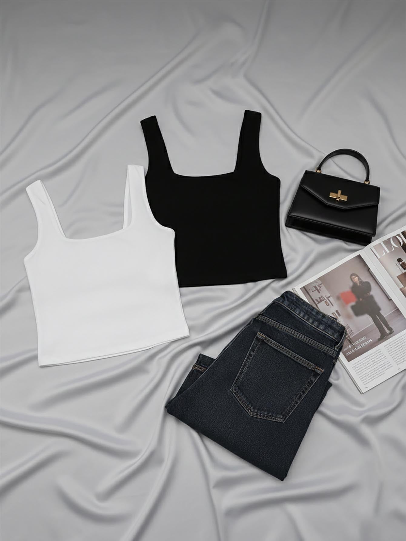 طقم إيزيوير مكون من قطعتين، بلوزة رياضية بسيطة متعددة الاستخدامات باللونين الأسود والأبيض للنساء