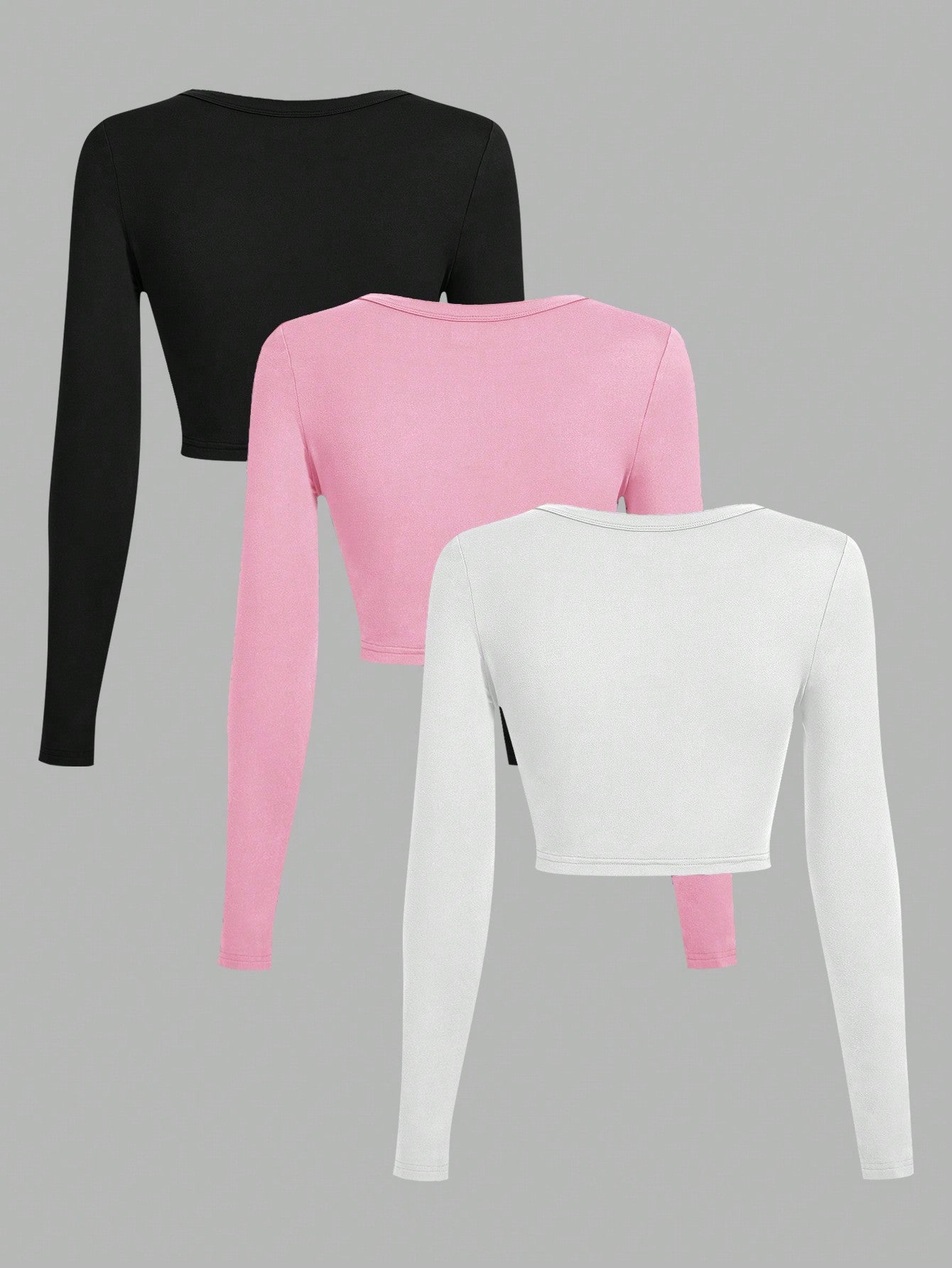 طقم تيشيرتات إيزيوير مكون من 3 قطع، بتصميم كاجوال، بياقة على شكل حرف U، وقصة ضيقة، وأكمام قصيرة وطويلة.