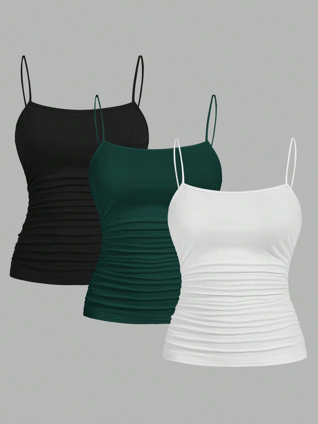 طقم من 3 قطع من إيزي وير، بلوزات كاميسول ضيقة بتصميم جانبي مكشكش للنساء