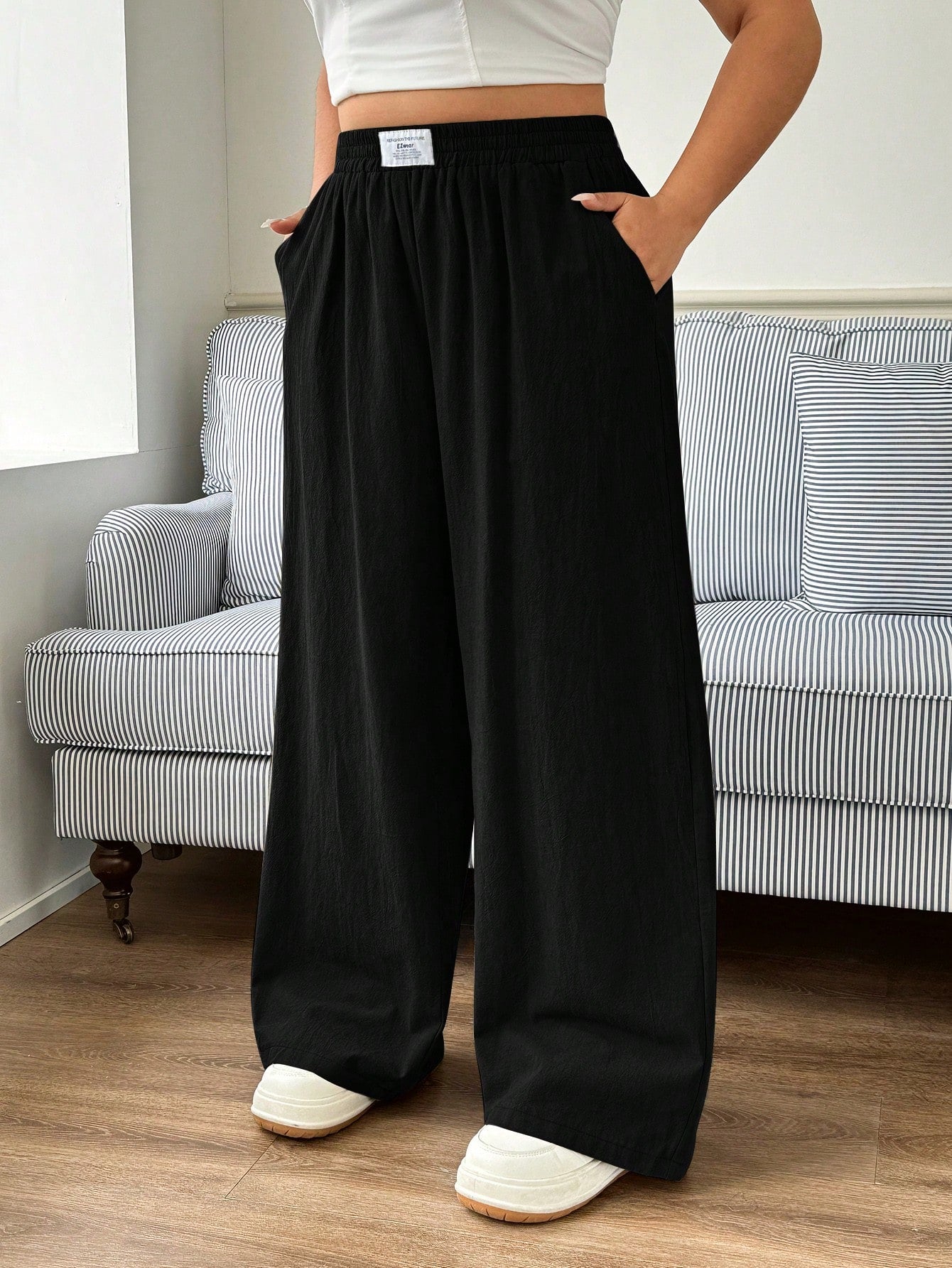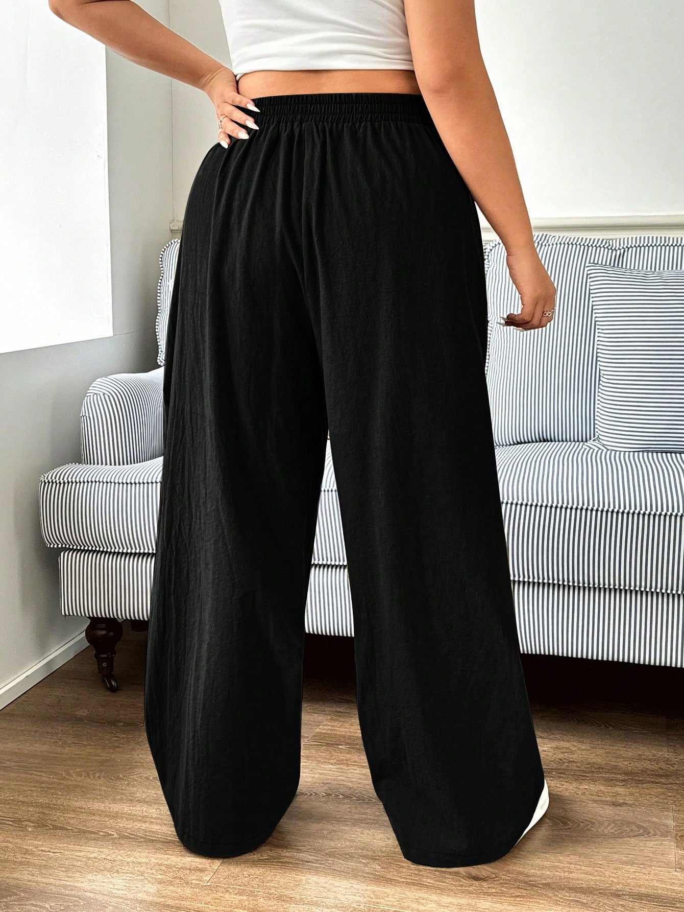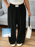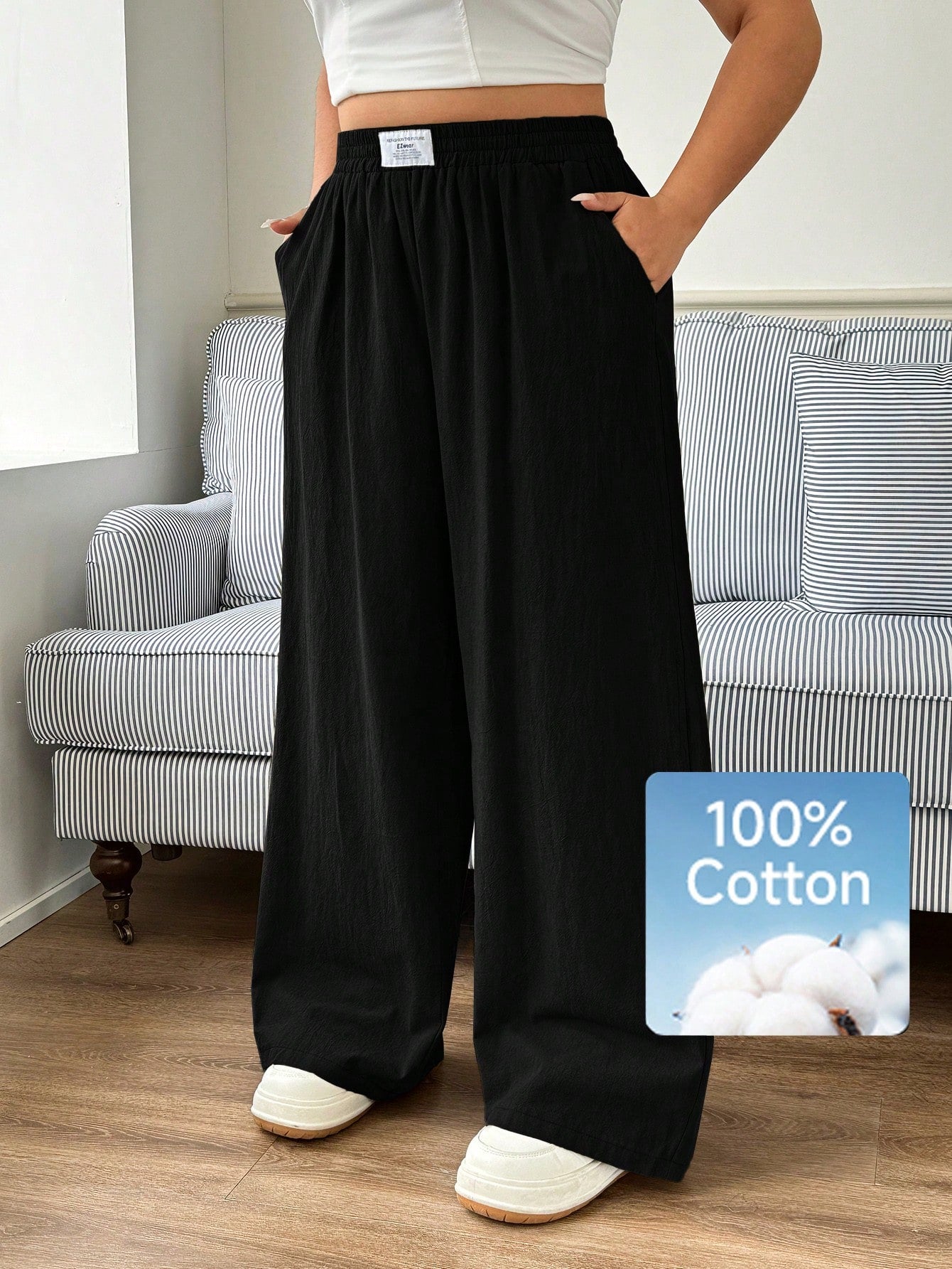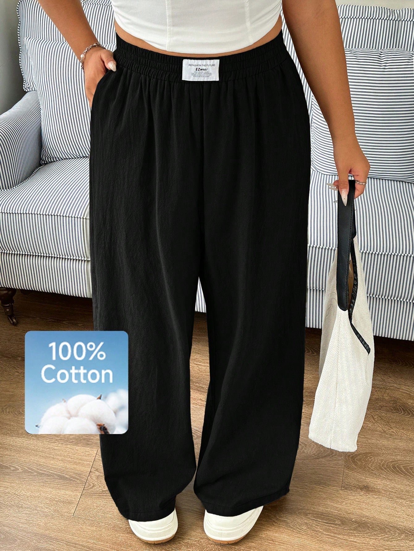 EZwear New Plus Size Casual Black Simple Versatile Pants, 100% Cotton Wide Leg Pants, Women Pants Wide