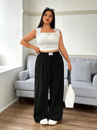 بنطلون EZwear جديد متعدد الاستخدامات باللون الأسود بمقاسات كبيرة، بنطلون واسع الساق من القطن بنسبة 100%، بنطلون نسائي واسع