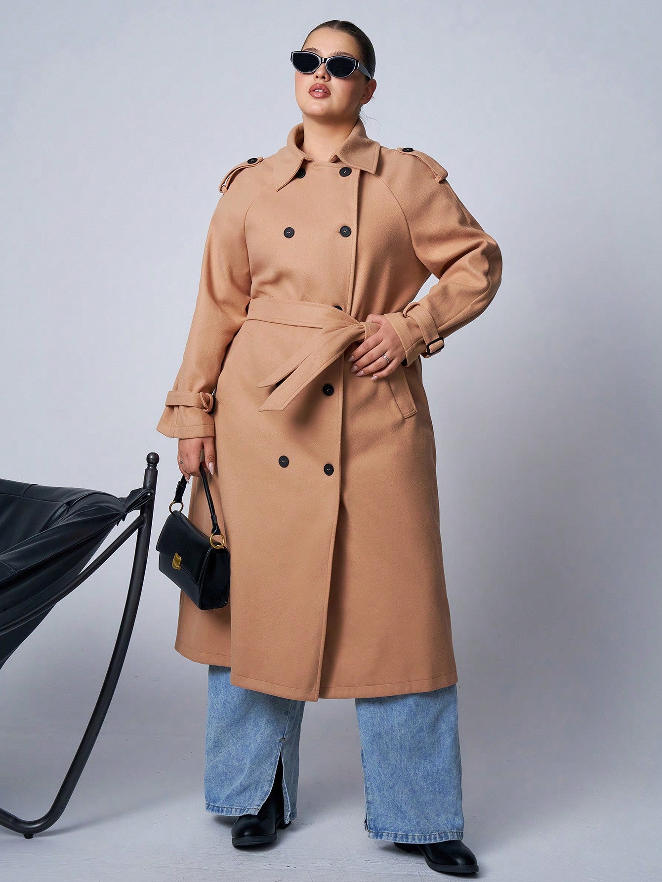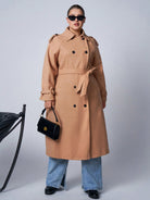معطف ترنش بني اللون من إيزيوير، مقاسات كبيرة، مناسب لفصلي الخريف والشتاء
