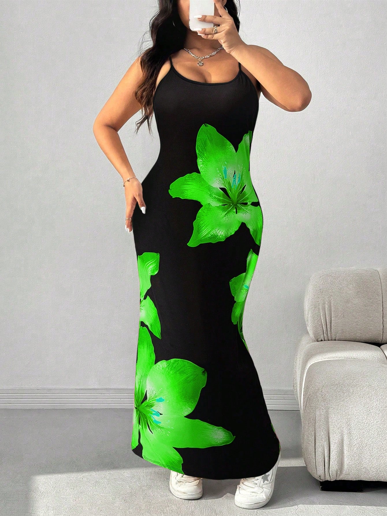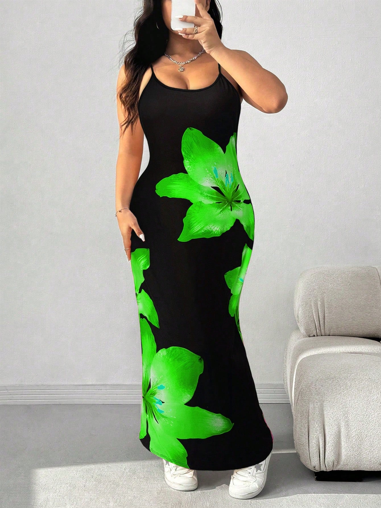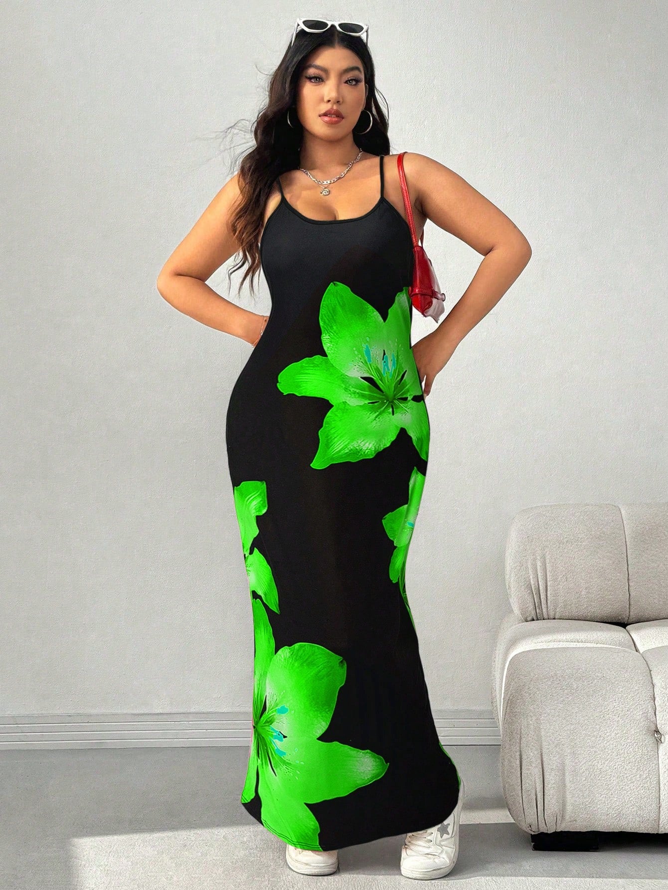 فستان كاجوال بمقاسات كبيرة من إيزي وير، أحمر بنقشة زهور.