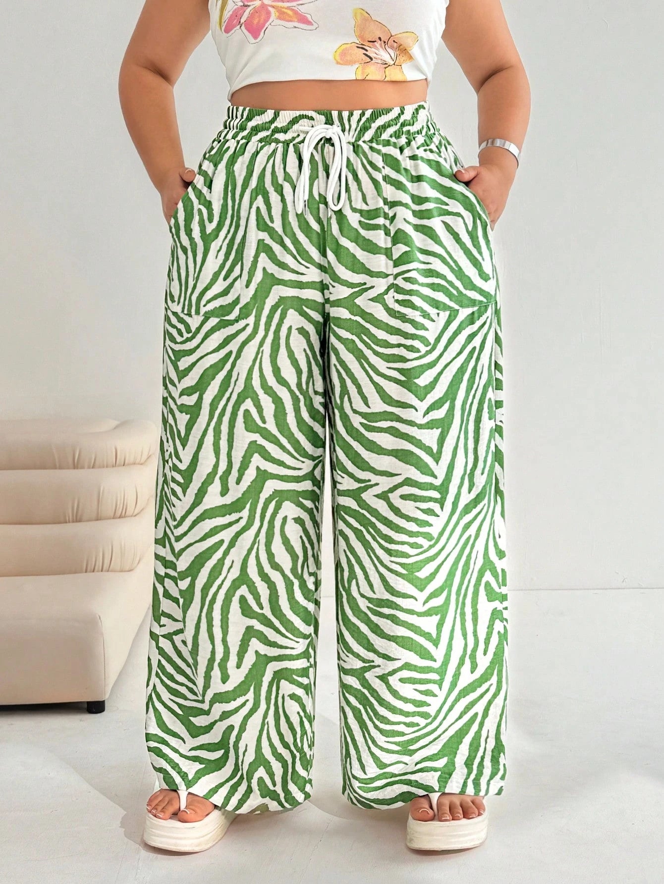 بنطلون نسائي كاجوال أخضر مقاس كبير من EZwear، صيفي، إجازة، صيف أوروبي، شاطئ، مدرسة، خريف، غداء