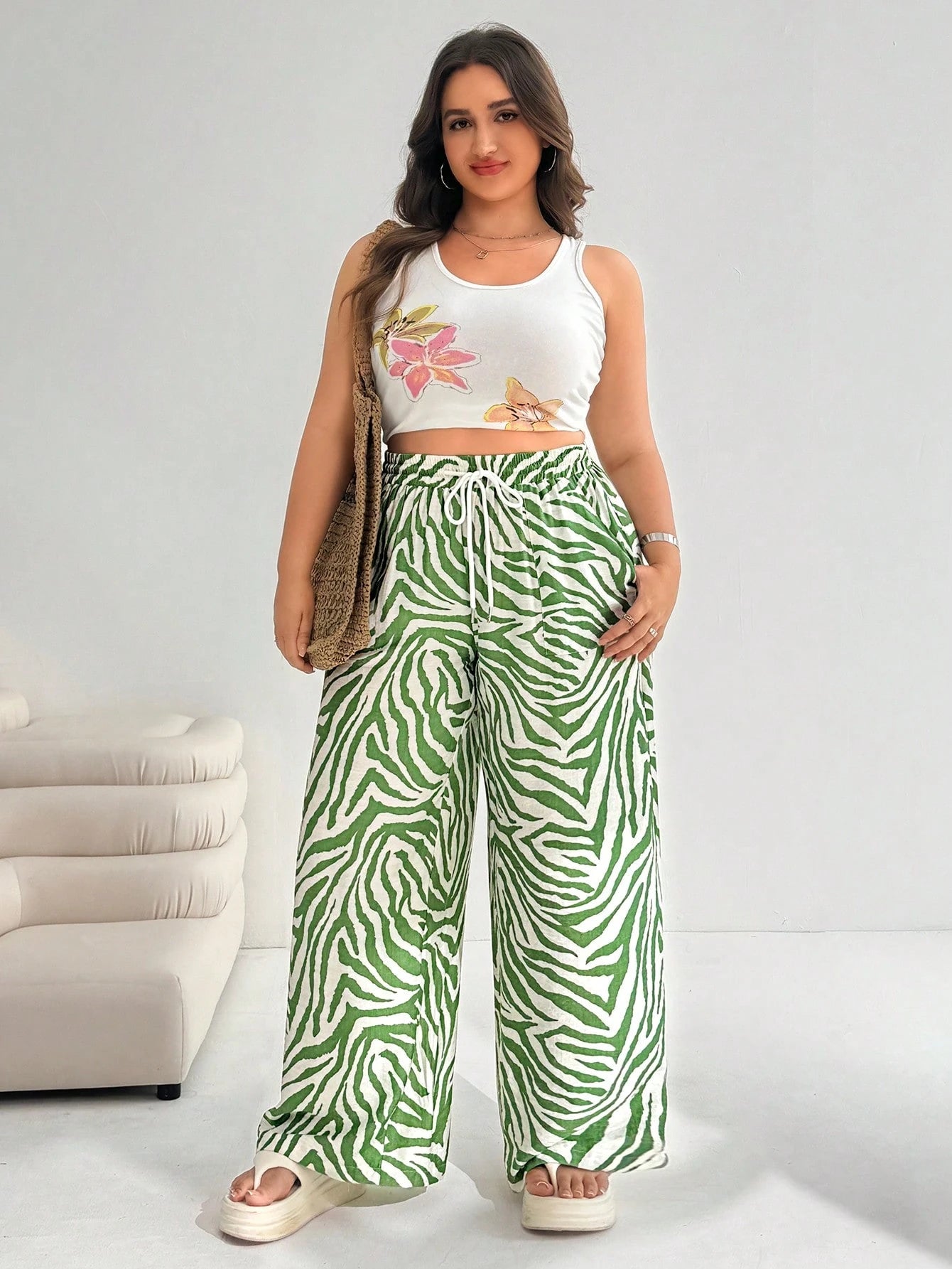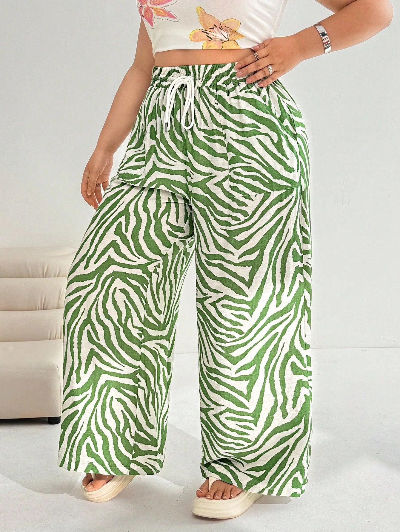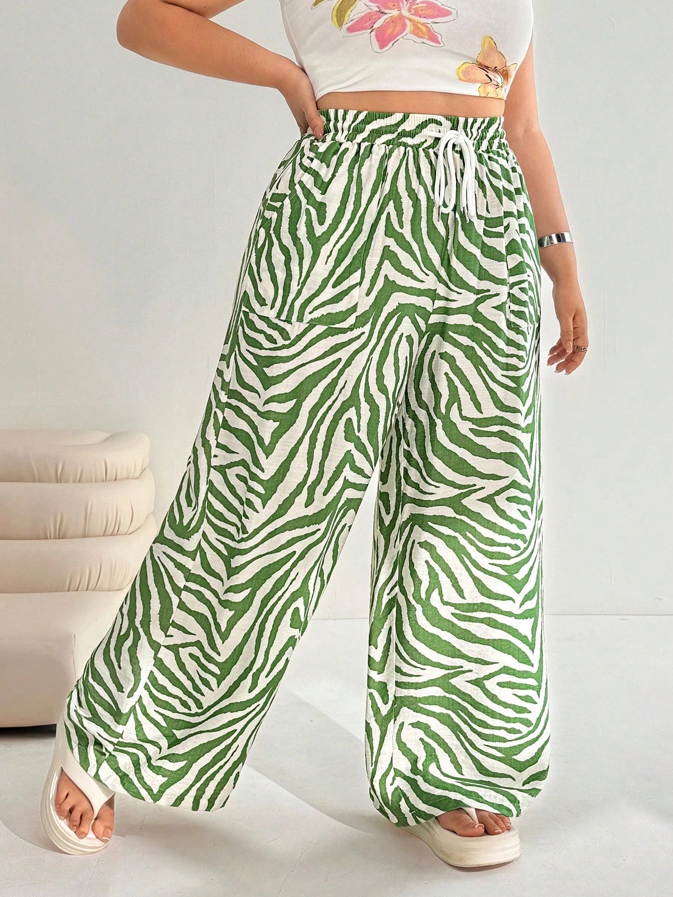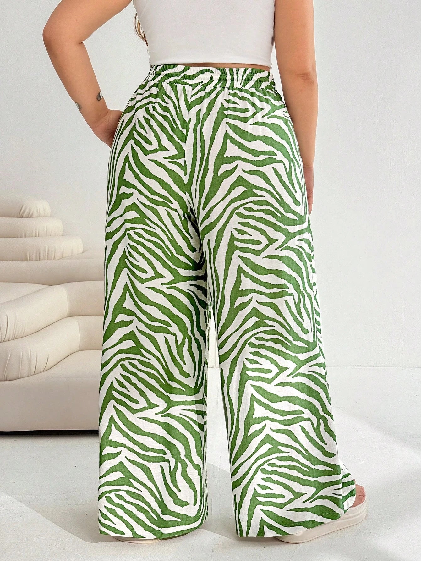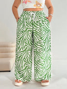 EZwear Plus Size Women's Green Casual Pants, Summer,Vacation,European Summer,Beach,School,Fall,Brunch