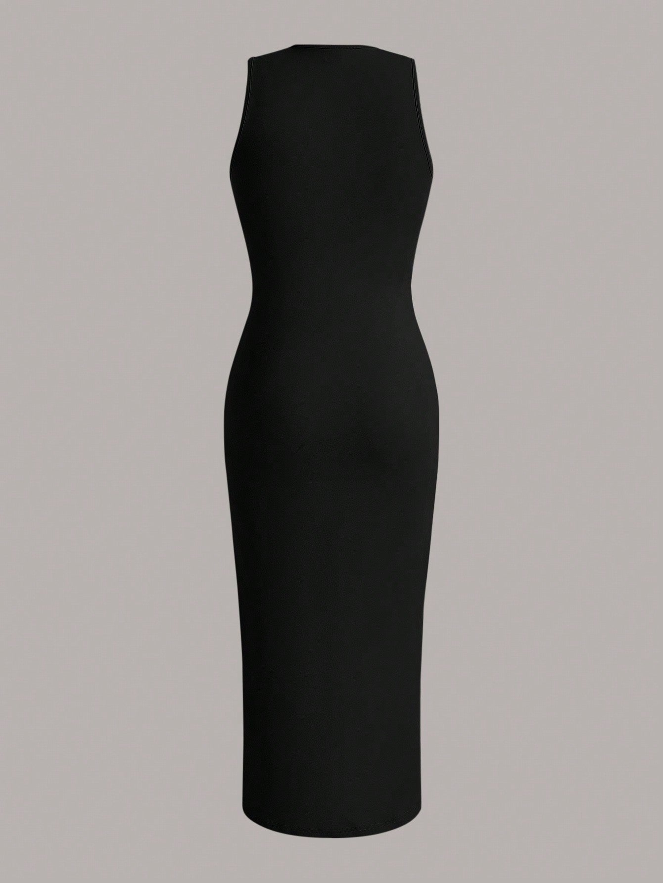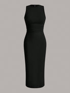 فستان EZwear سادة بدون أكمام بخصر مكشكش، فساتين صيفية للنساء، فستان حفلات الشاي