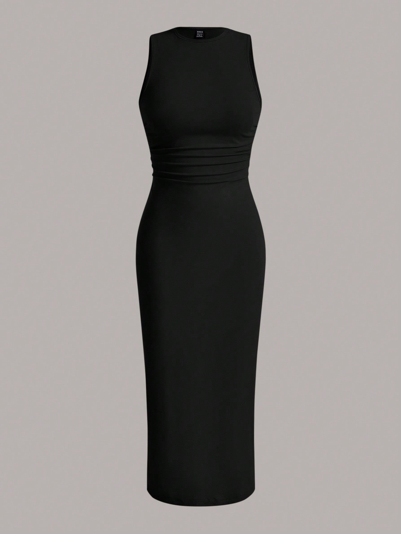 EZwear Solid Ruched Waist Tank Dress,Summer Dresses For Women,Tea Party Dress