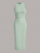 EZwear Summer Outfits Solid Ruched Waist Dress,Sage Green Dress,Summer Dresses For Women,Pastel Dresses