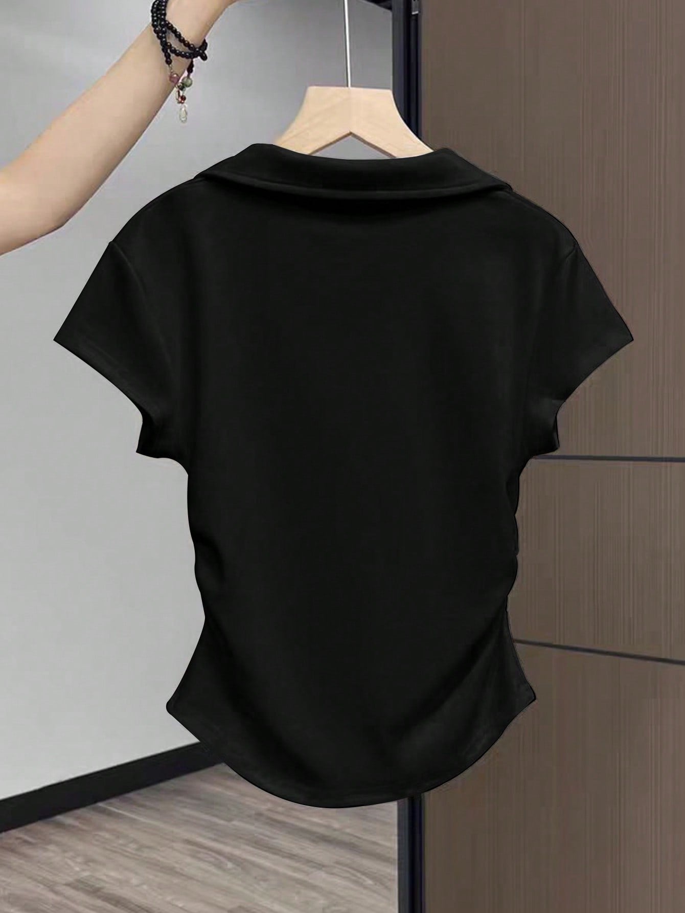 تيشيرت نسائي بأكمام قصيرة وياقة مزينة بفيونكة من إيزيوير