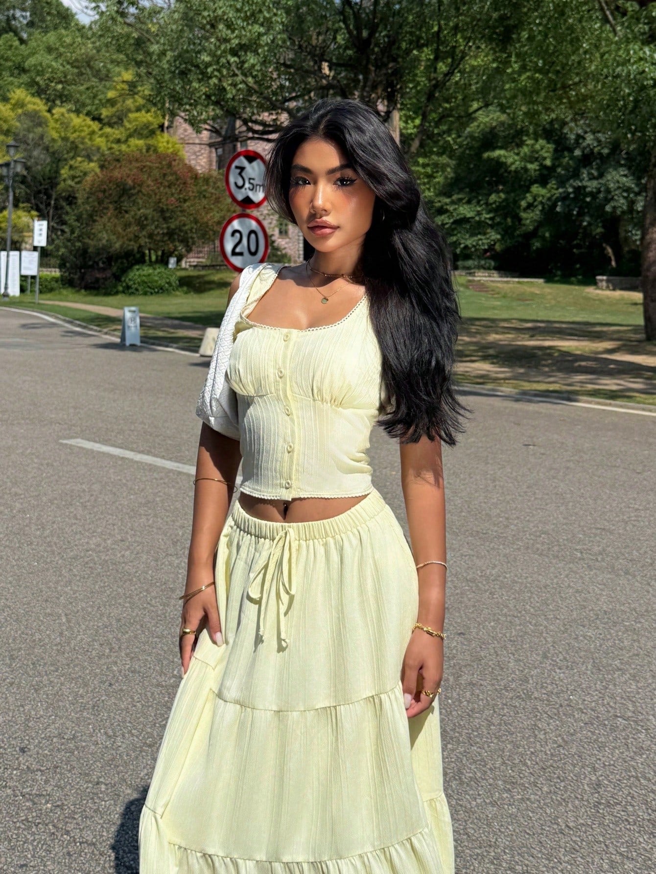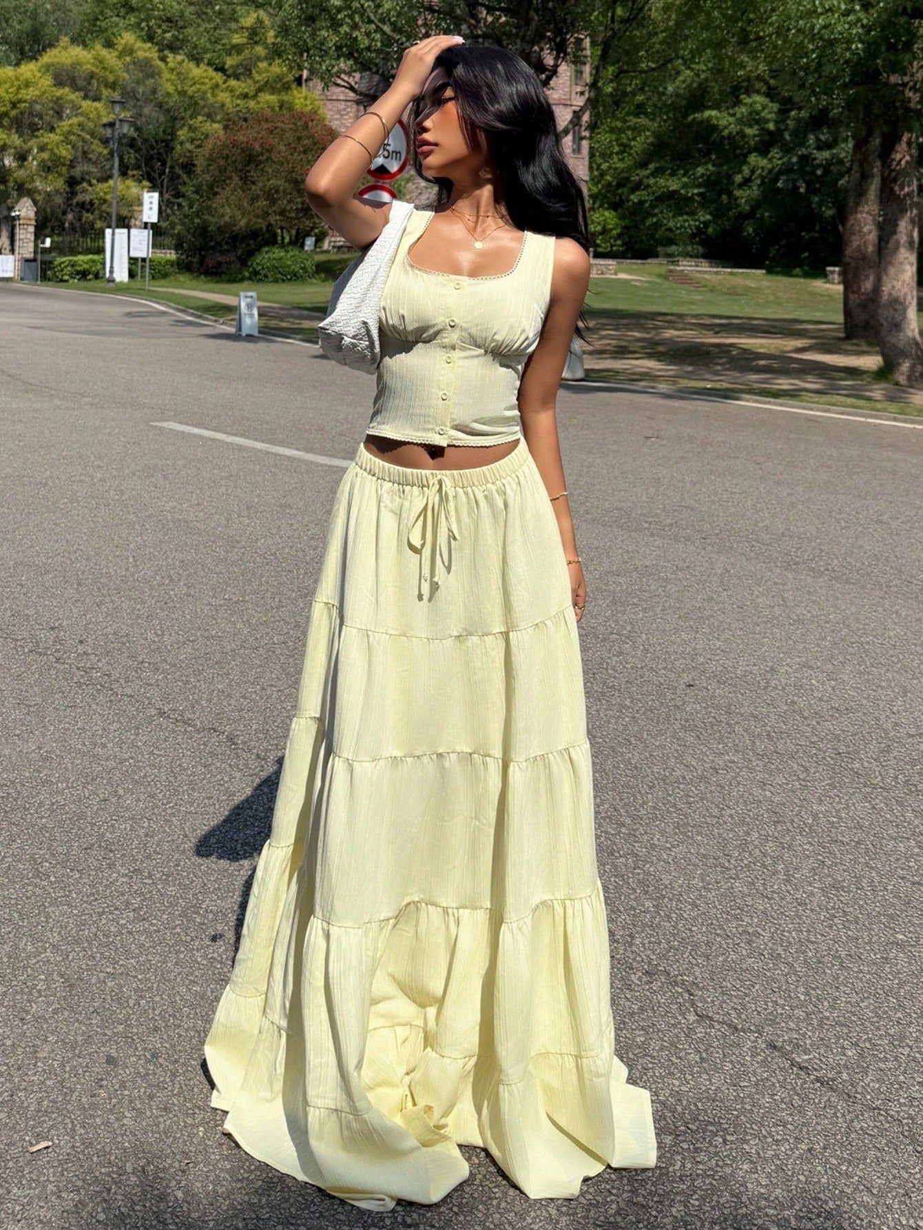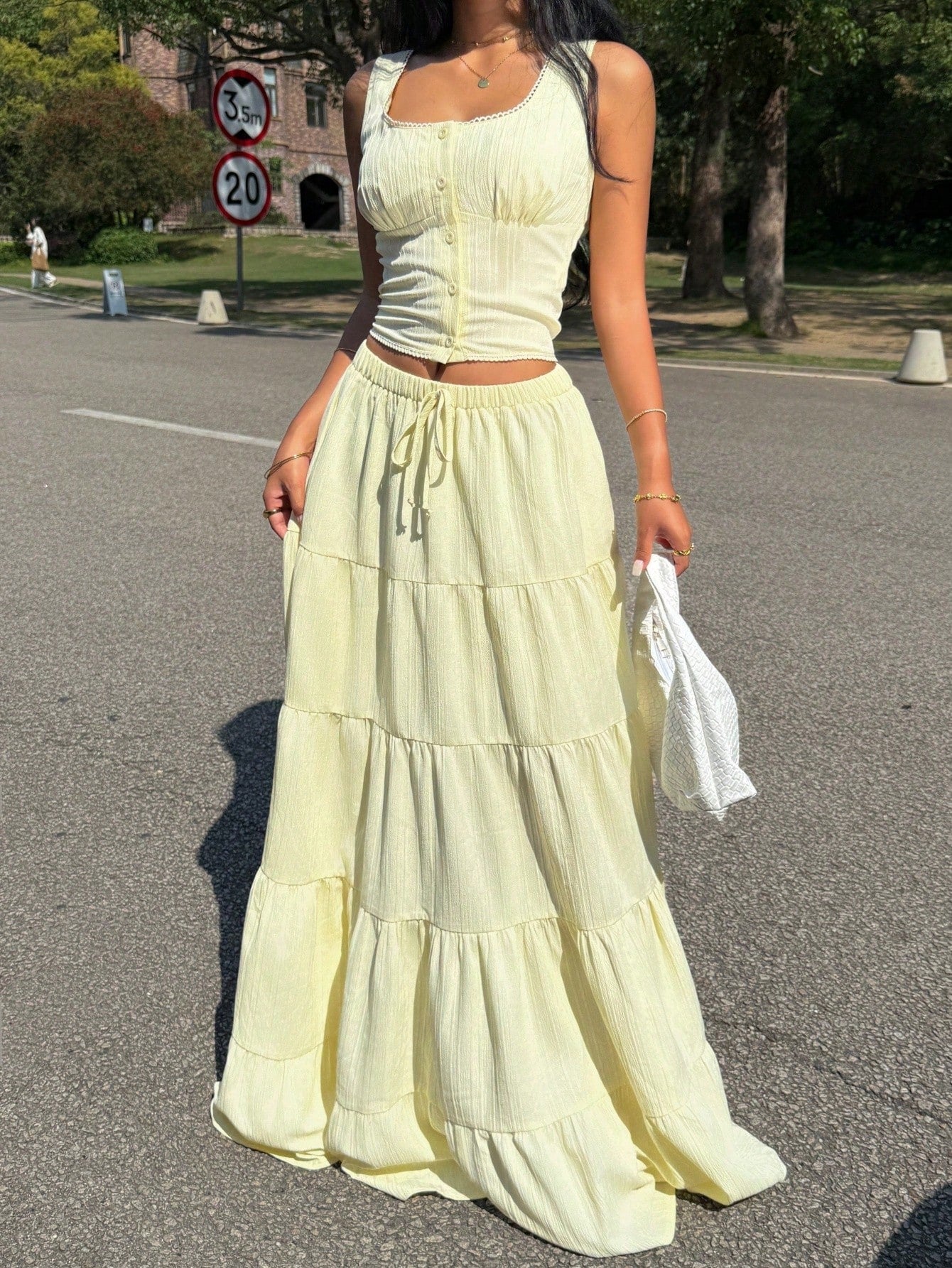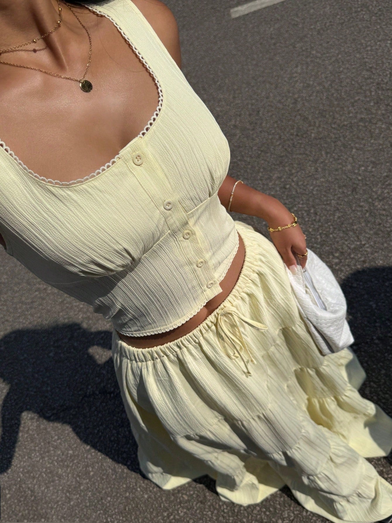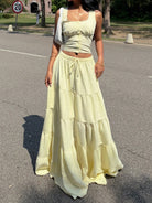 طقم ملابس نسائي أصفر من قطعتين من إيزي وير، مناسب للارتداء اليومي، طقم صيفي بوهيمي أنيق