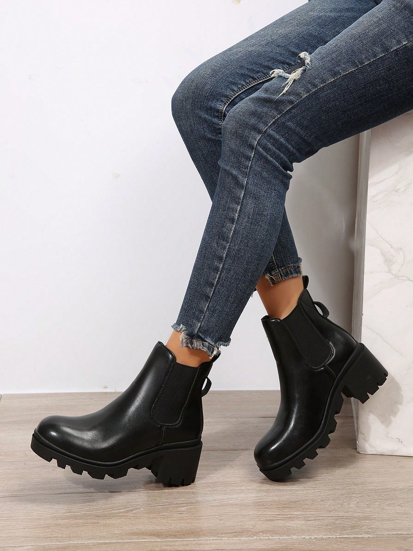 مجموعة خريف/شتاء 2025، زوج واحد من الأحذية النسائية السوداء ذات الكعب العريض سهلة الارتداء