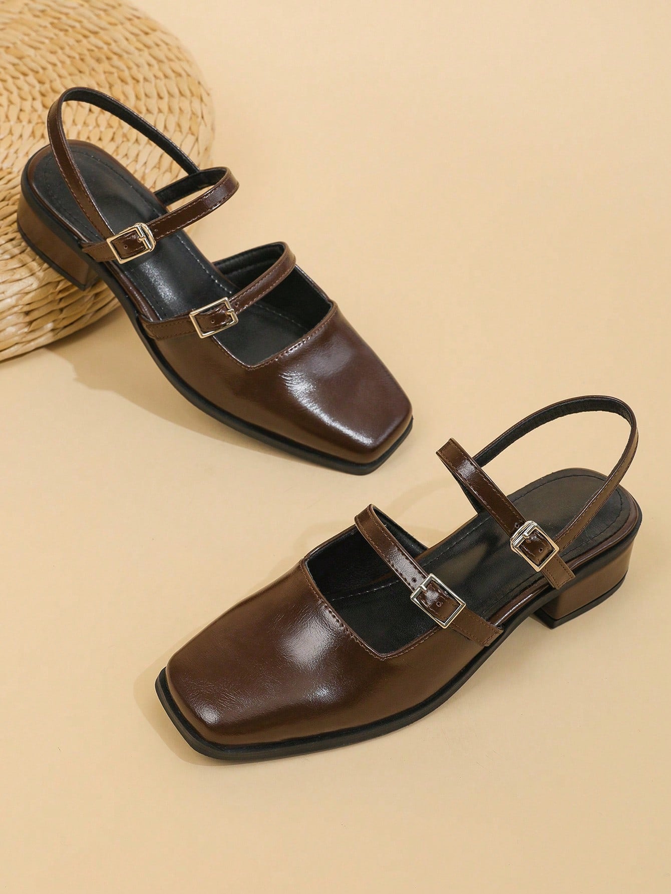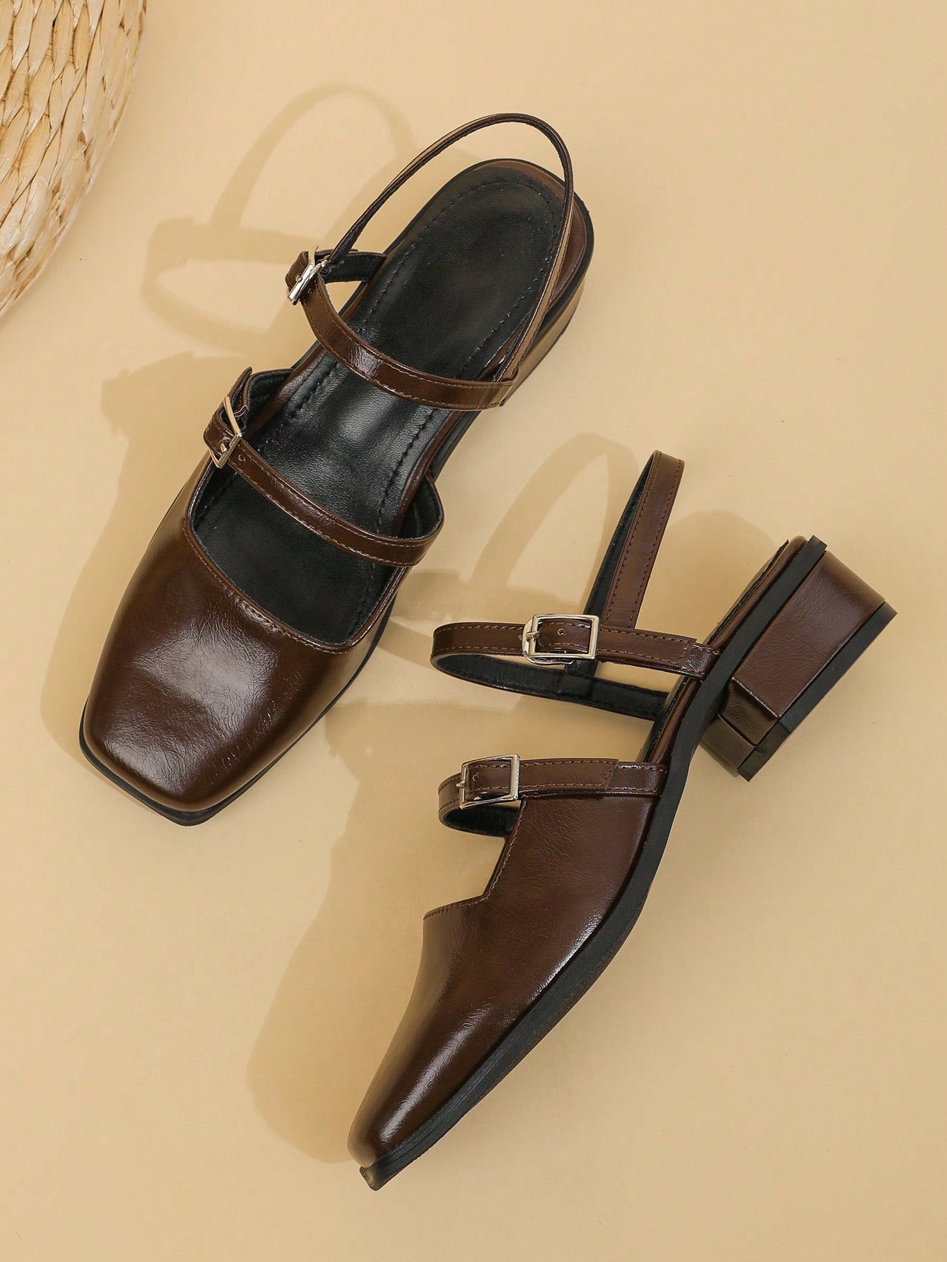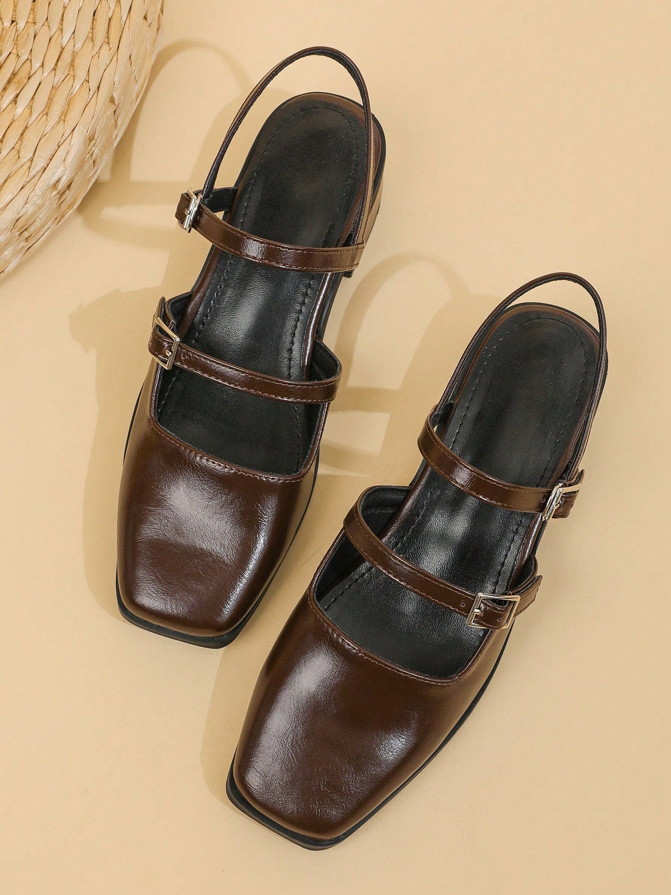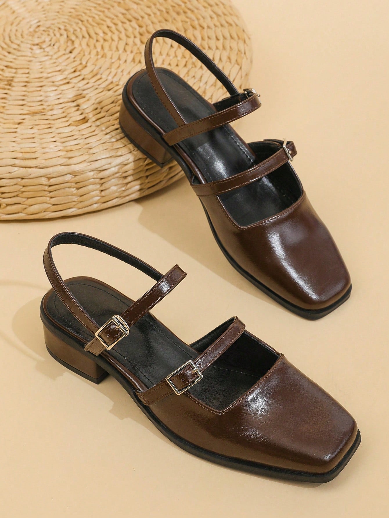 أحذية ماري جين نسائية بلون بني قهوة، خريف/شتاء 2025، مزودة بإبزيم وكعب سميك