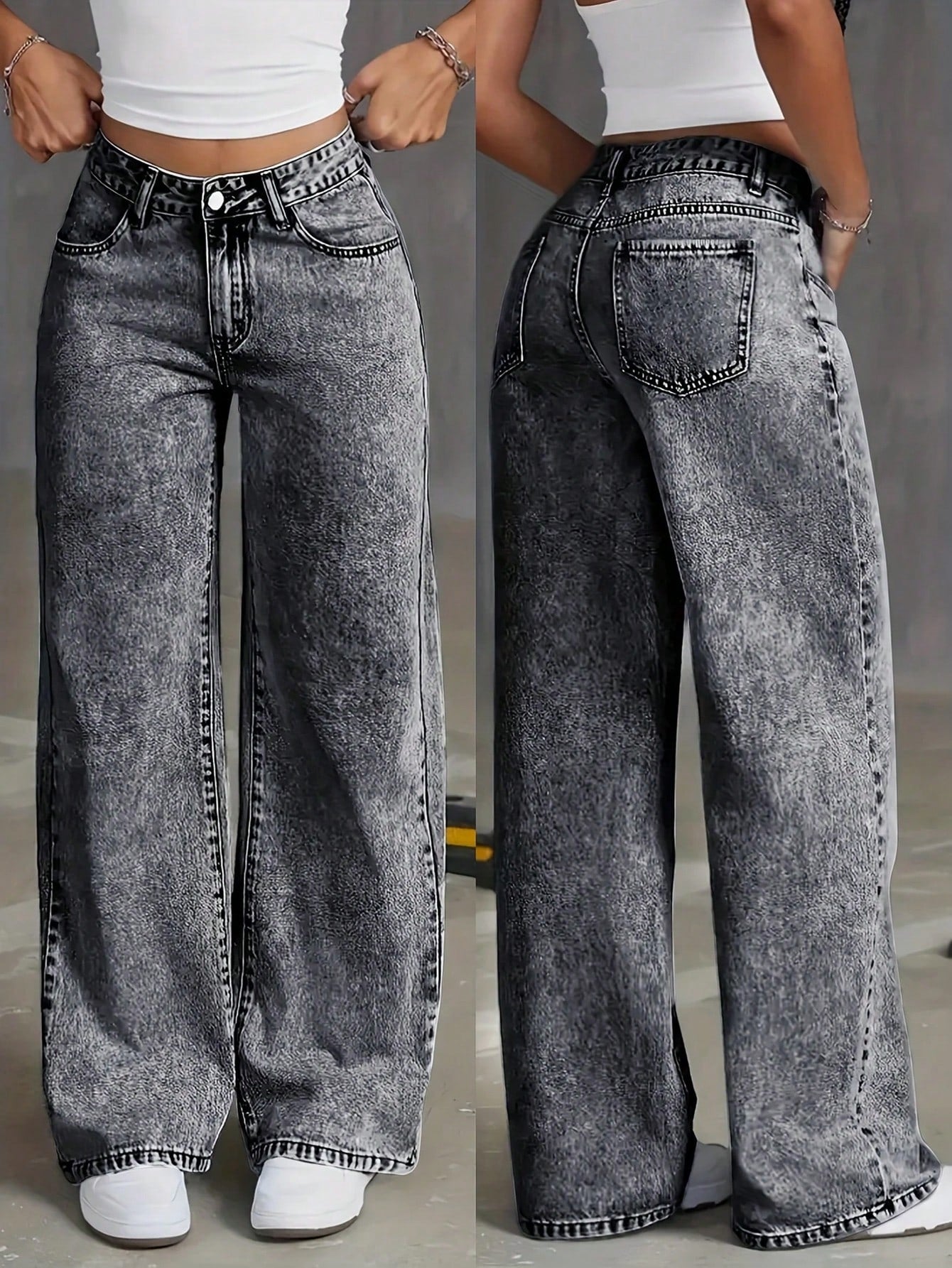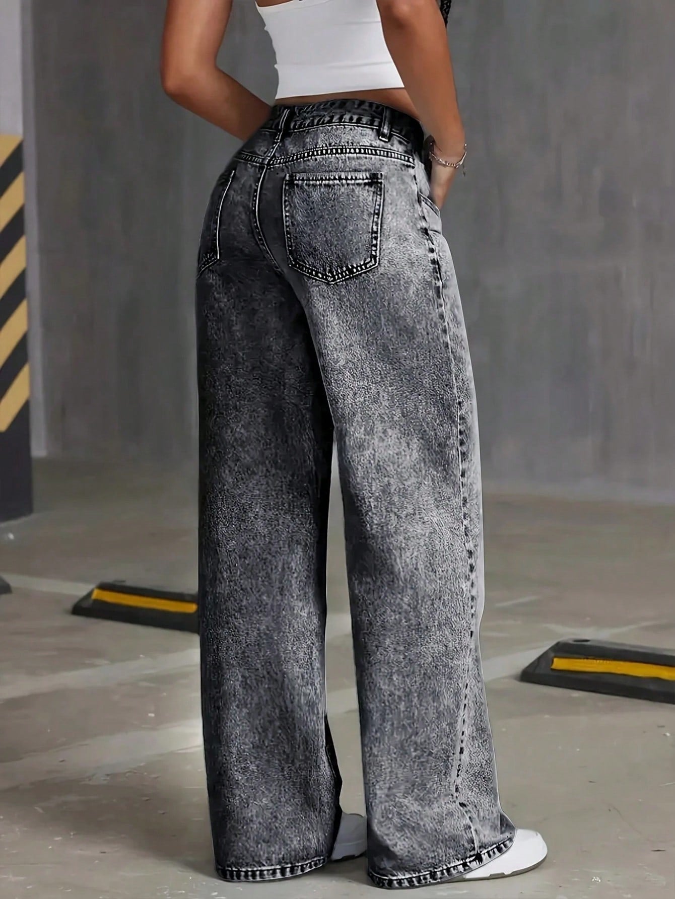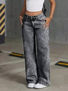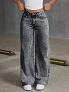 بنطلون جينز عصري واسع الساقين بتصميم ممزق وغسيل مميز للمراهقين