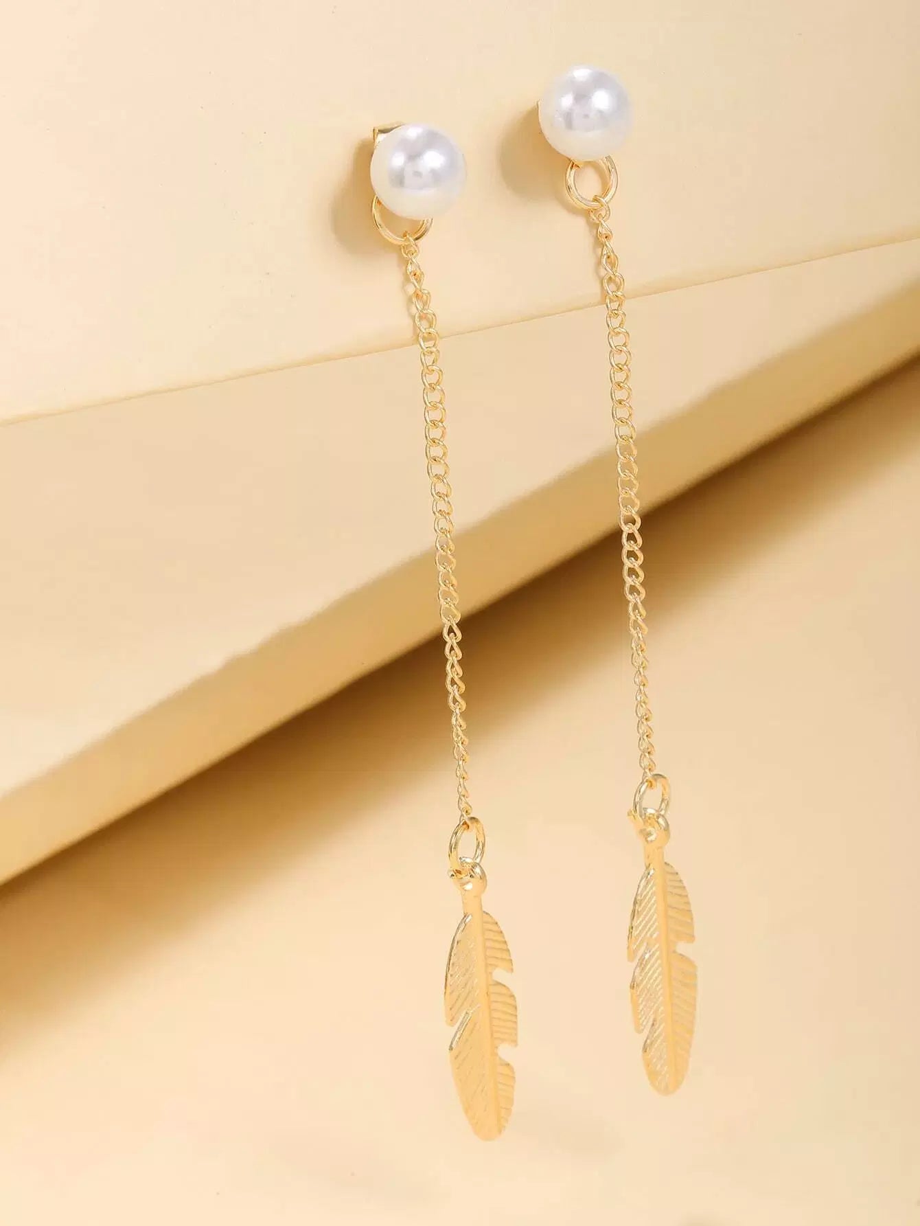 أقراط متدلية على شكل ورقة شجر مزينة باللؤلؤ الصناعي