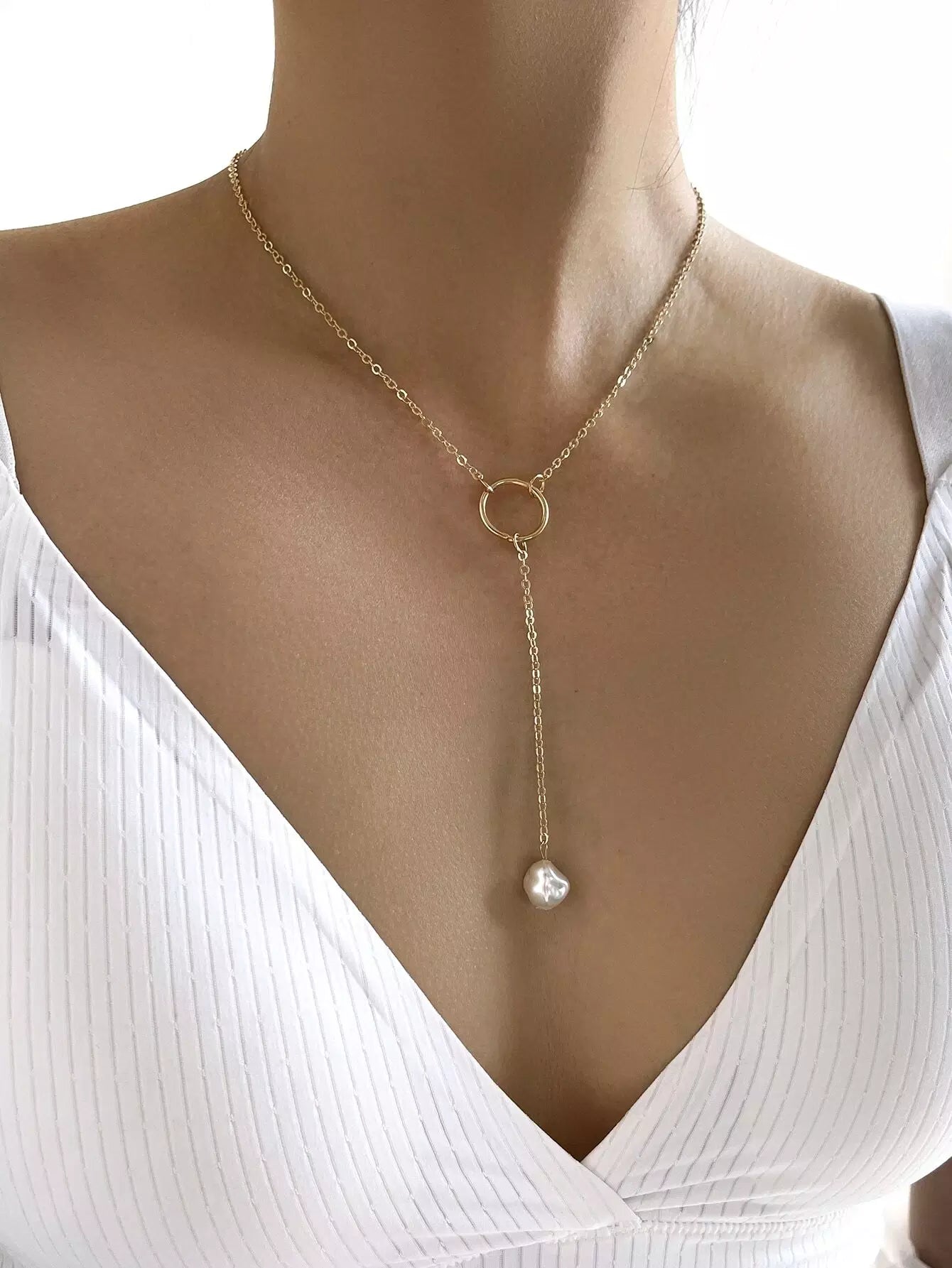 سلسال اللؤلؤ الصناعي المزخرف على شكل Y-حلق على شكل Y