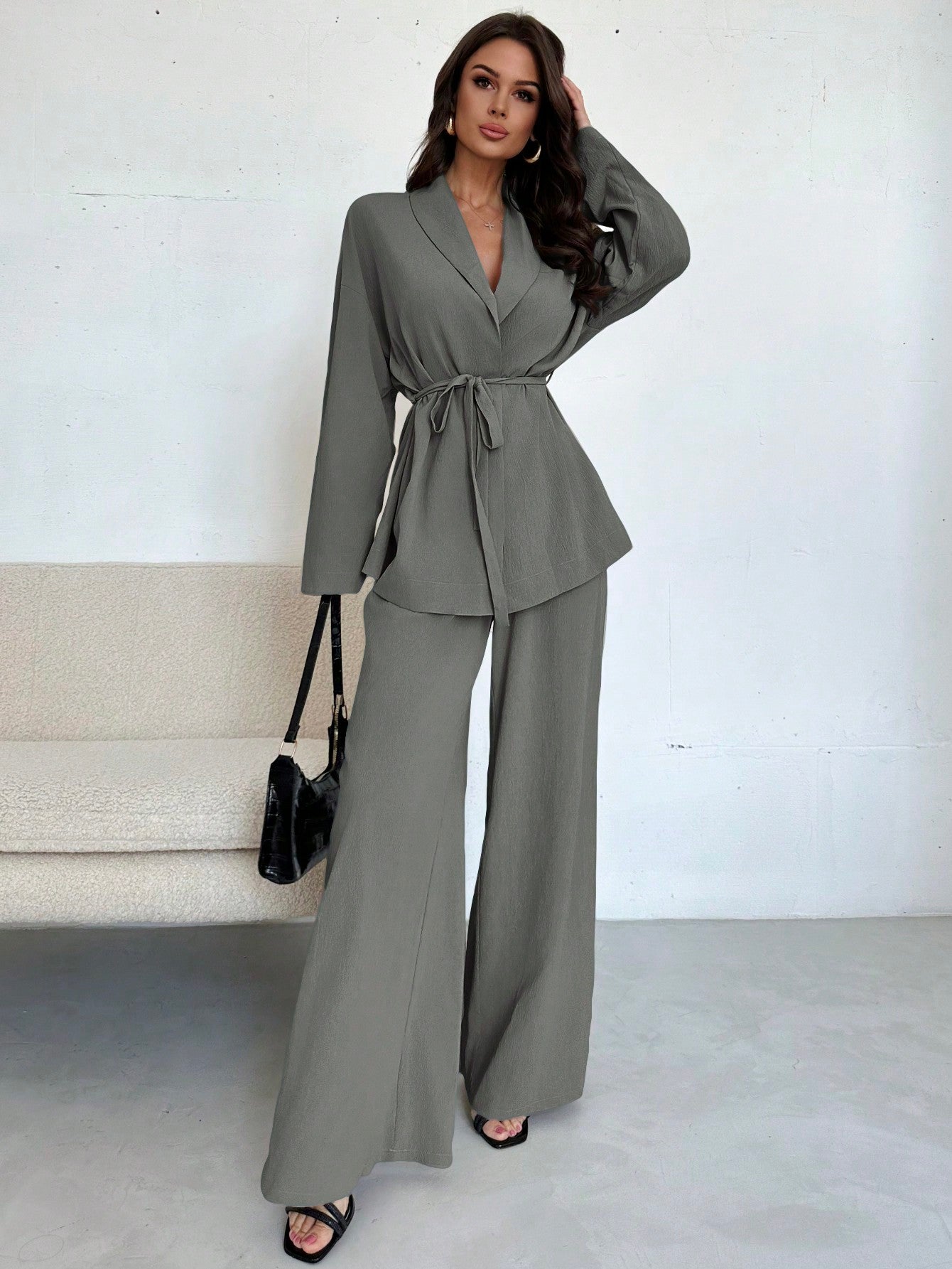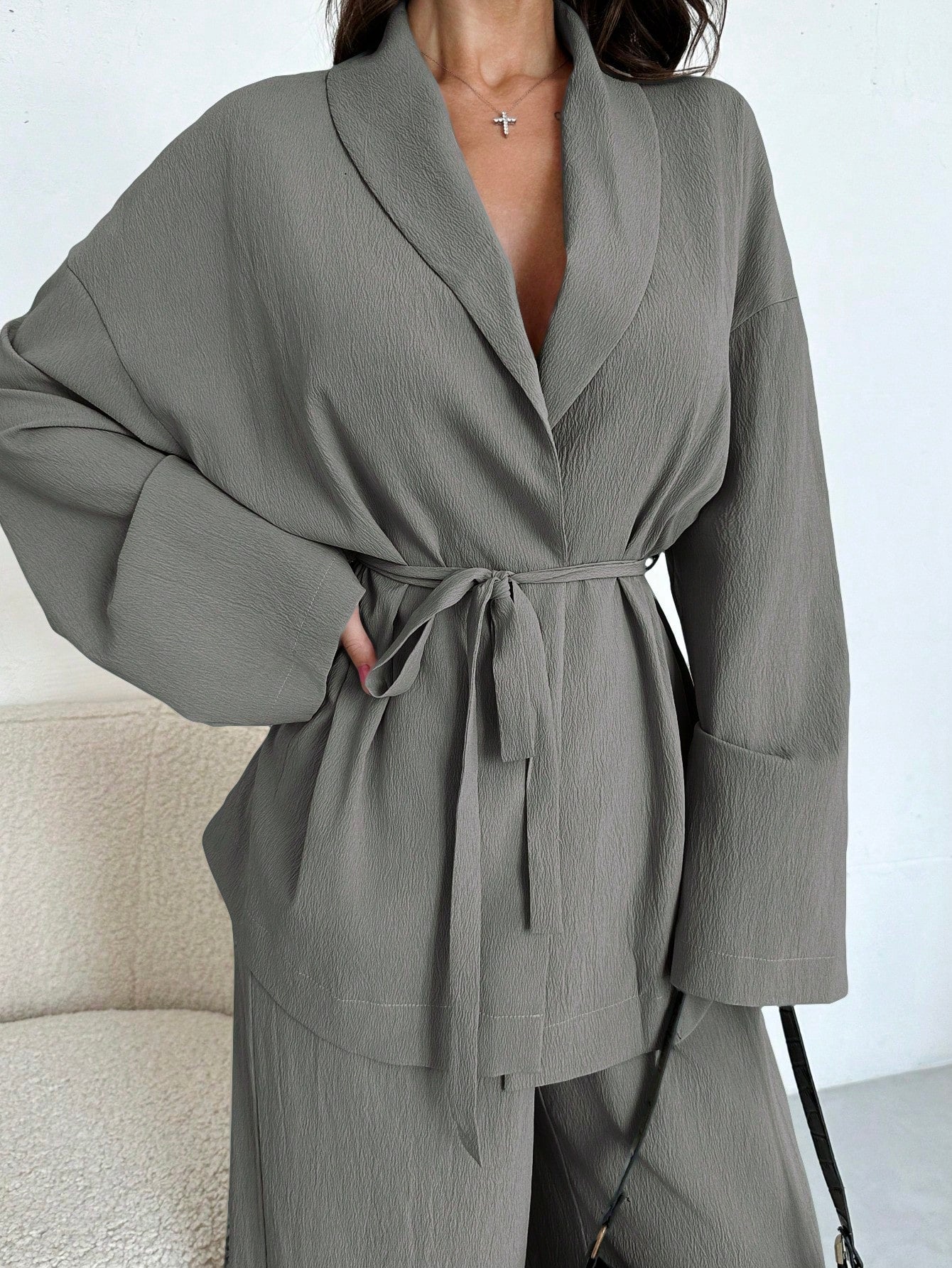 جاكيت نسائي أنيق وعصري من فايري، مناسب للعطلات والعمل والتنقل، بياقة عريضة وربطة خصر، بتصميم فضفاض وخصر عالٍ.