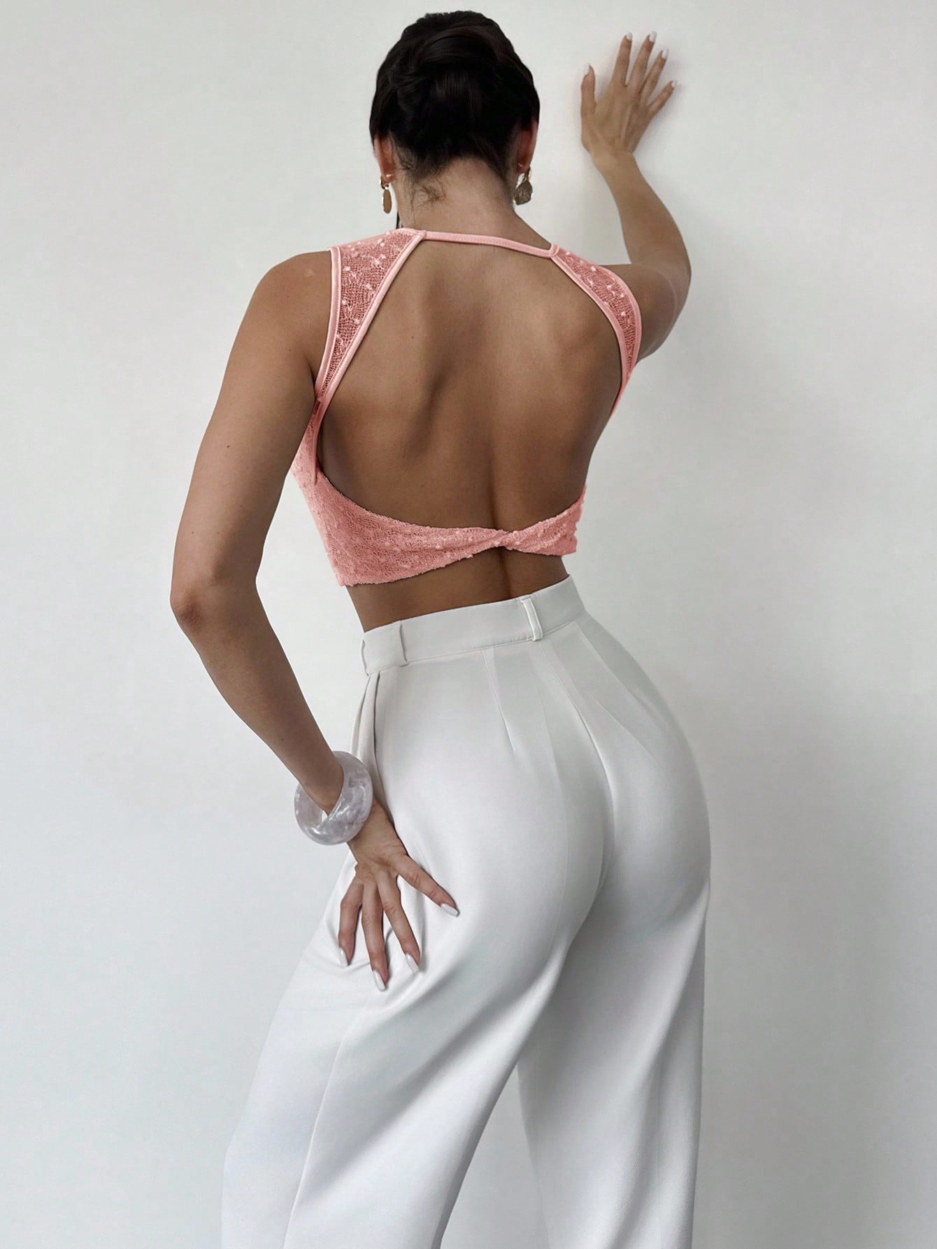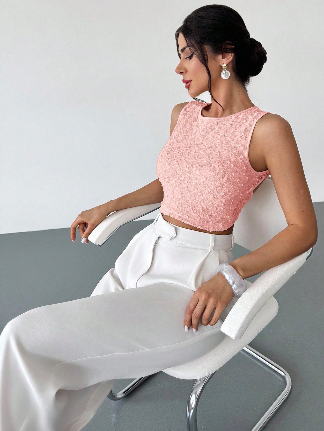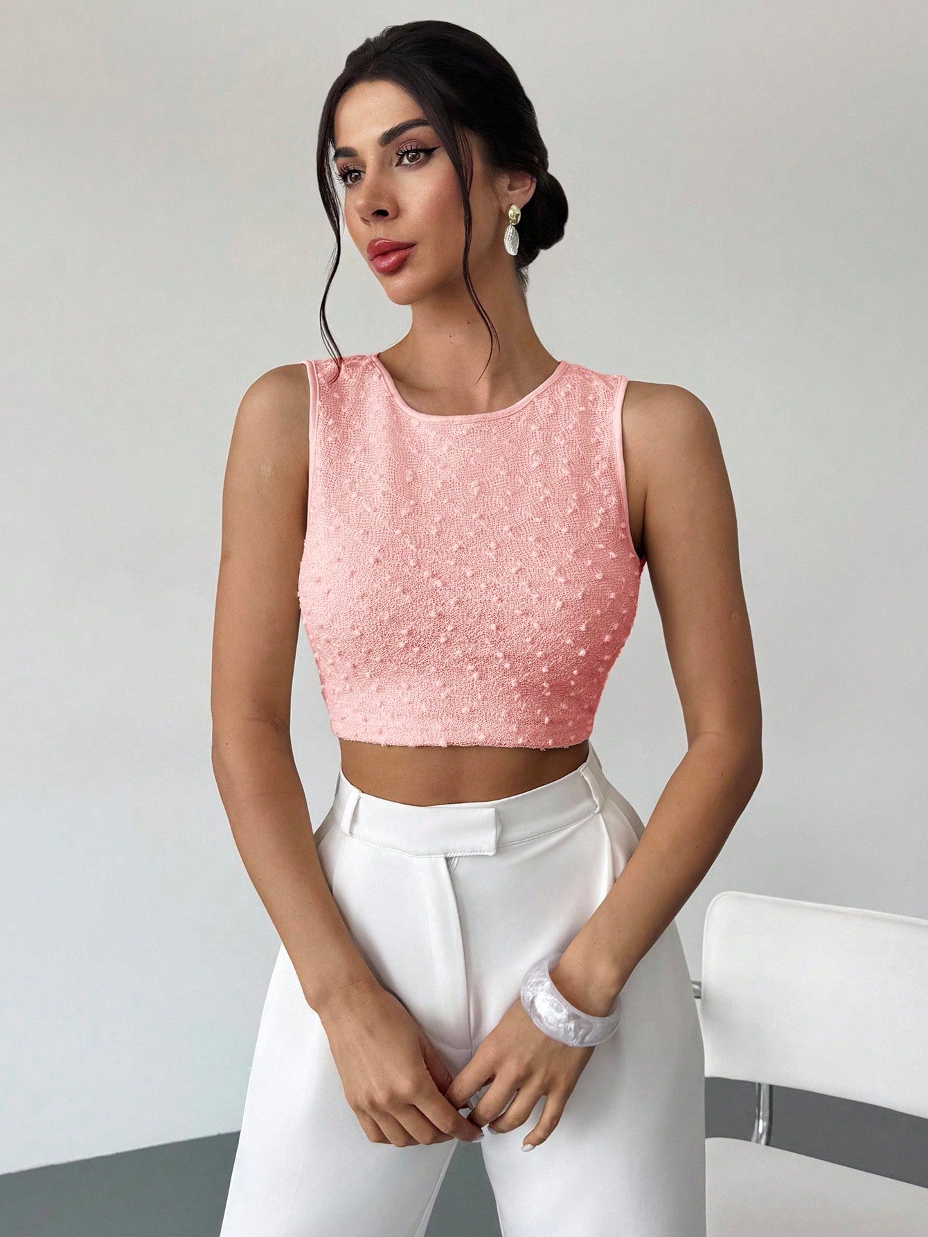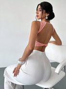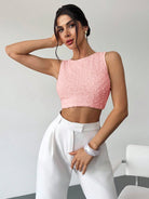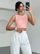 تيشيرت نسائي من فايري، بلون المشمش، بياقة دائرية، بدون أكمام، وبدون ظهر