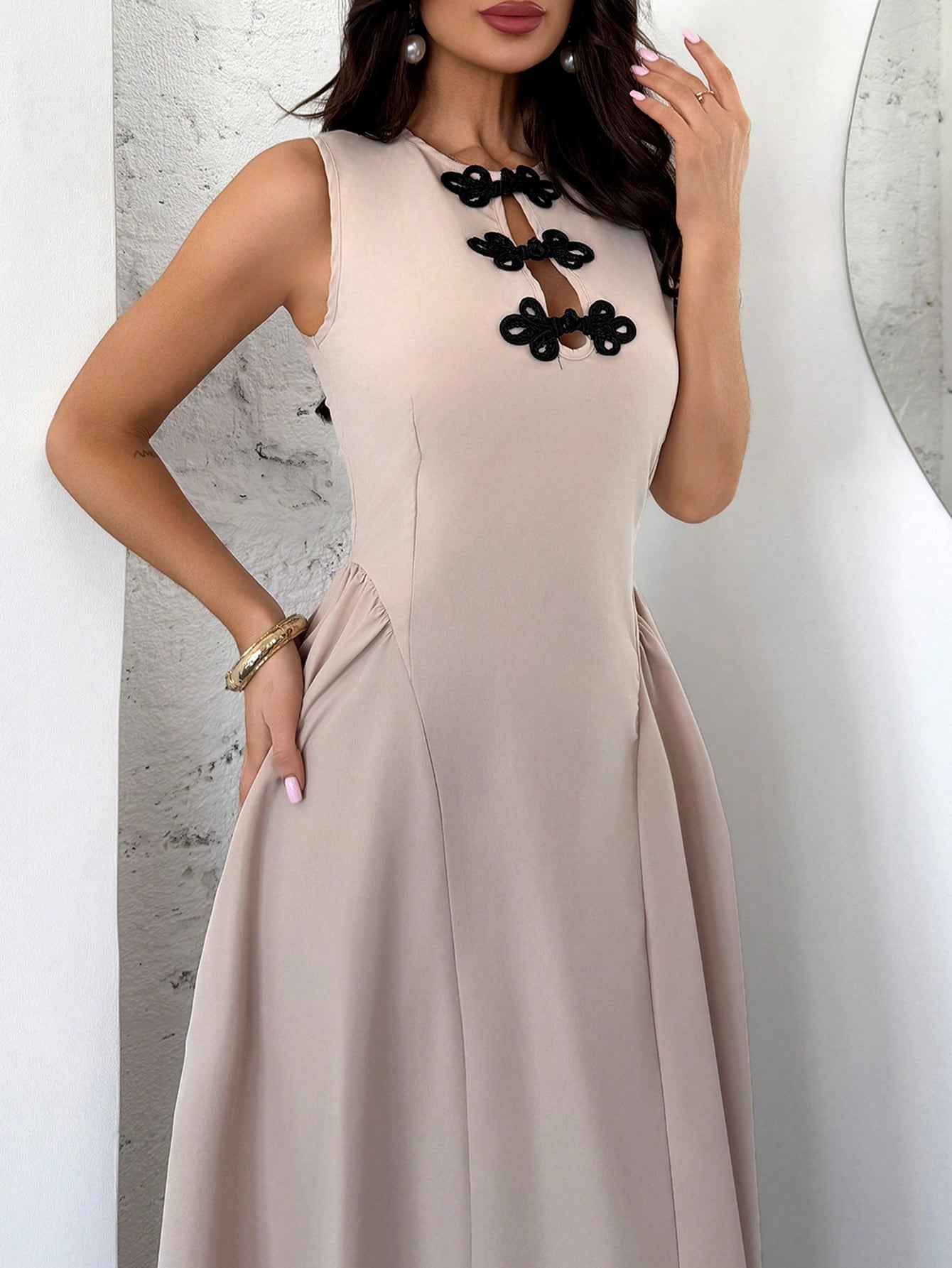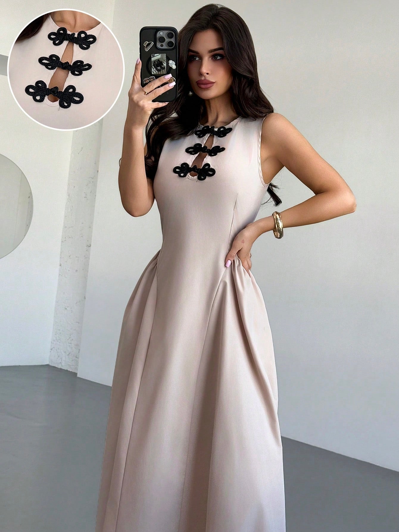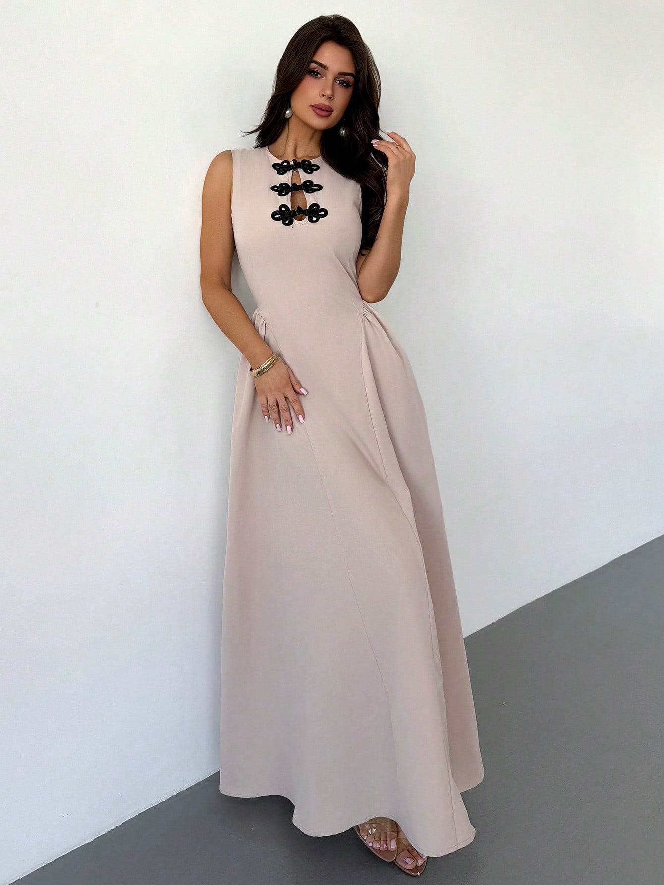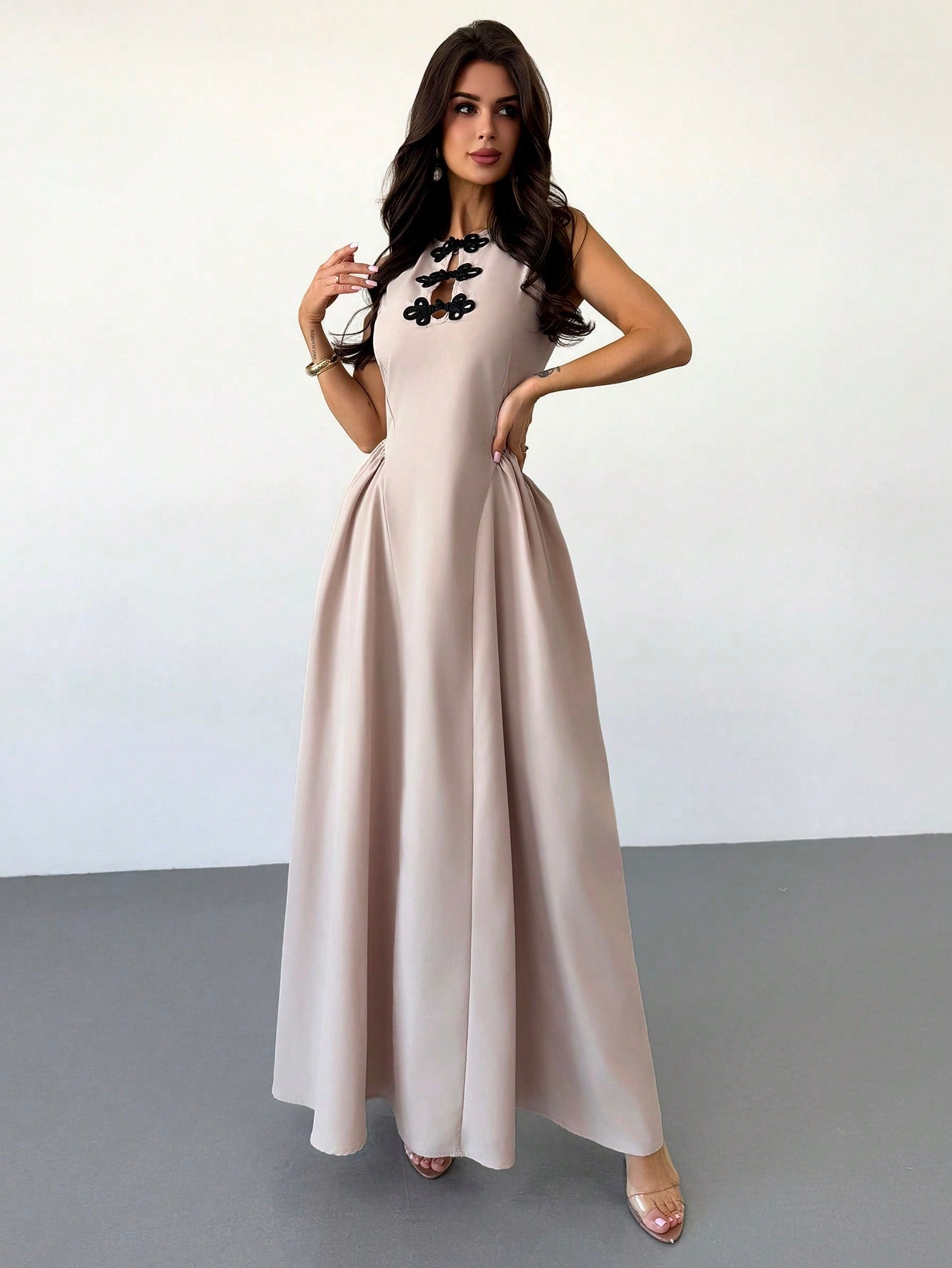 فستان ماكسي أنيق وعصري من Firerie للنساء، بلون المشمش، مناسب للمواعيد الرومانسية