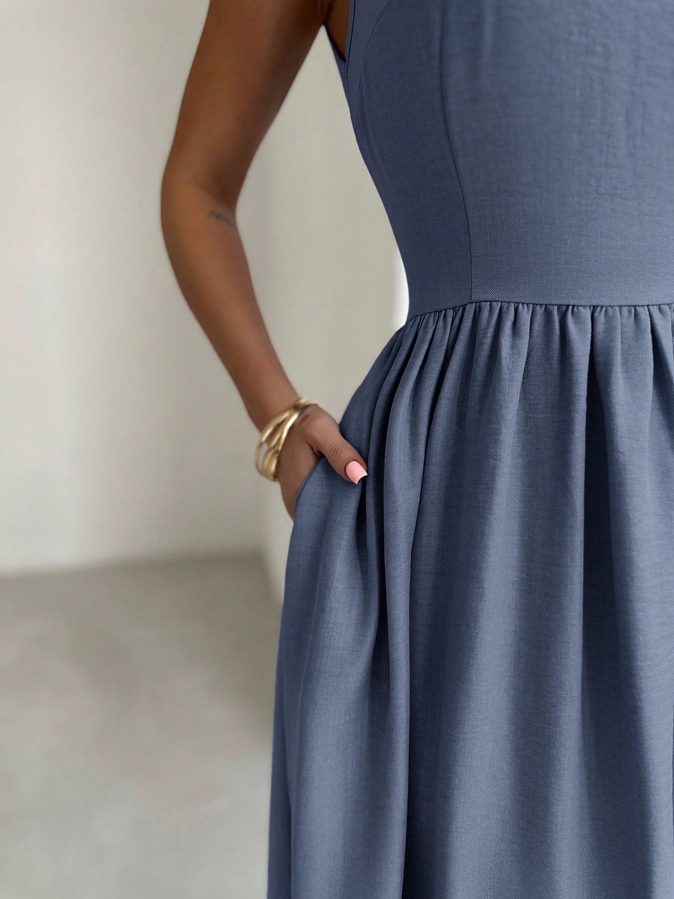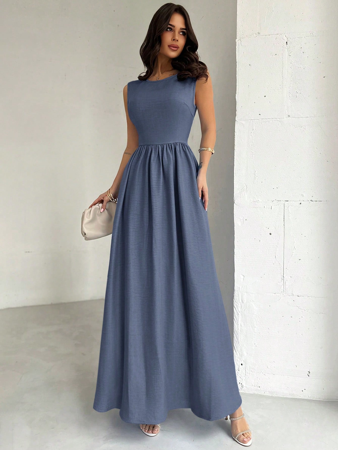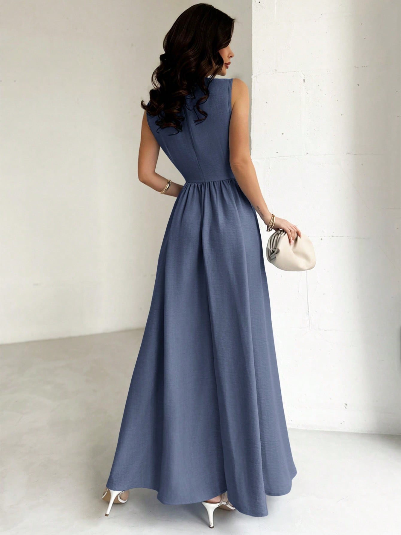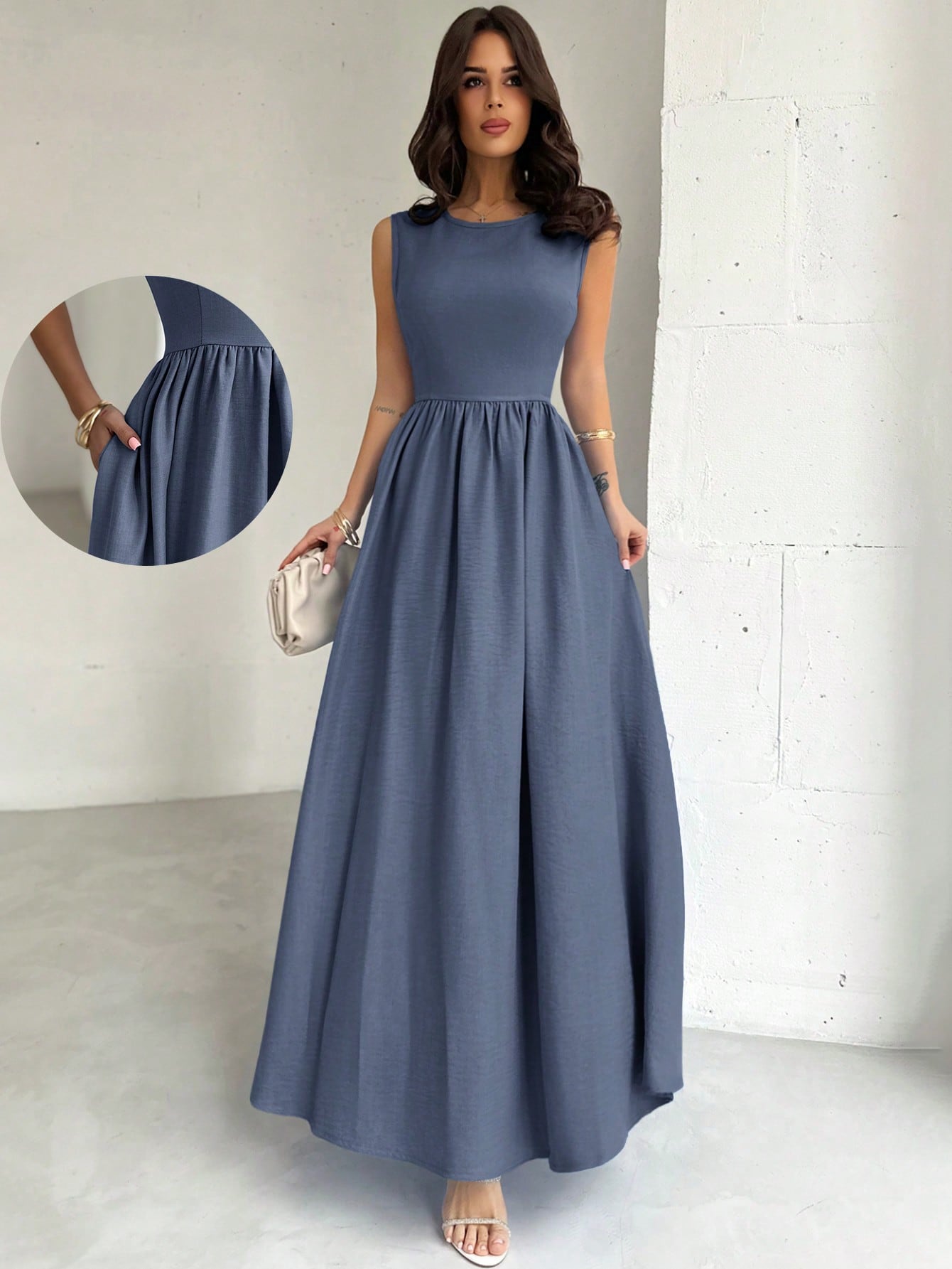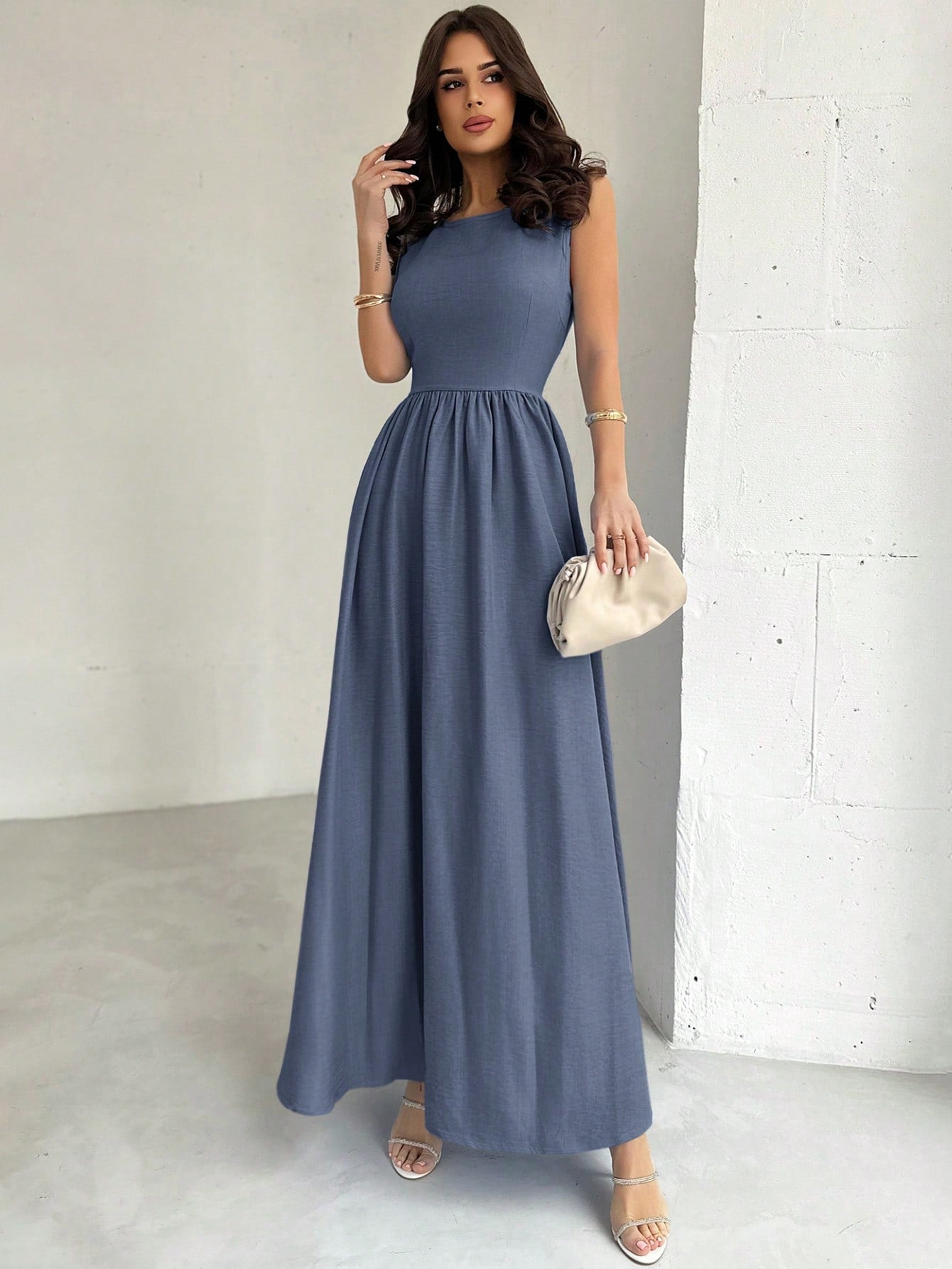 فستان ماكسي نسائي من Firerie باللون الأزرق الداكن بخصر على شكل حرف A، مناسب لعيد الحب والحفلات الموسيقية والعروض