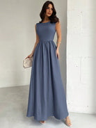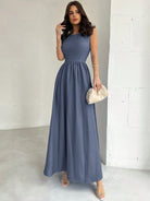 Firerie Women's Navy Blue Waisted A-Line Maxi Dress, Suitable For Valentine's Day, Music Concerts, Performances,