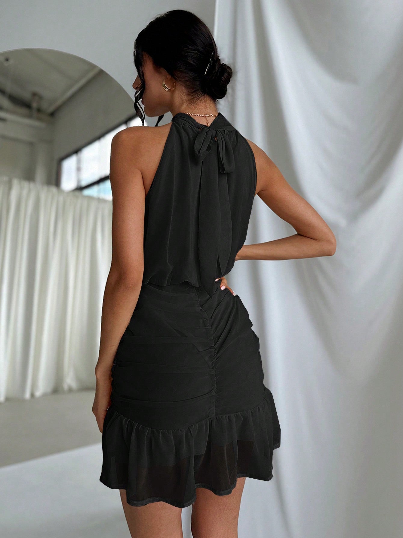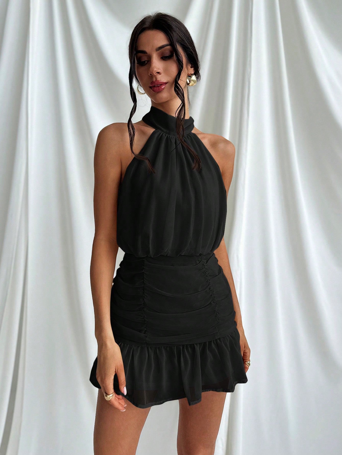 فستان شاطئ رومانسي أنيق بتصميم ضيق ومكشكش من فيريري للنساء، مناسب للعطلات، مع حمالة رقبة