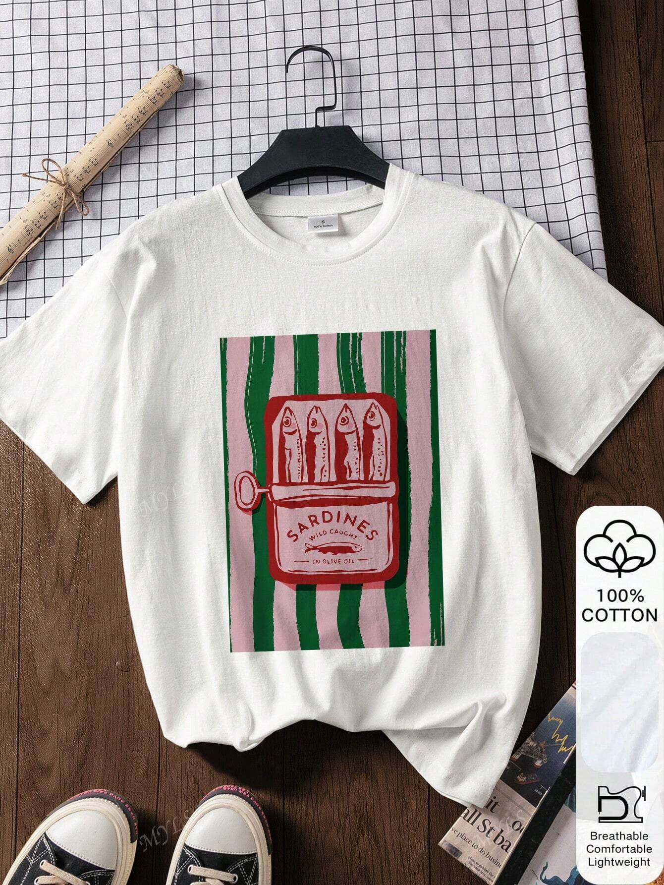 Fish Print Summer Women's 100% Cotton Short-Sleeved Tops, Casual Women, White Top, Graphic T-Shirts,