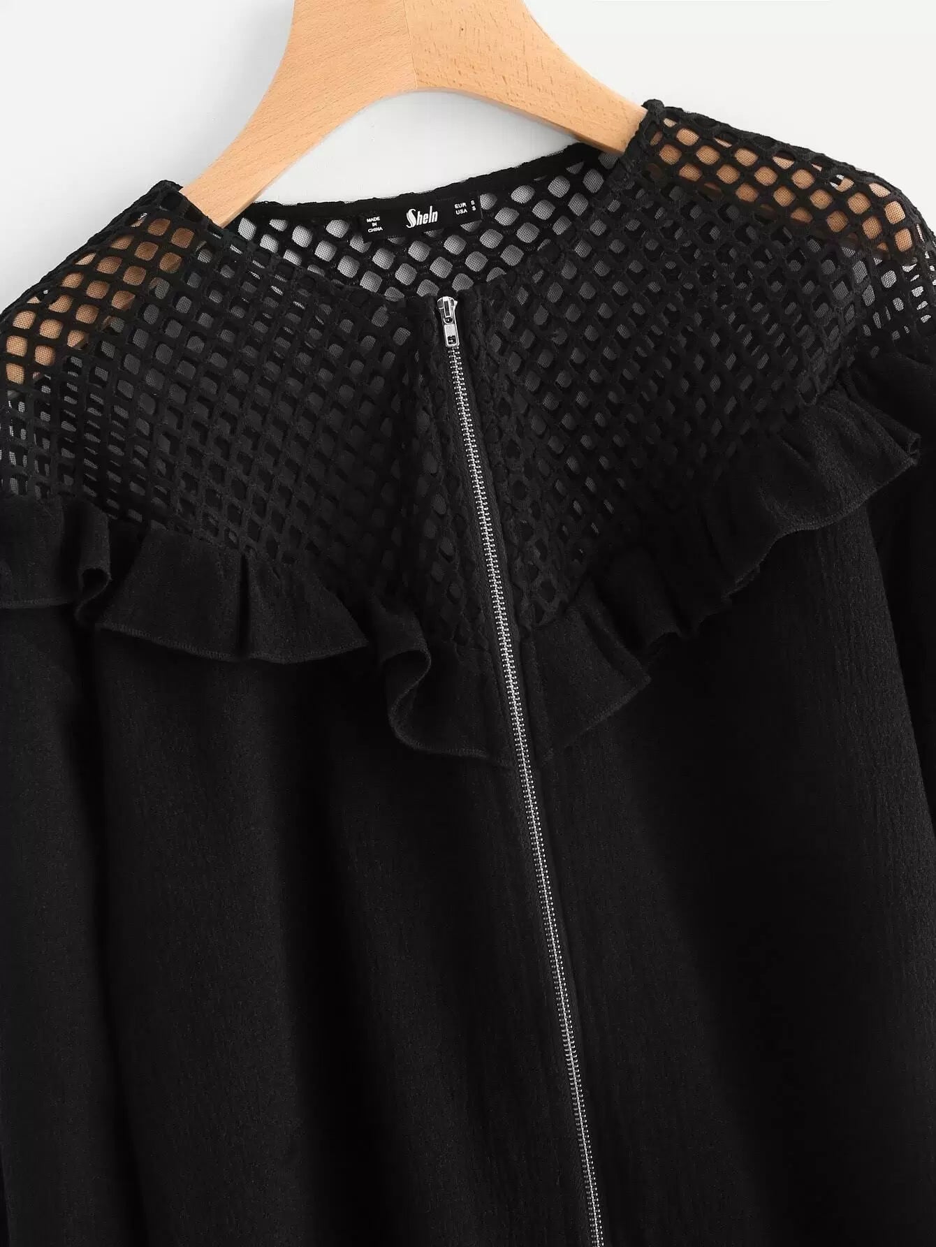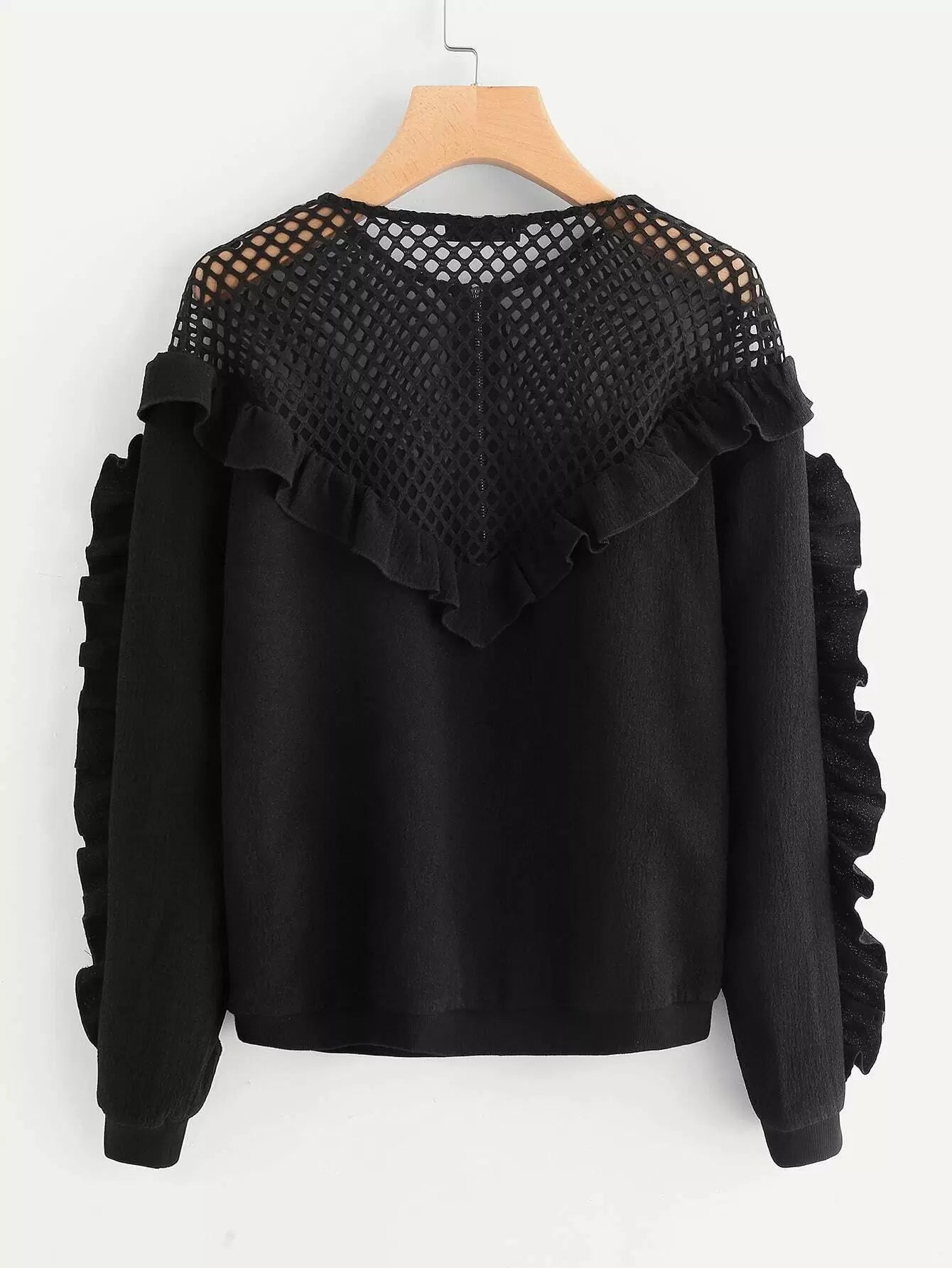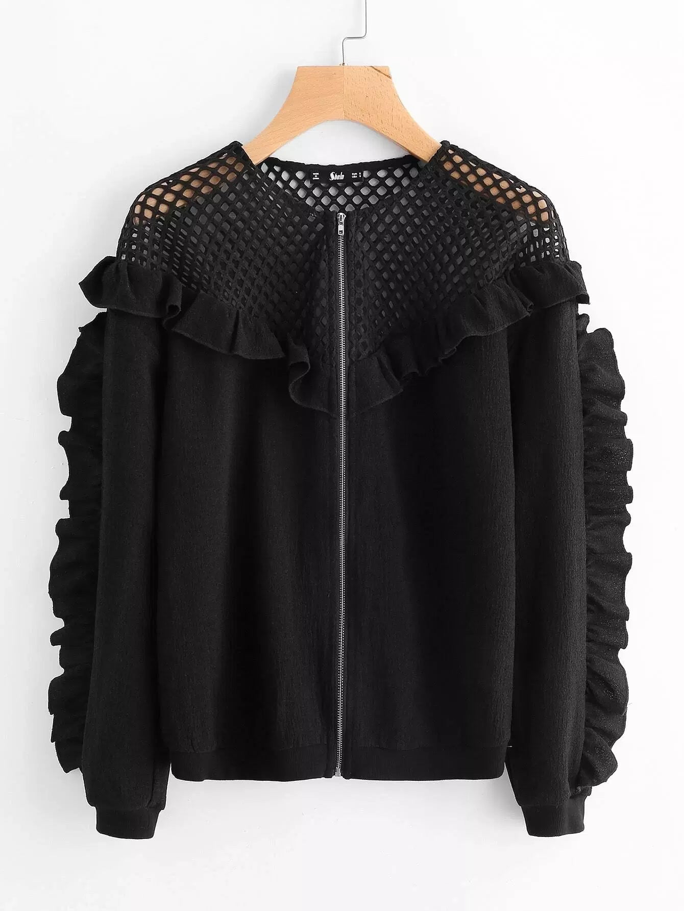 للنساء - سترة ذات تفاصيل مكشكشة من شبكة صيد السمك