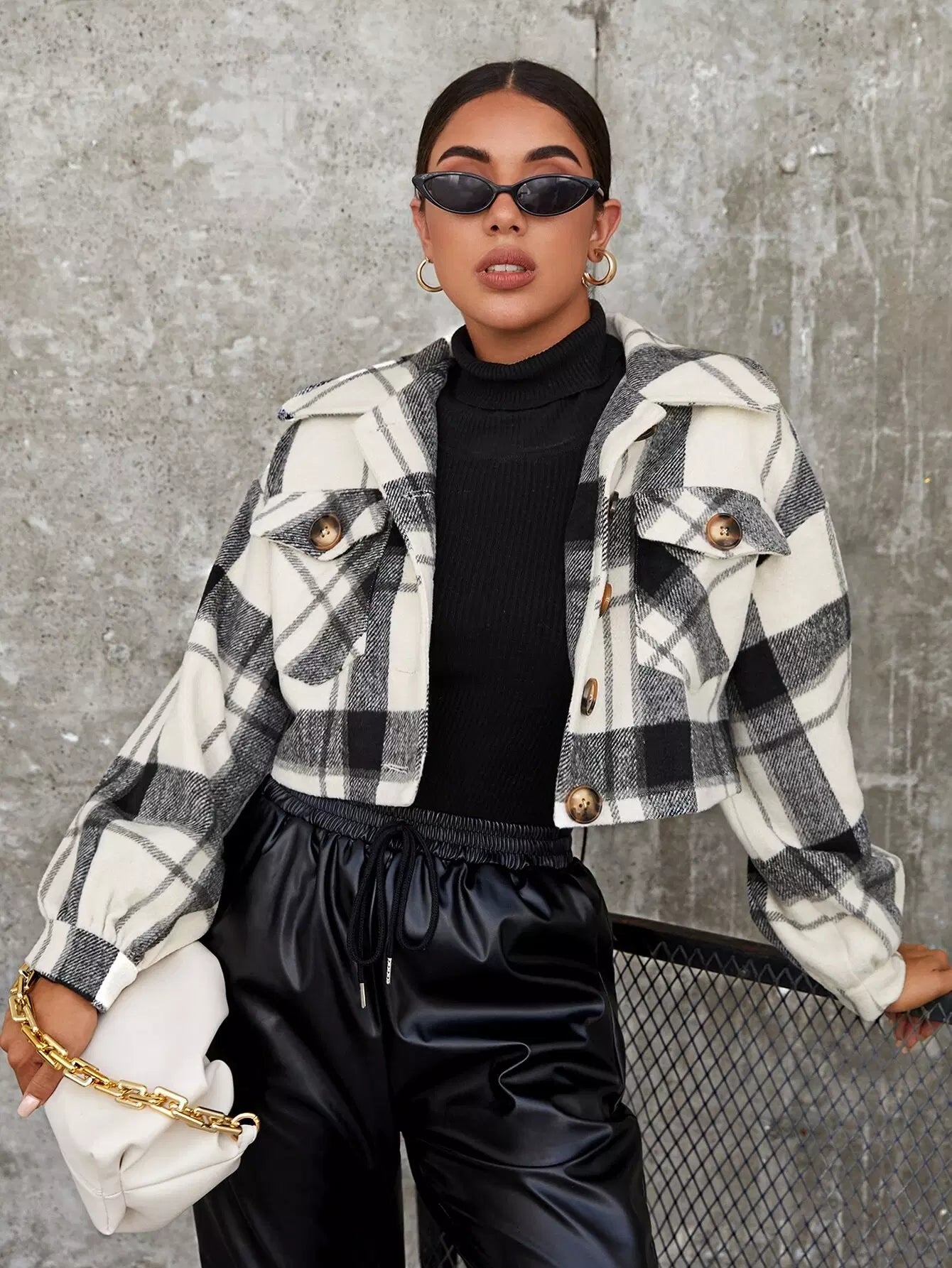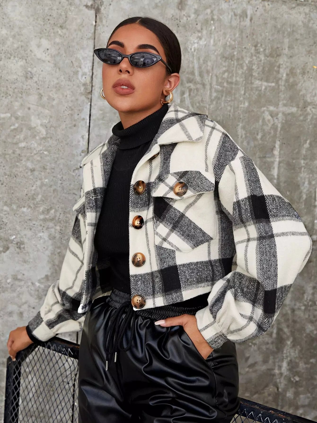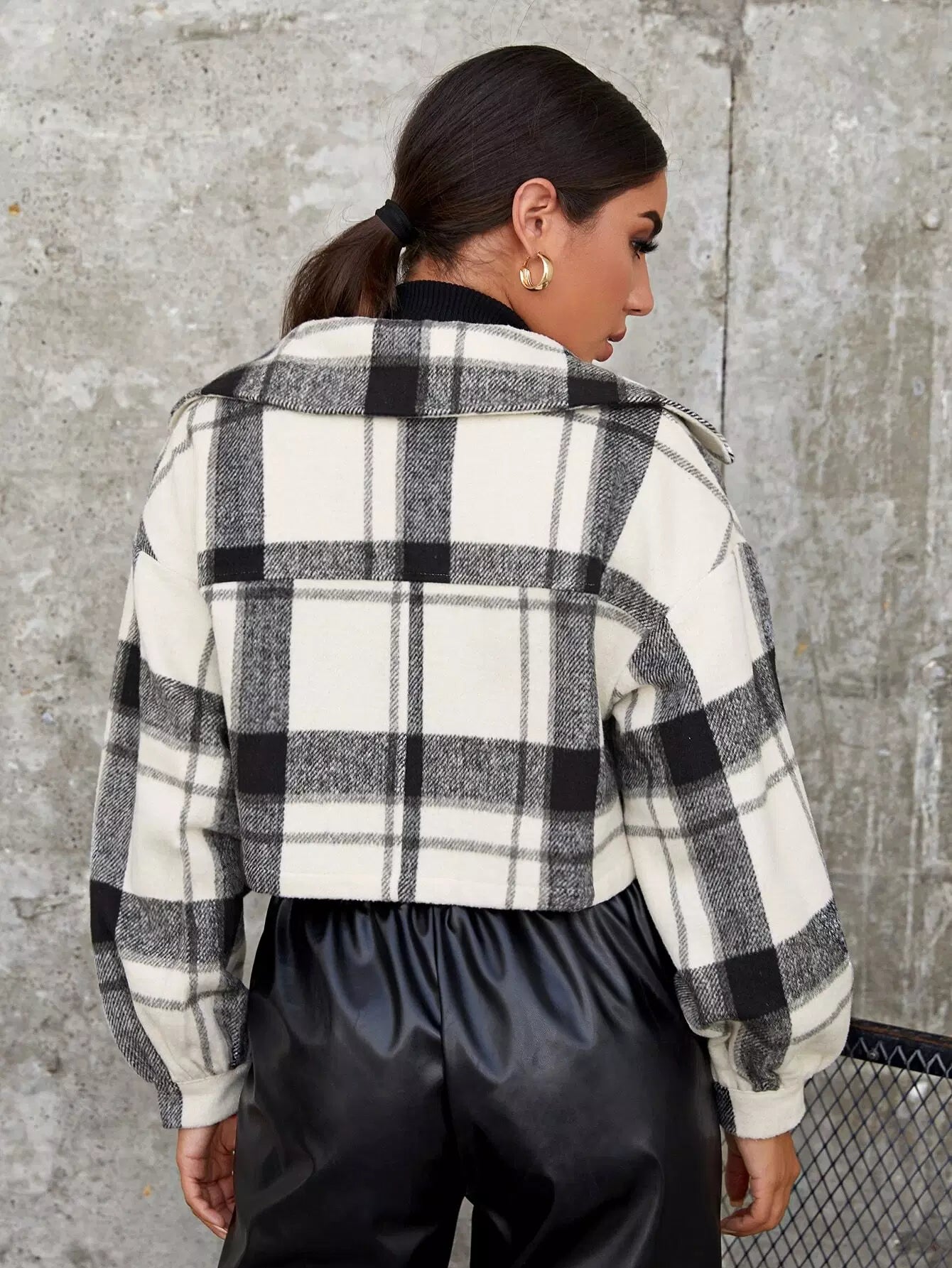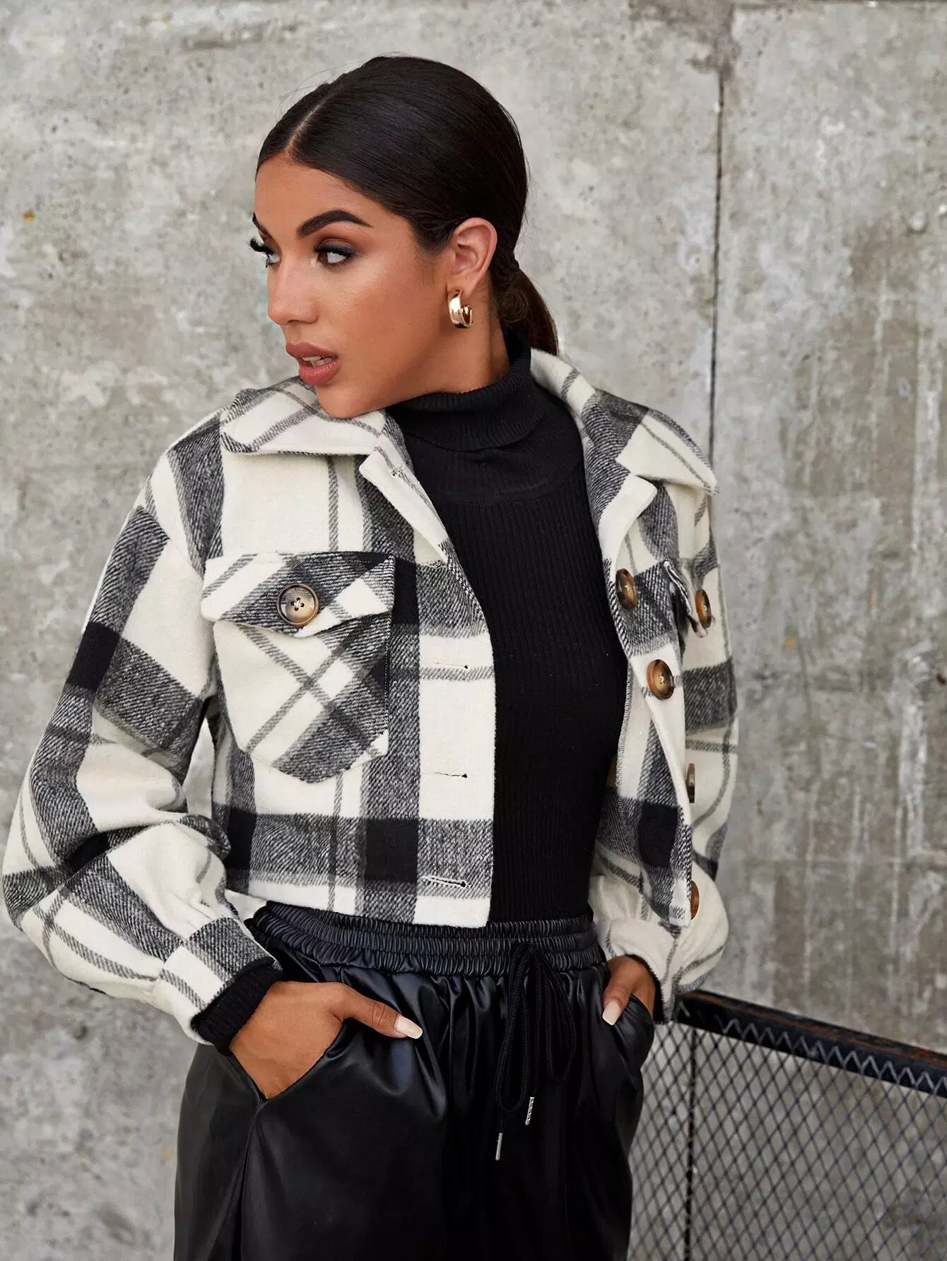 جاكيت منقوش بغطاء بغطاء جيب منقوش