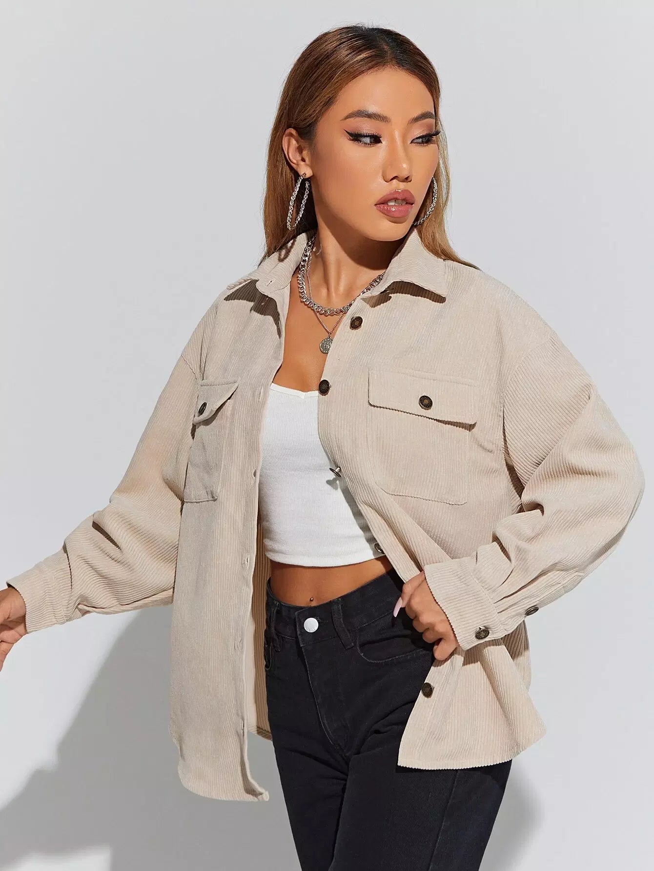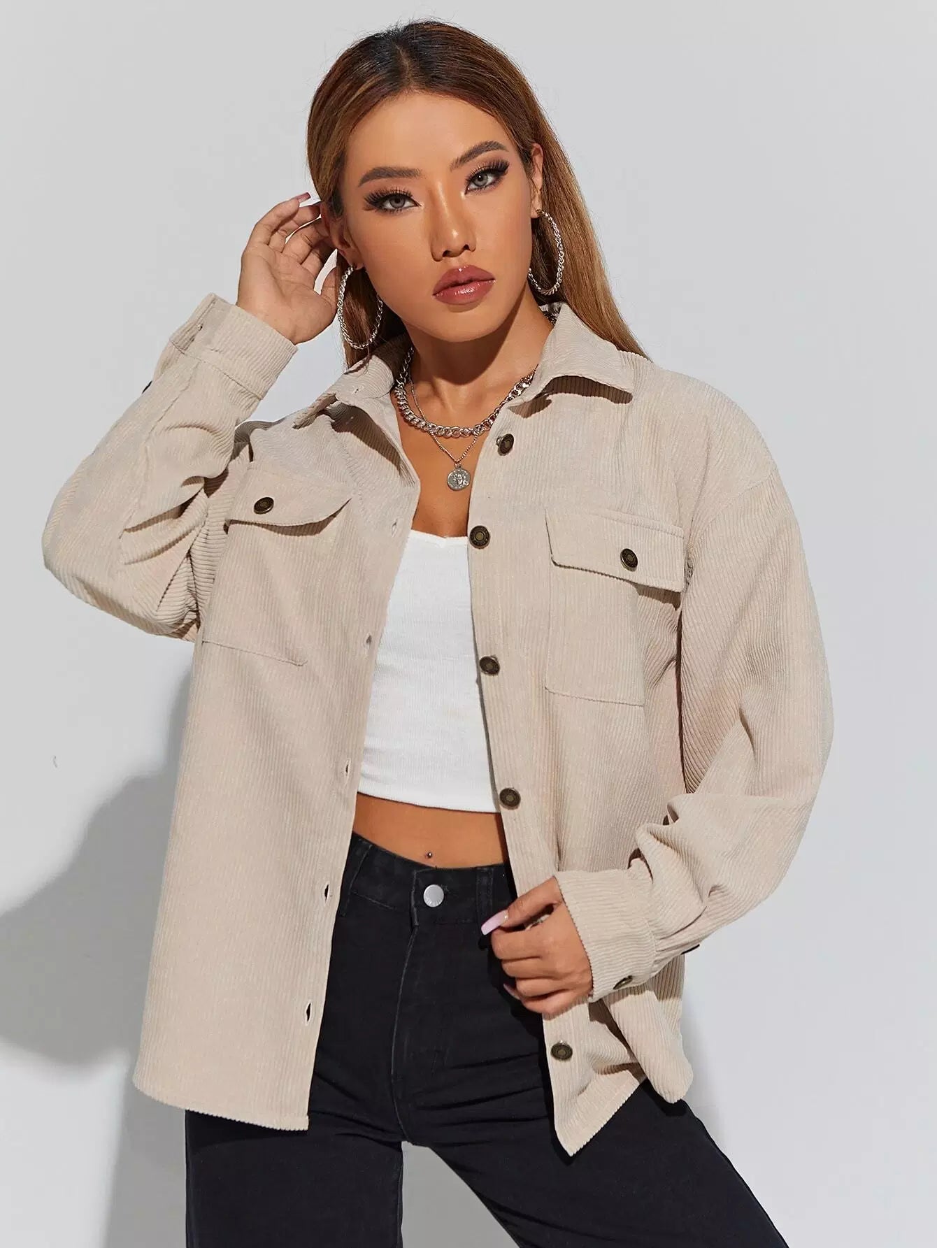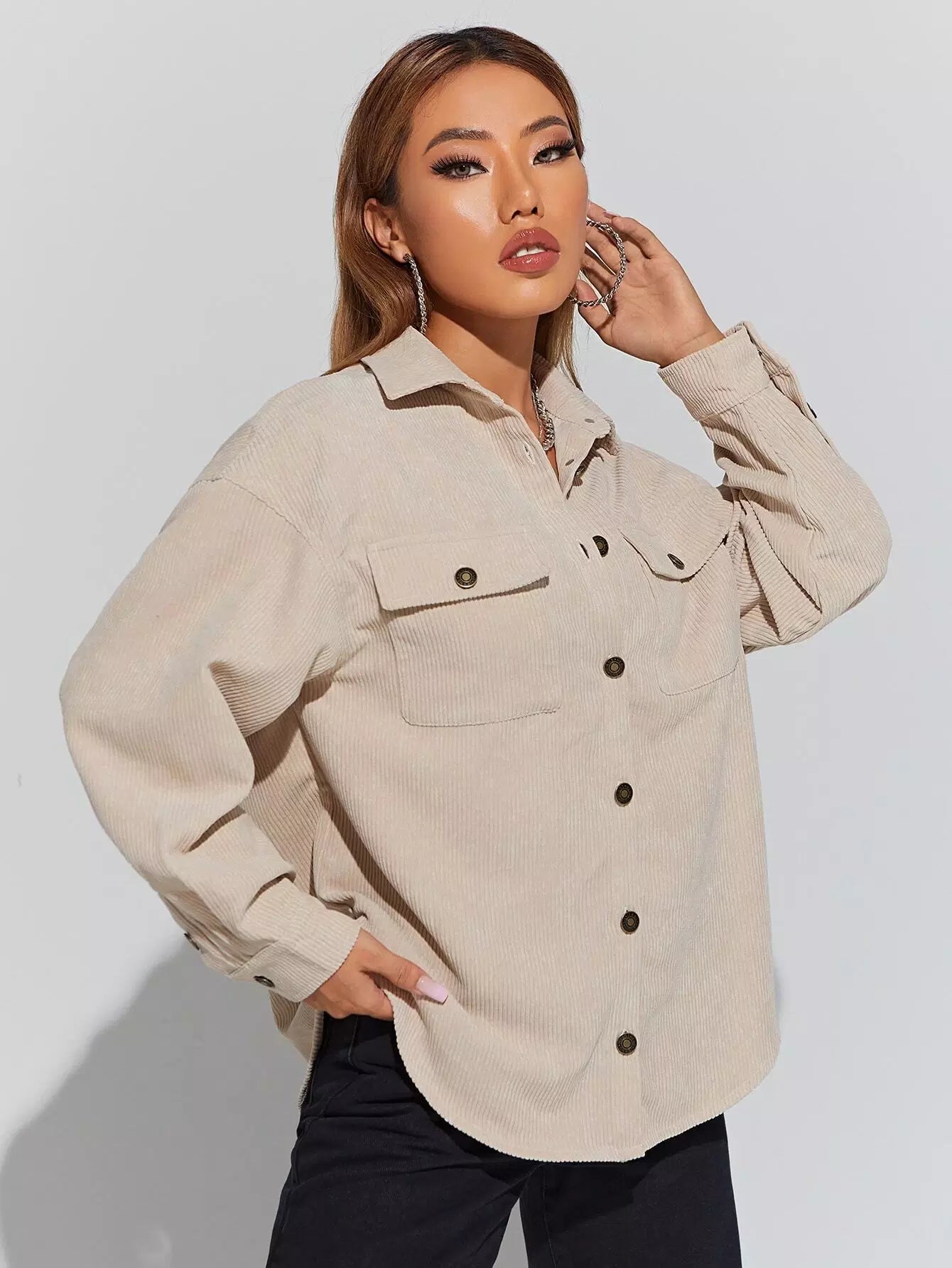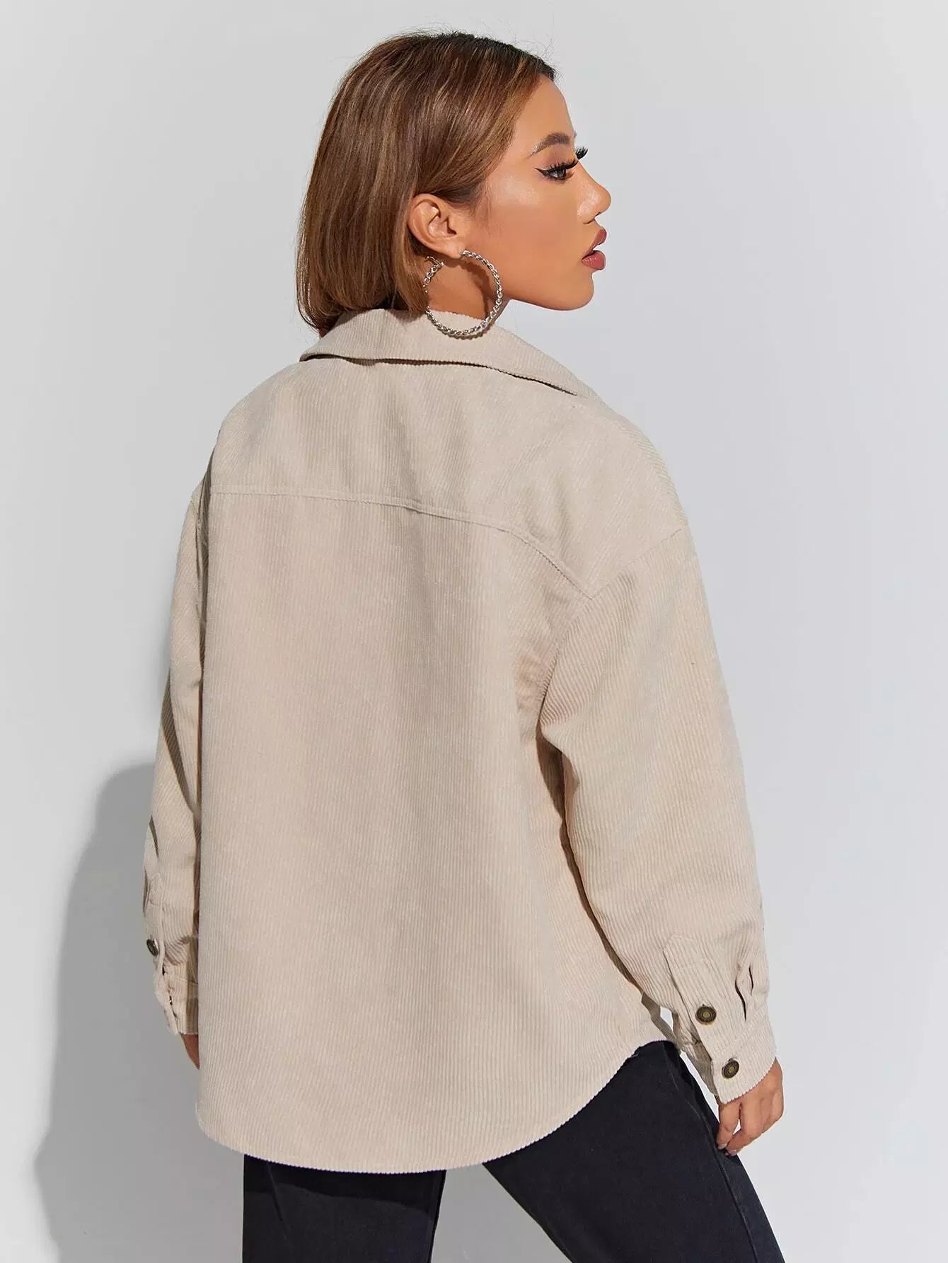 معطف مخملي بكتف منسدل وجيوب